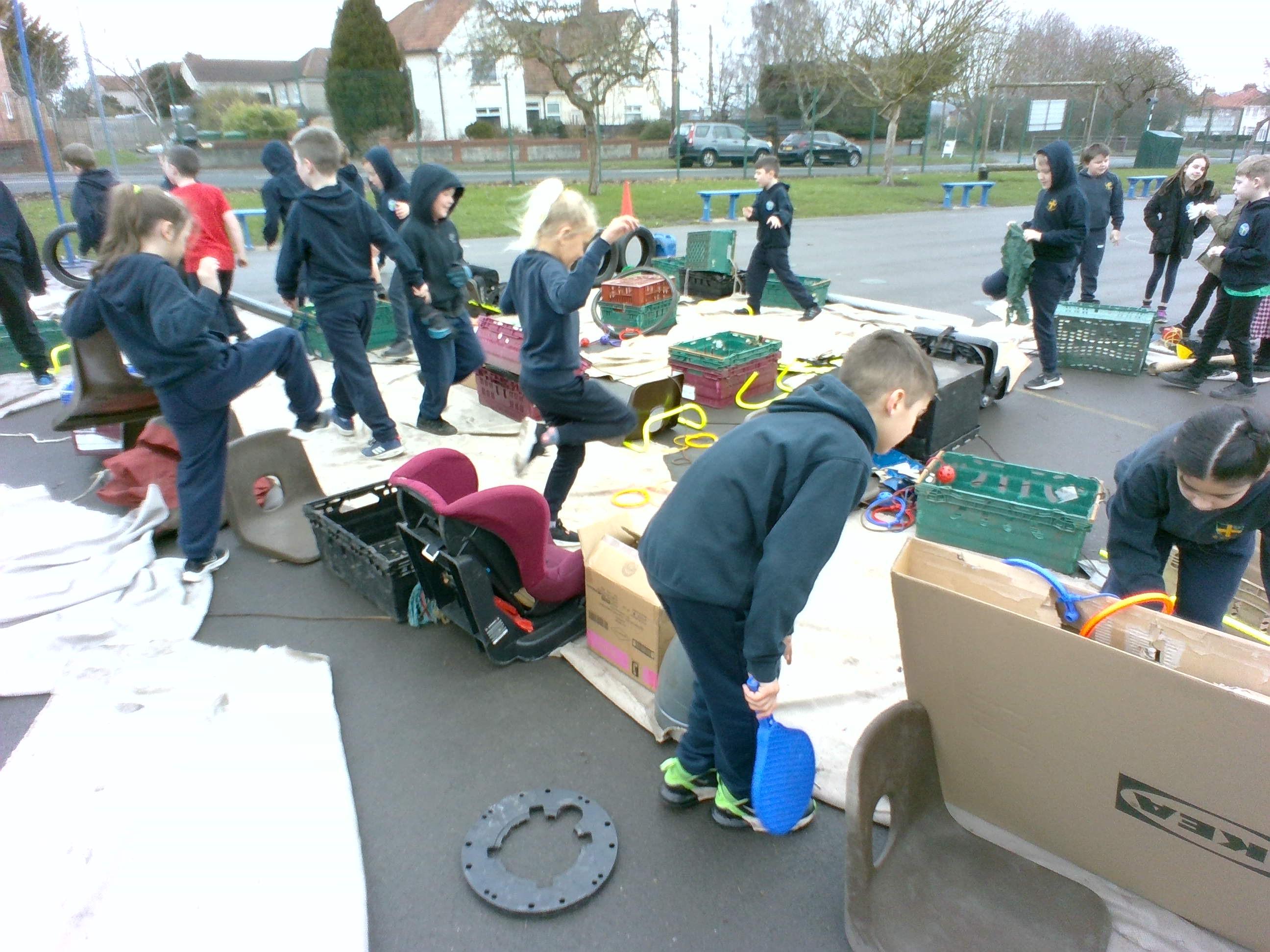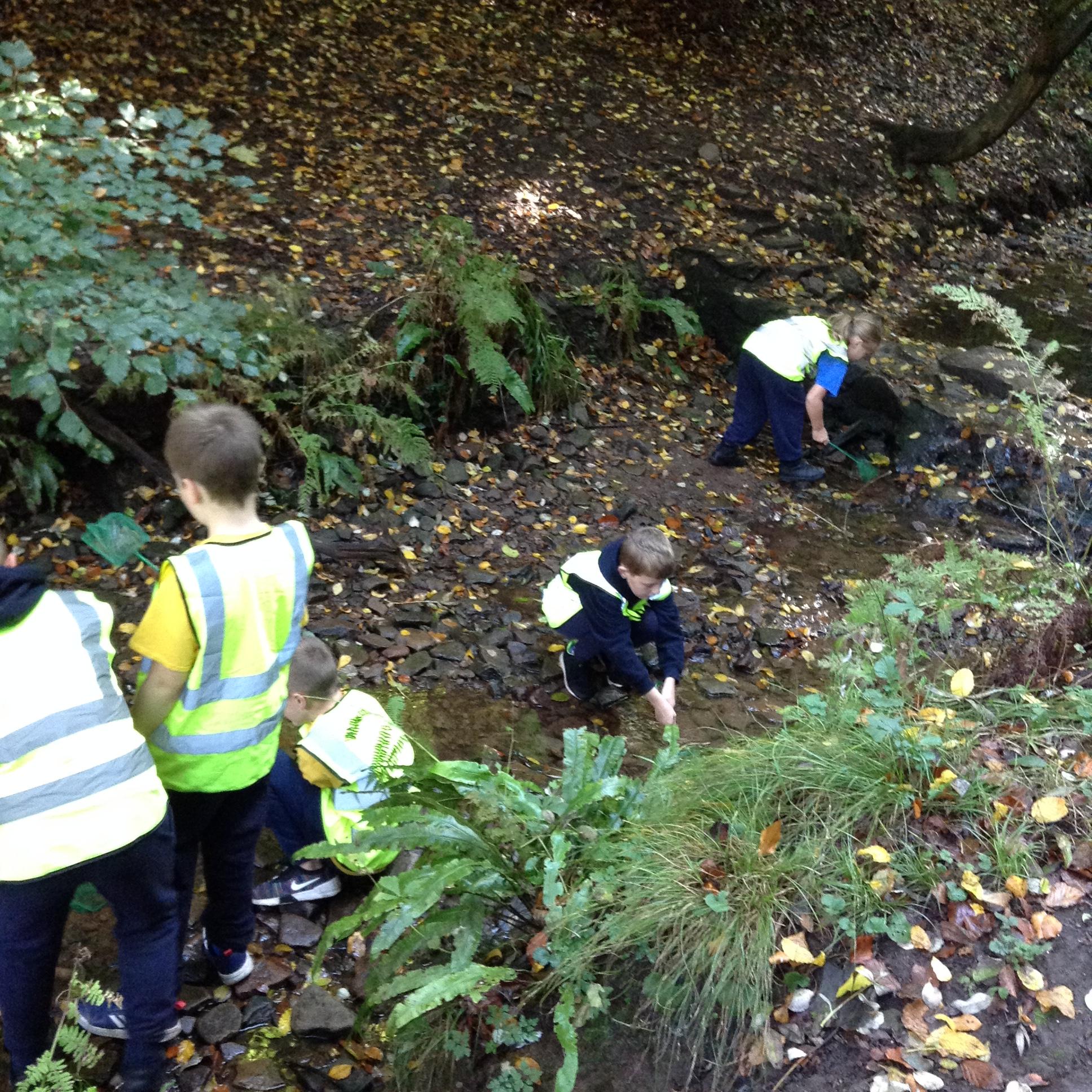 As part of the exploration phase for our enquiry 'What is the journey of a raindrop?', we have worked as a year group to create our very own river. We found materials that might be found at the bottom of a river which the water flow might pick up and then some of us acted as the source, pouring the water down our river which had meanders and tributaries.