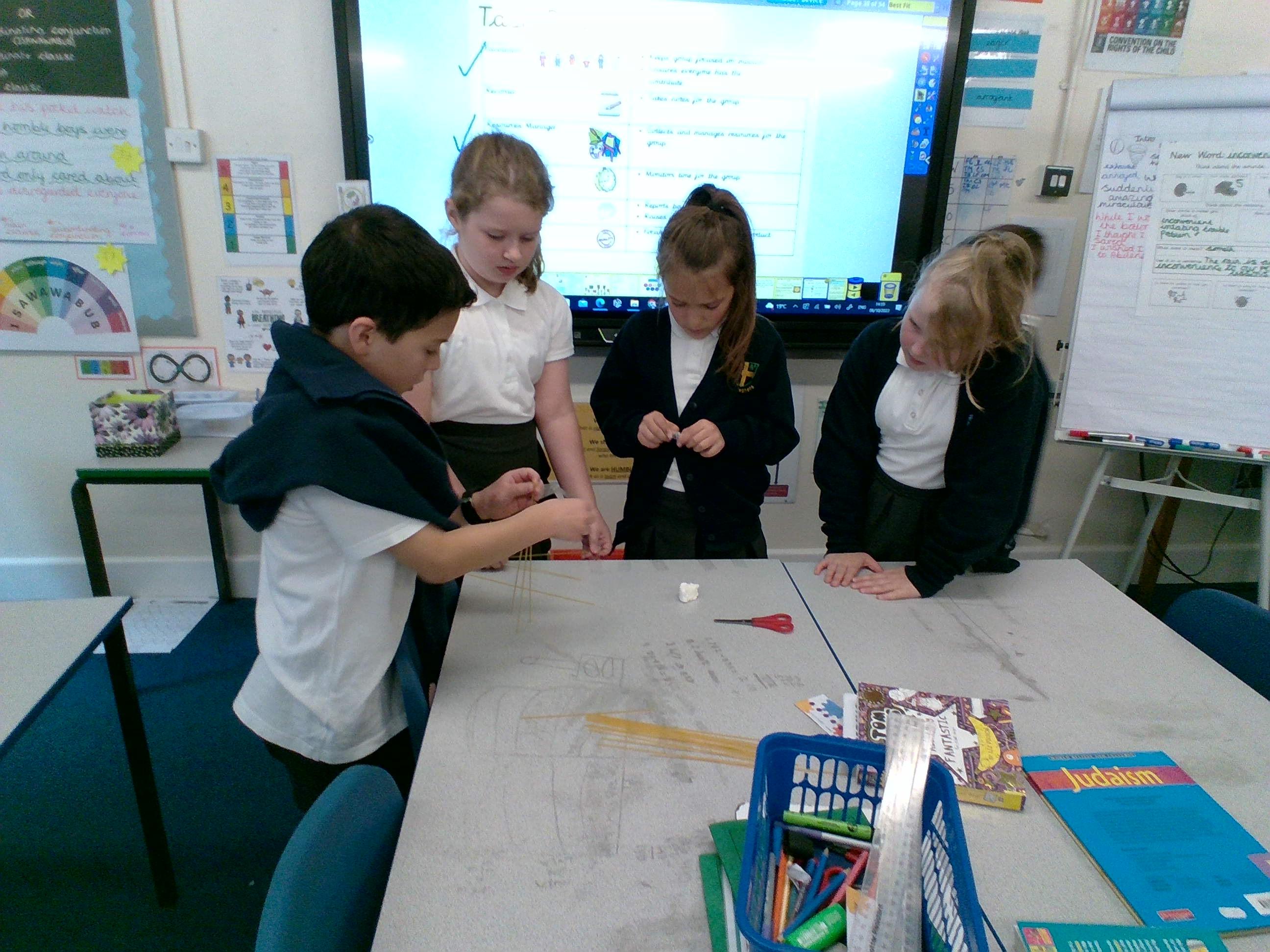 In week 5, we continued our learning around 'Being Metacogs' with a focus on Teamwork. We worked in groups and ,with our own different roles, collaborated on making the tallest possible tower using only spaghetti, string, cellotape and a marshmallow to go on the top. We thought about what makes a really good team beforehand and put all of these things into practise to build our towers.