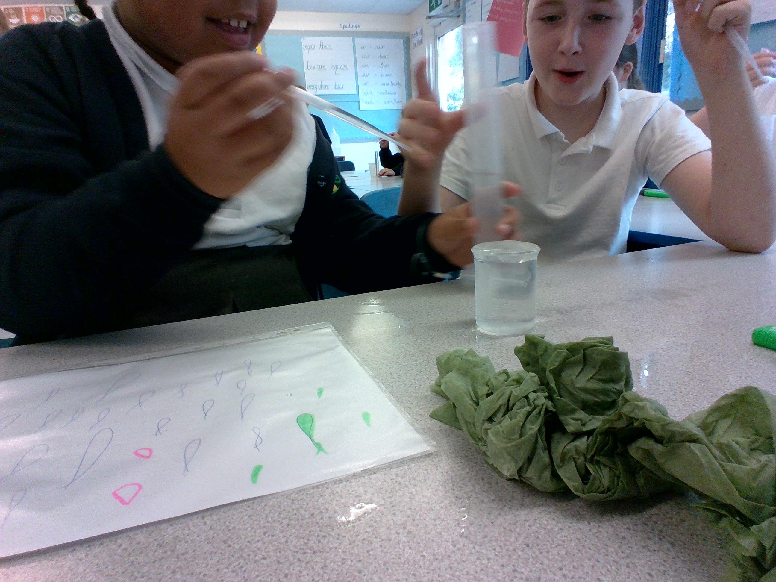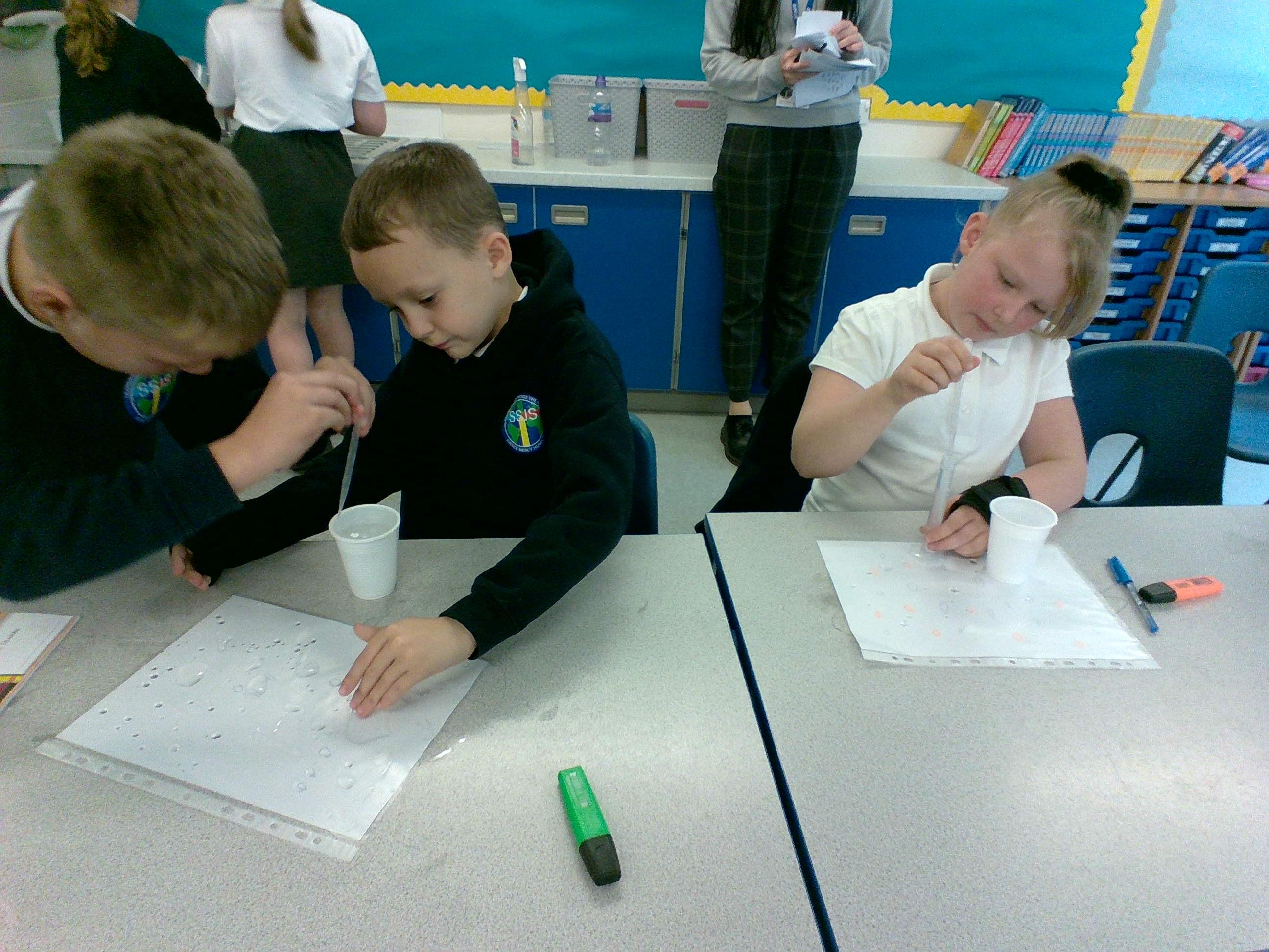 We had lots of fun experimenting with pipettes, beakers and water and noticing the way that water droplets behave.