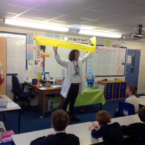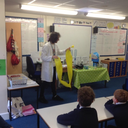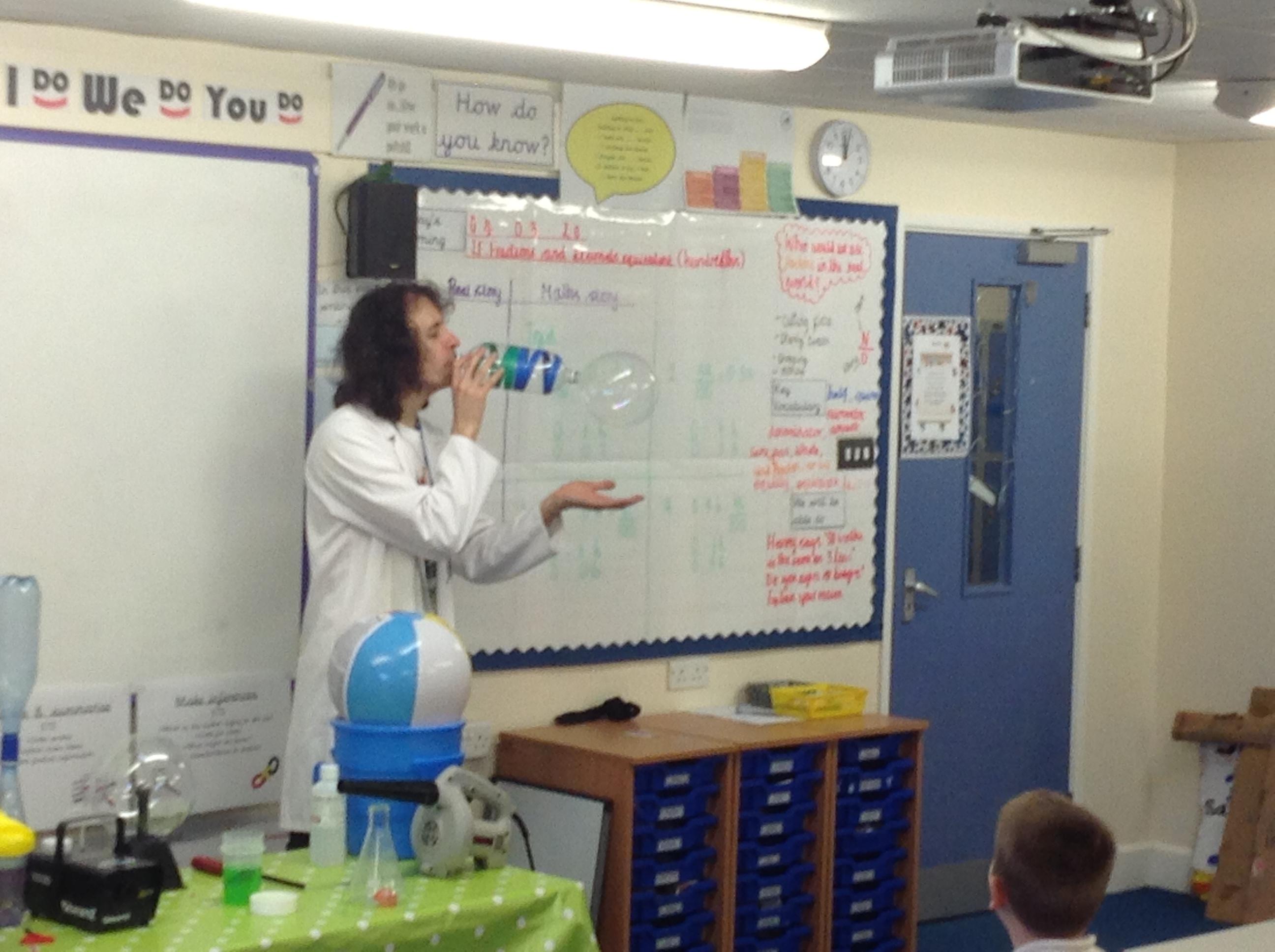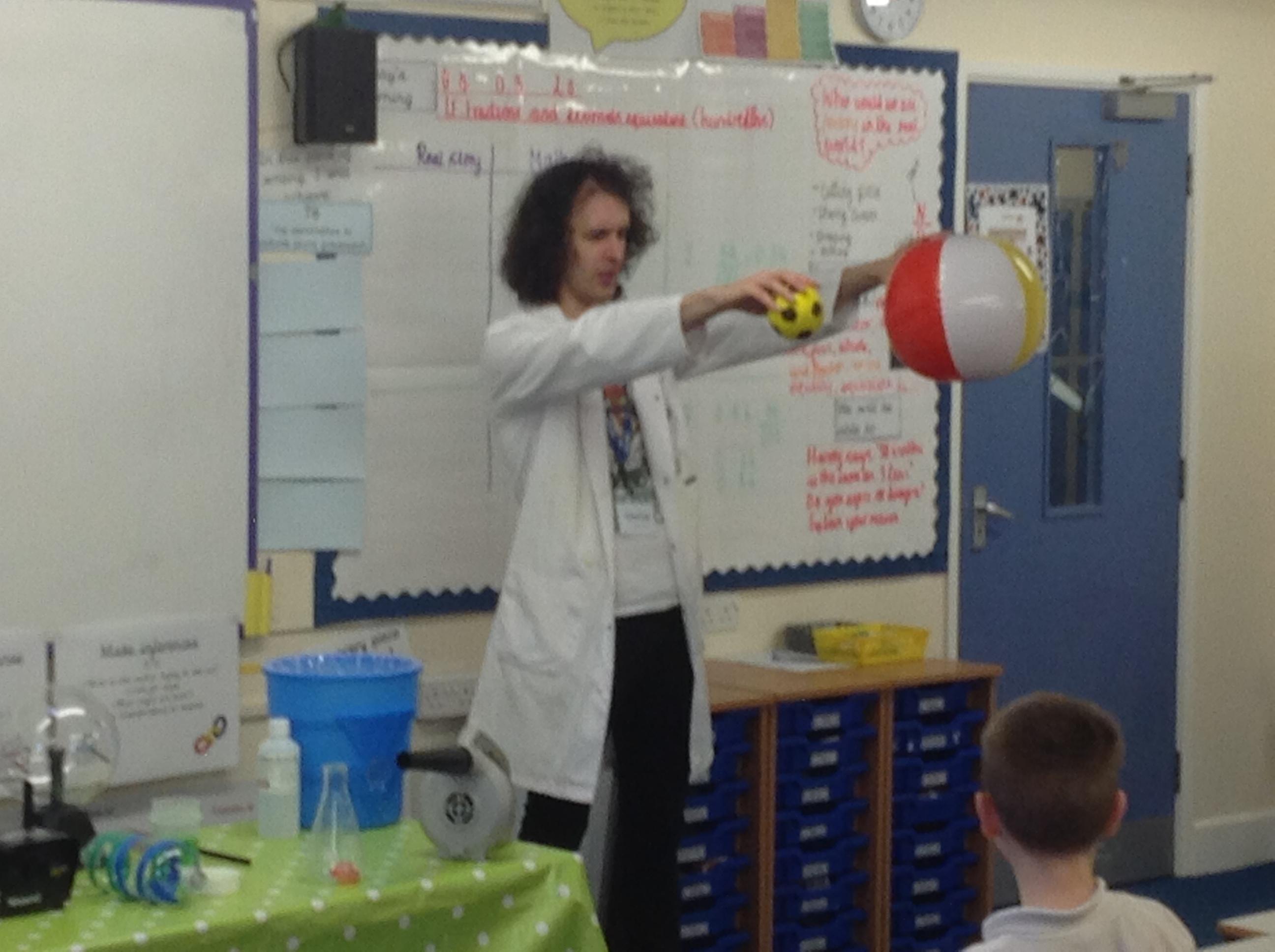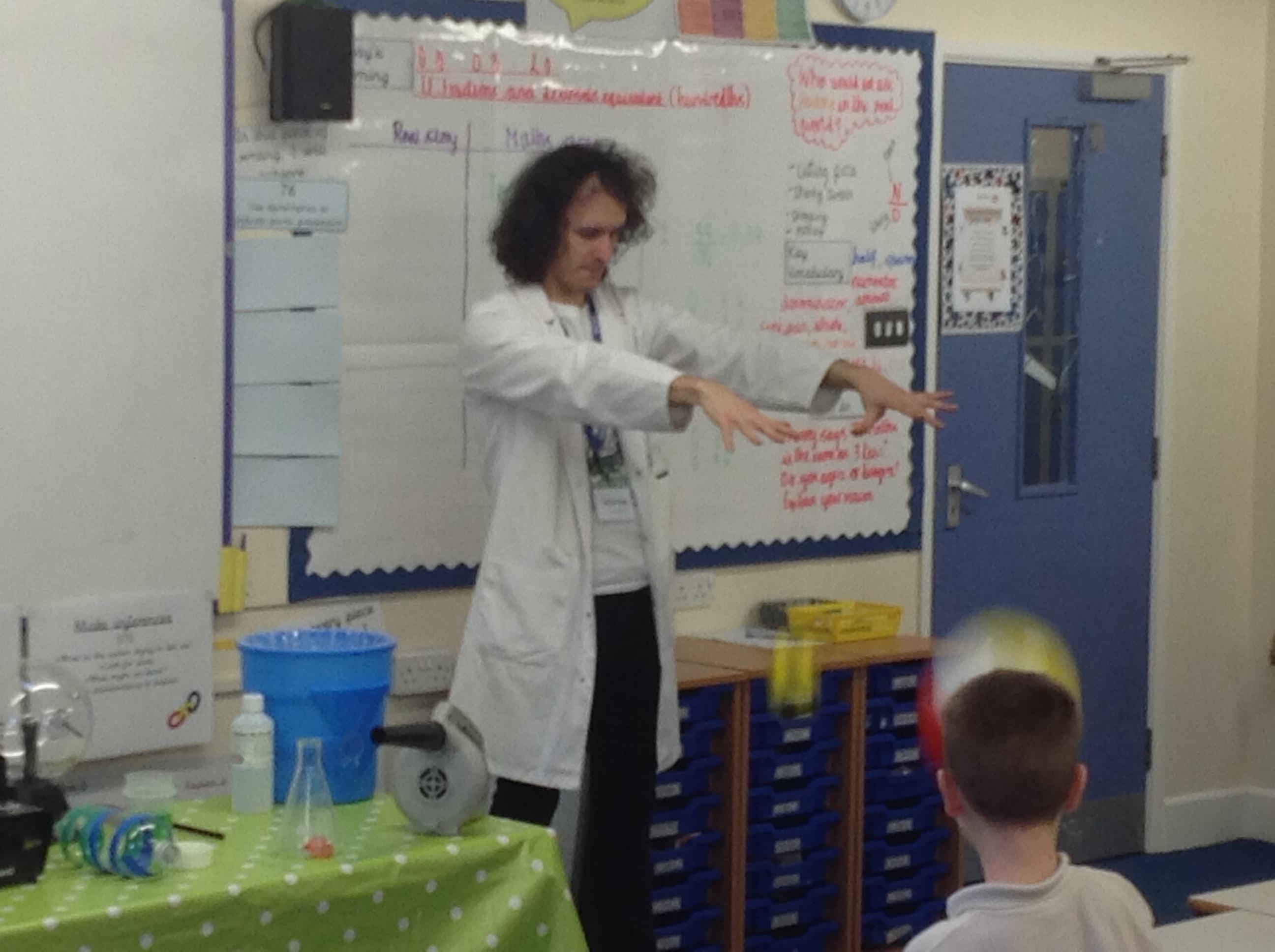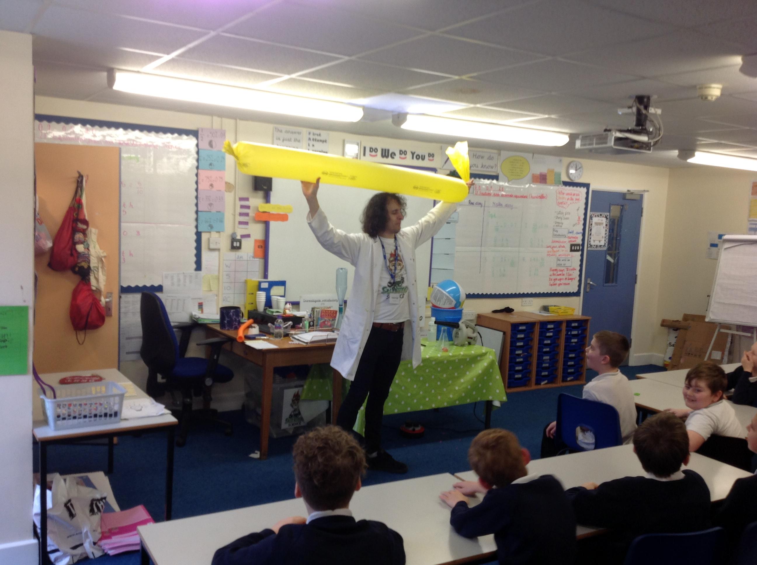 Today we had an amazing workshop led by the scientist Mad Mark. He conducted some science experiments that truly wowed us all. He demonstrated how sound travels, gravity and how air expands in the heat and contracts when it is cold.