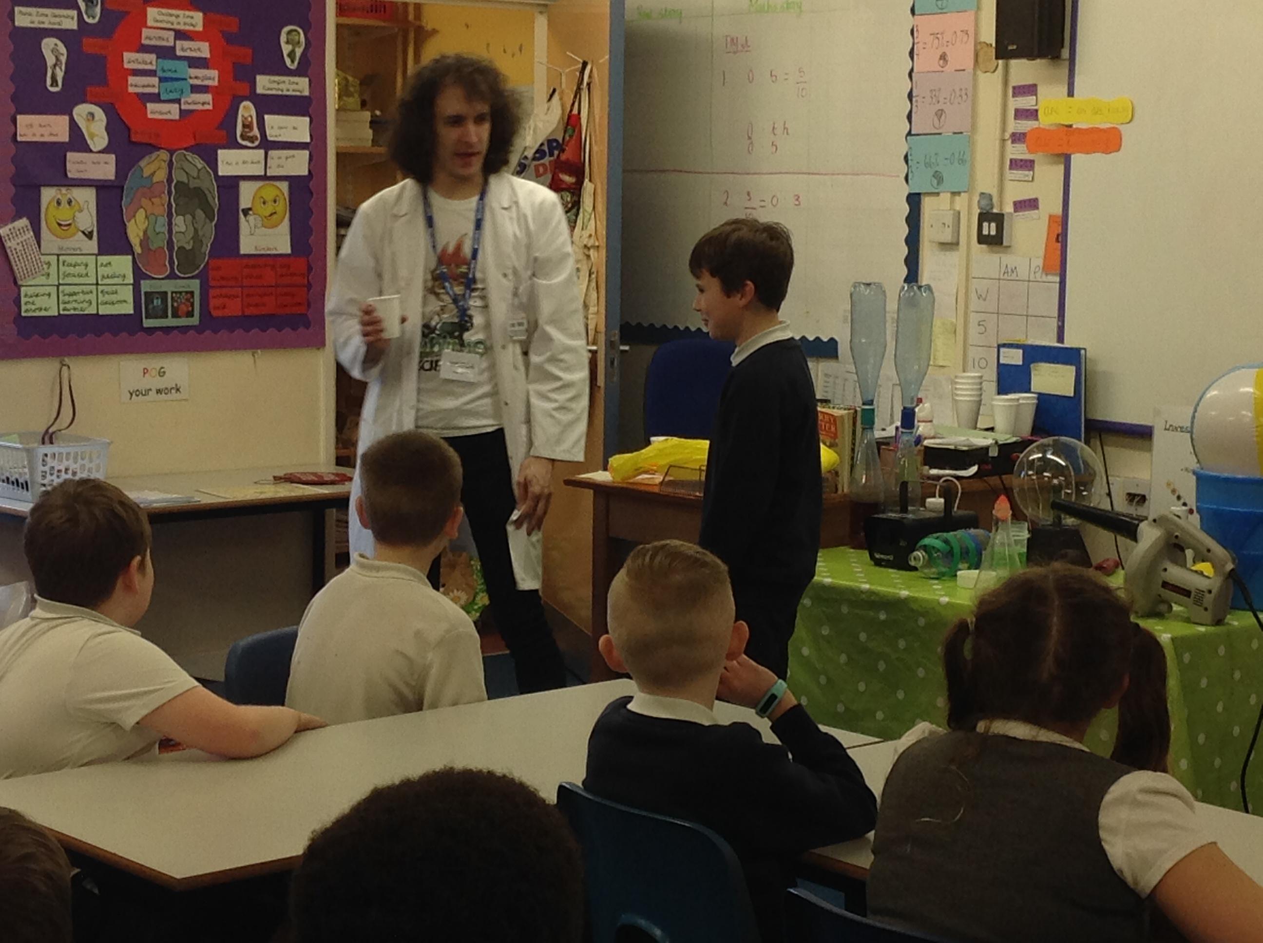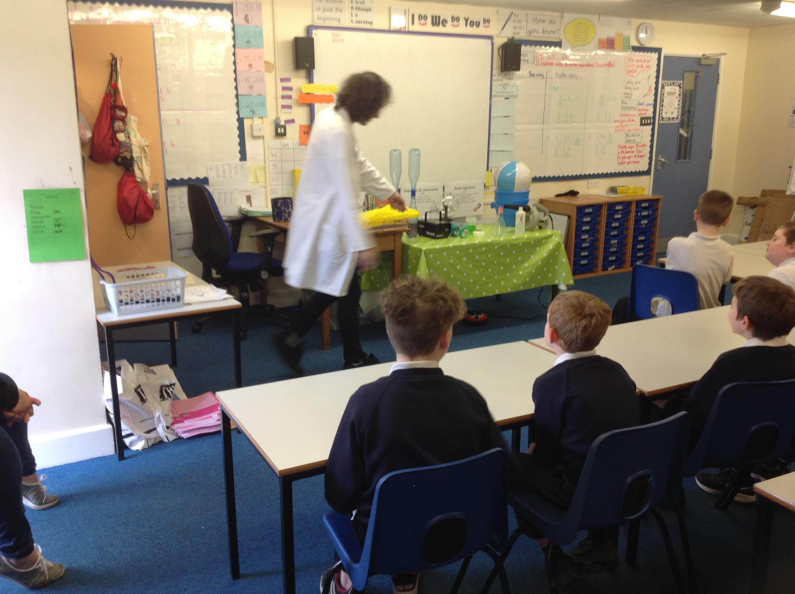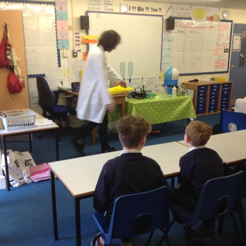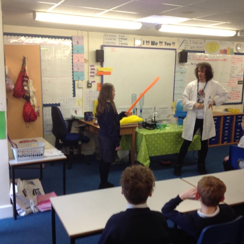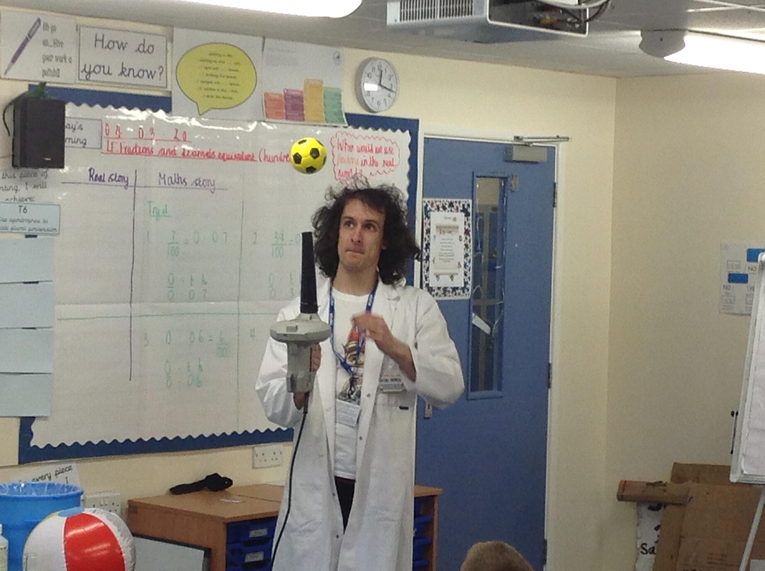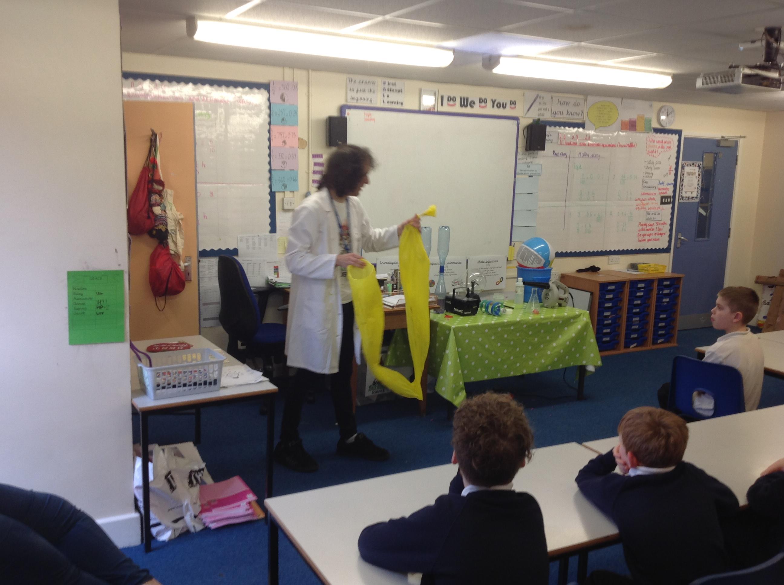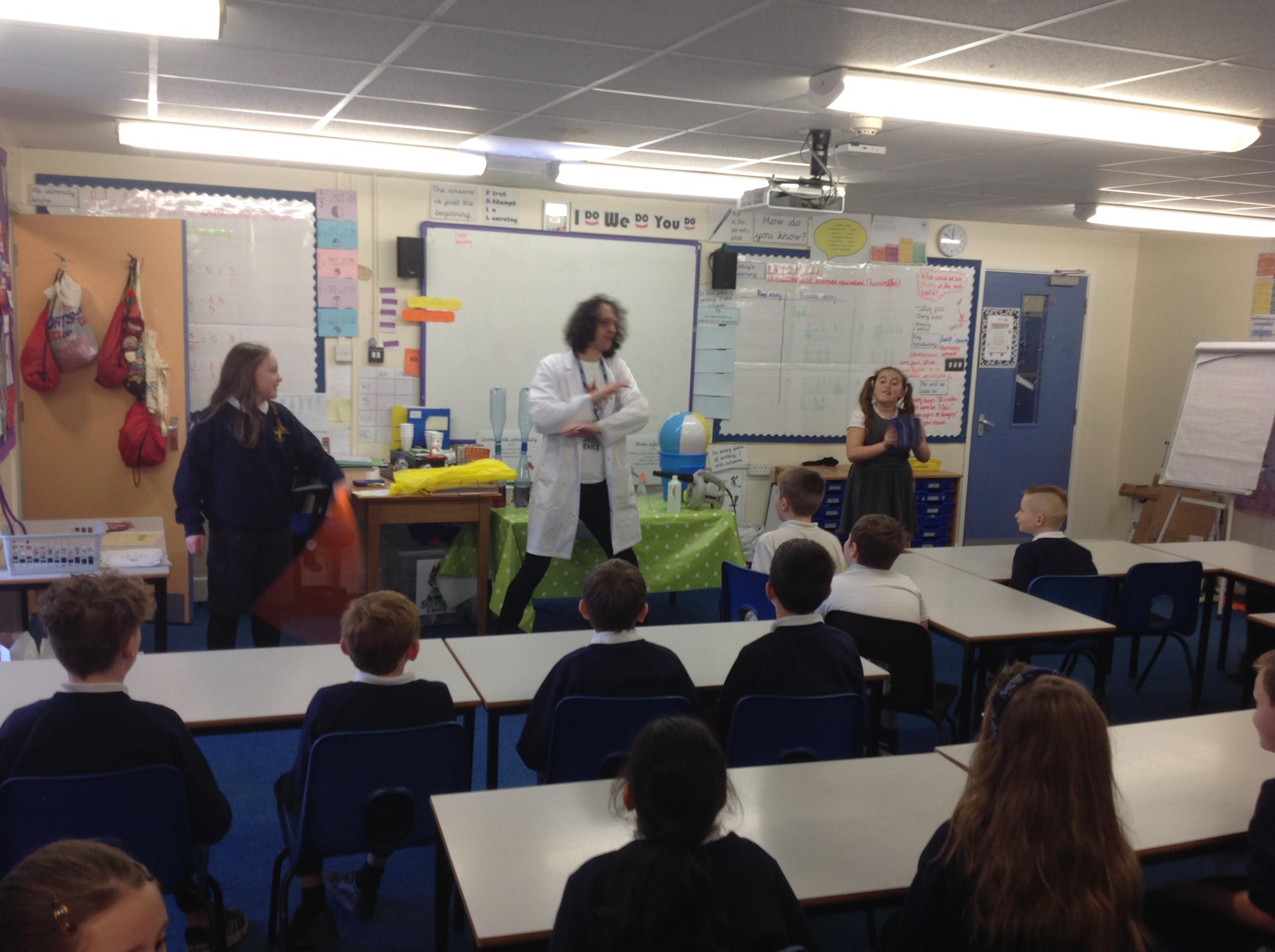Today we had an amazing workshop led by the scientist Mad Mark. He conducted some science experiments that truly wowed us all. He demonstrated how sound travels, gravity and how air expands in the heat and contracts when it is cold.