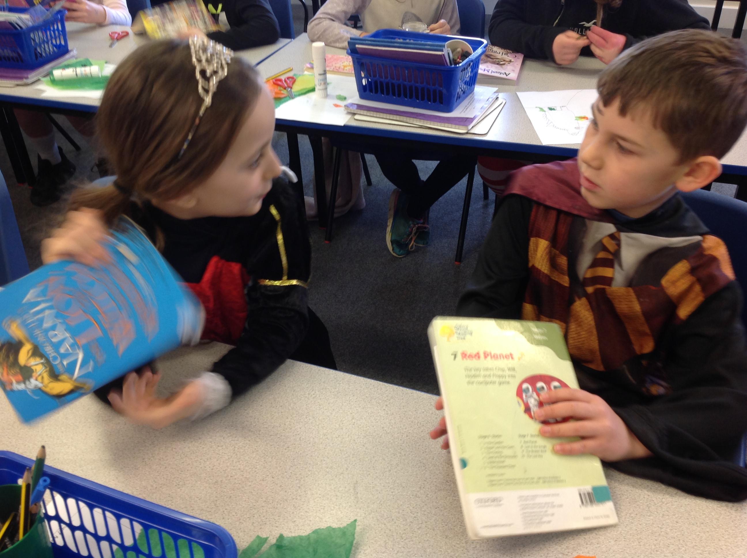 Today, World Book Day arrived in Year 5. We shared our favourite book with 3MK and had a biscuit, experienced speed book dating where shared a little about our book of the day with a member of the class and then moved on after a couple of minutes and finally learnt the poem’ There’s a dog in the playground’ by Allan Ahlberg. Our final challenge was to perform the poem in a sharing assembly to the whole school at the end of the day.