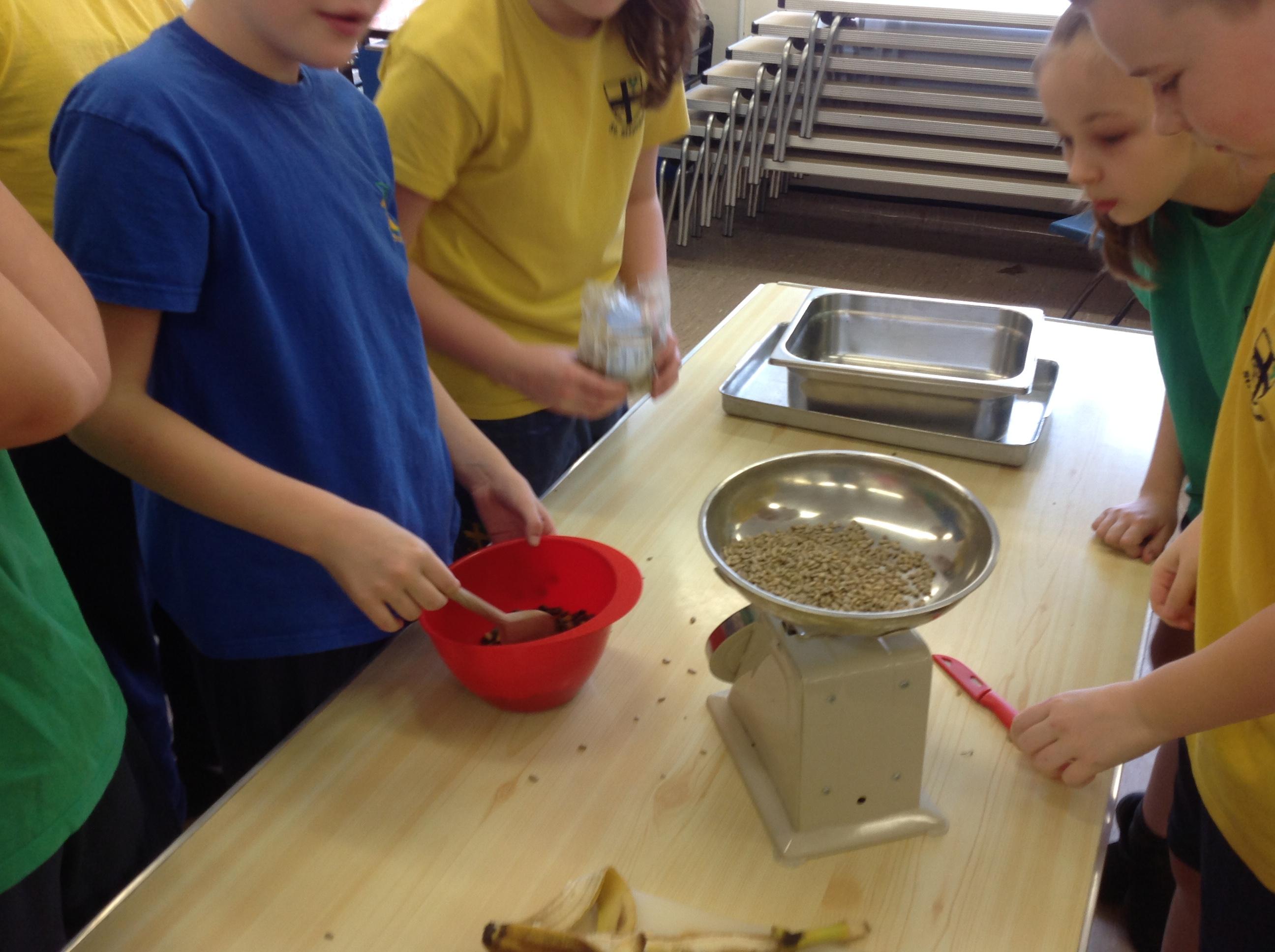 As well as looking at how sugar is grown we studied some food labels and looked at the sugar content in many different food types. We were amazed at how much sugar can be hidden in some of our favourite foods. Before lunch, we made some healthy breakfast bars- see the recipe below, using some really heathy and naturally sweet ingredients.