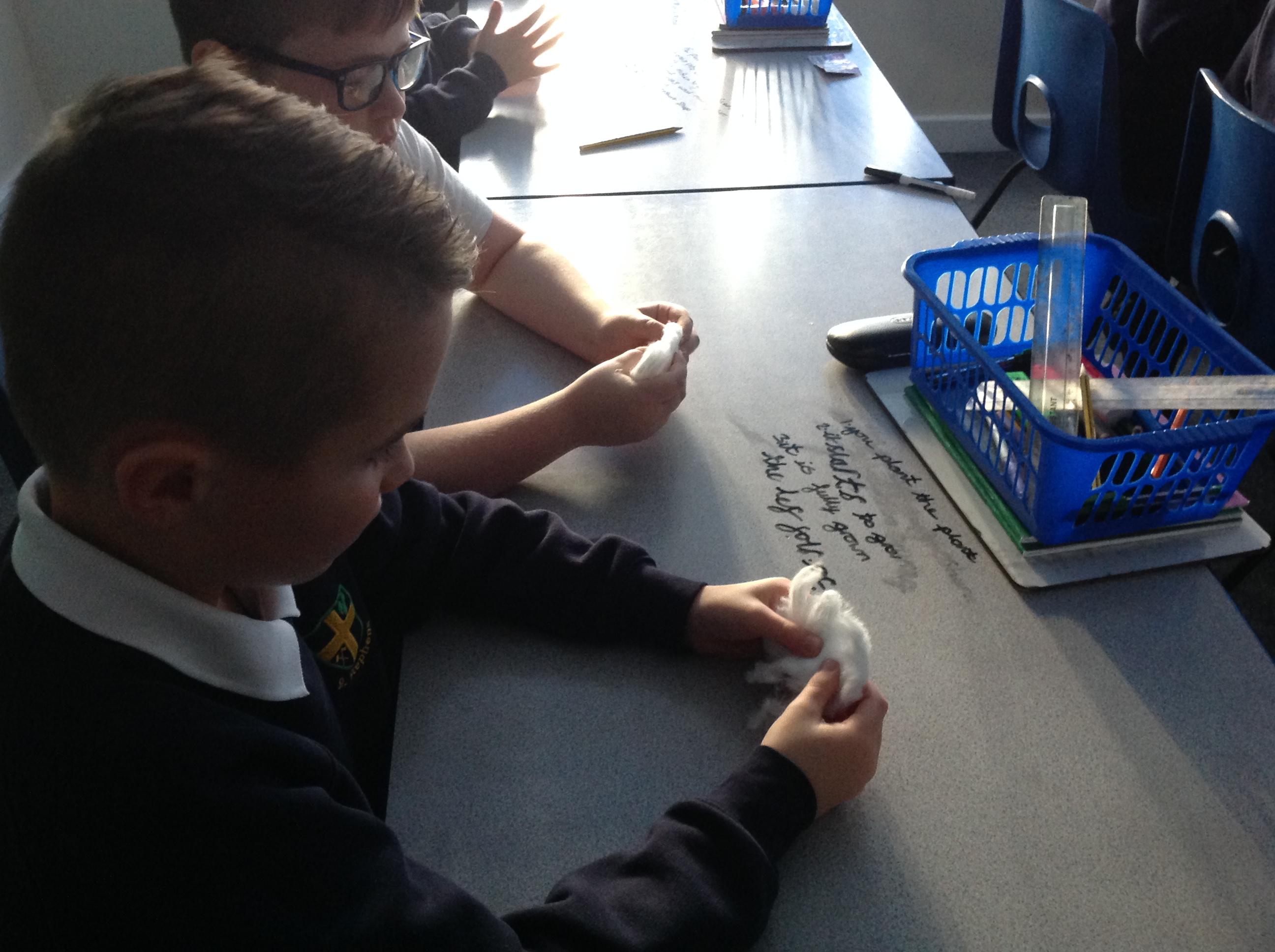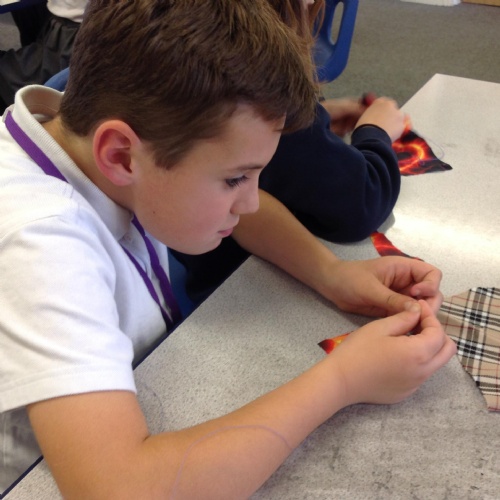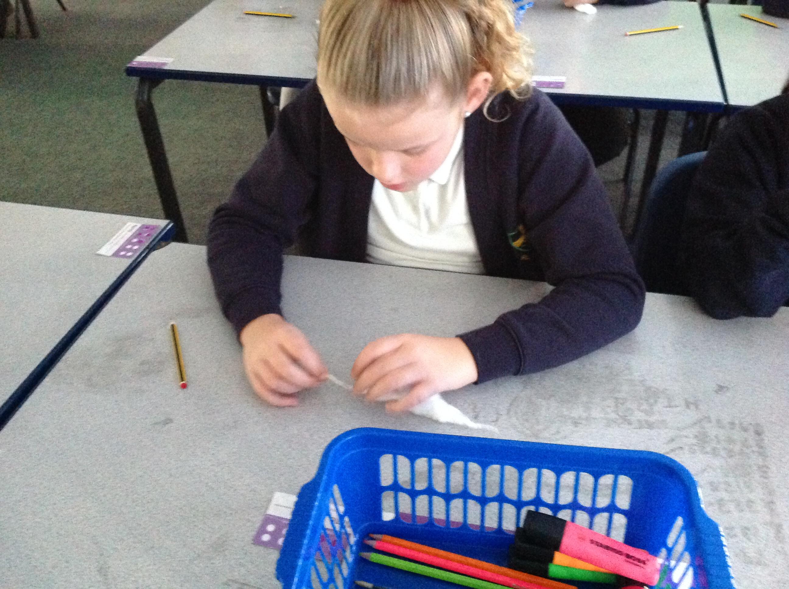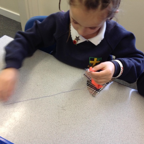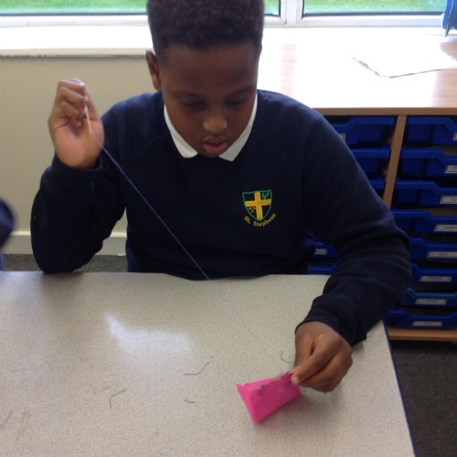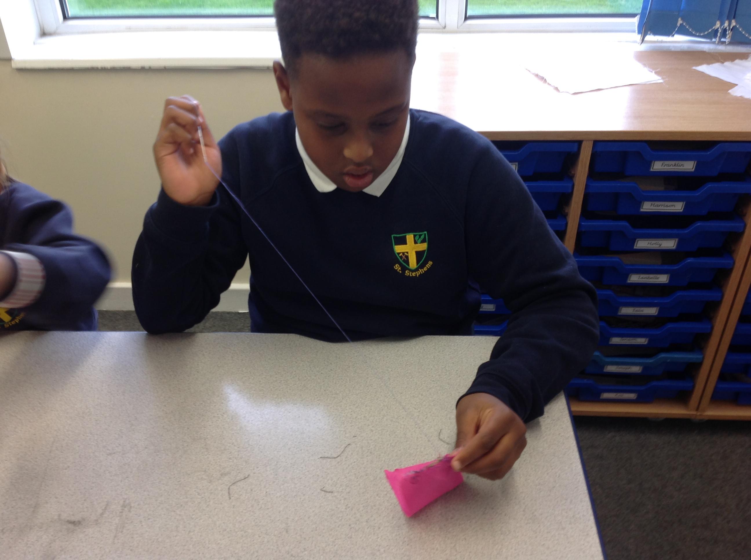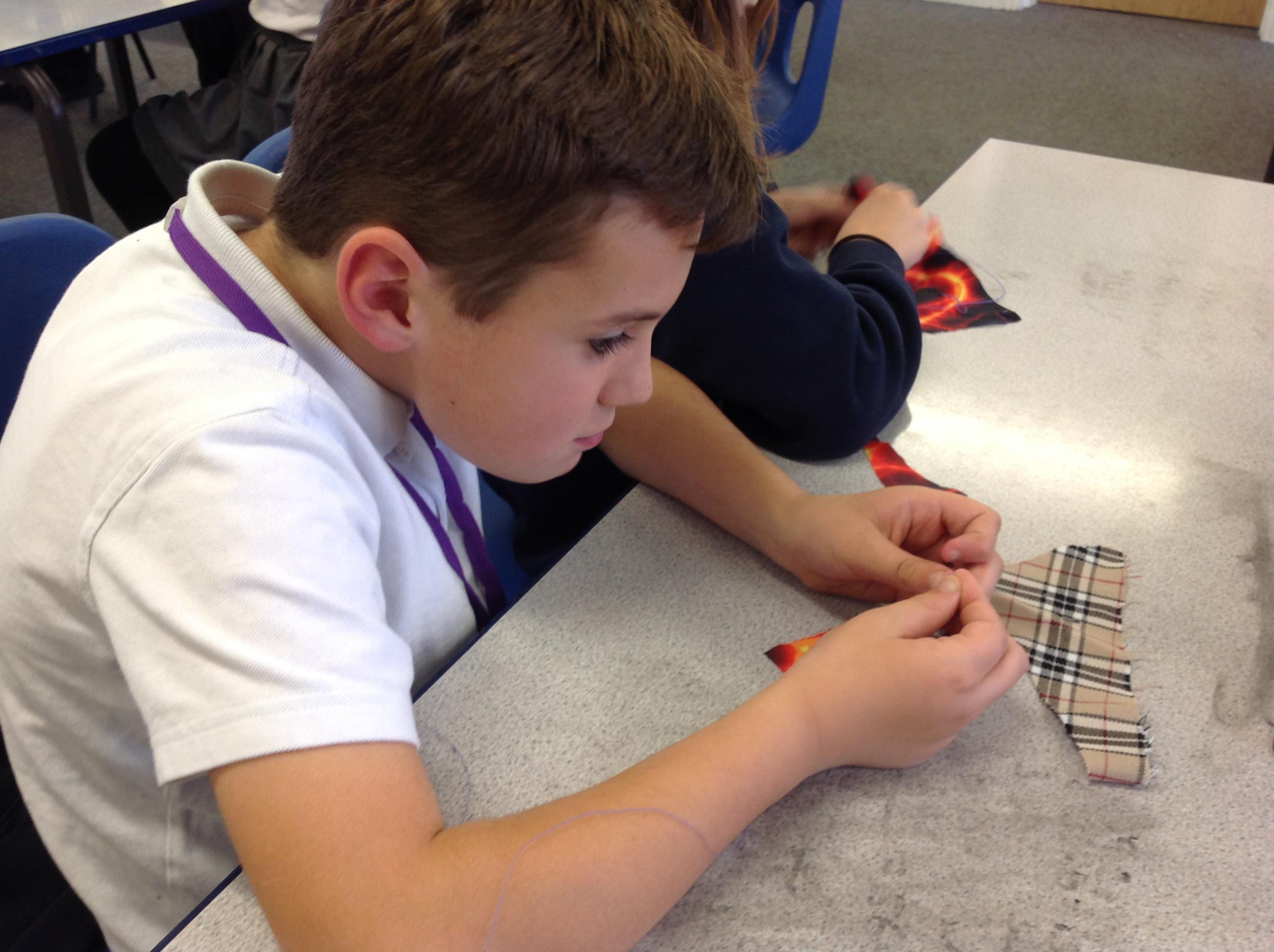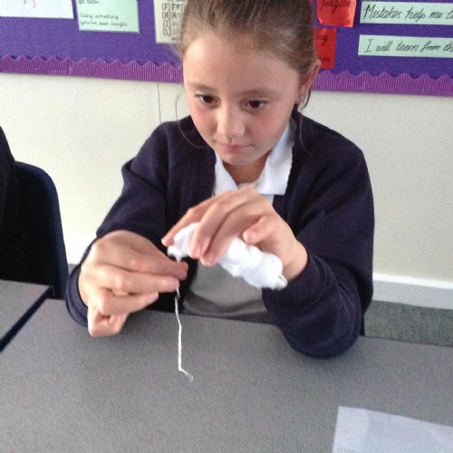 We then learned what it could be like to work in a cotton mill. We tried to create thread from raw cotton and we also learned how to stitch two pieces of material together by hand- something which many people are still doing as part of their jobs.