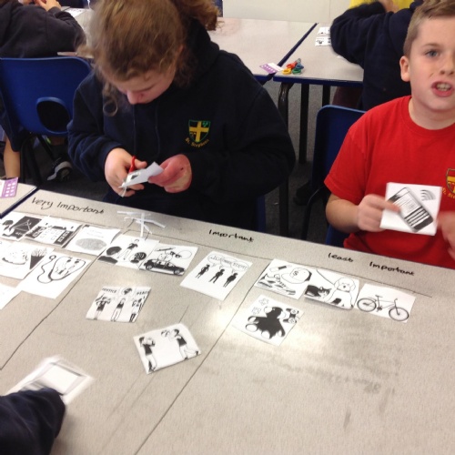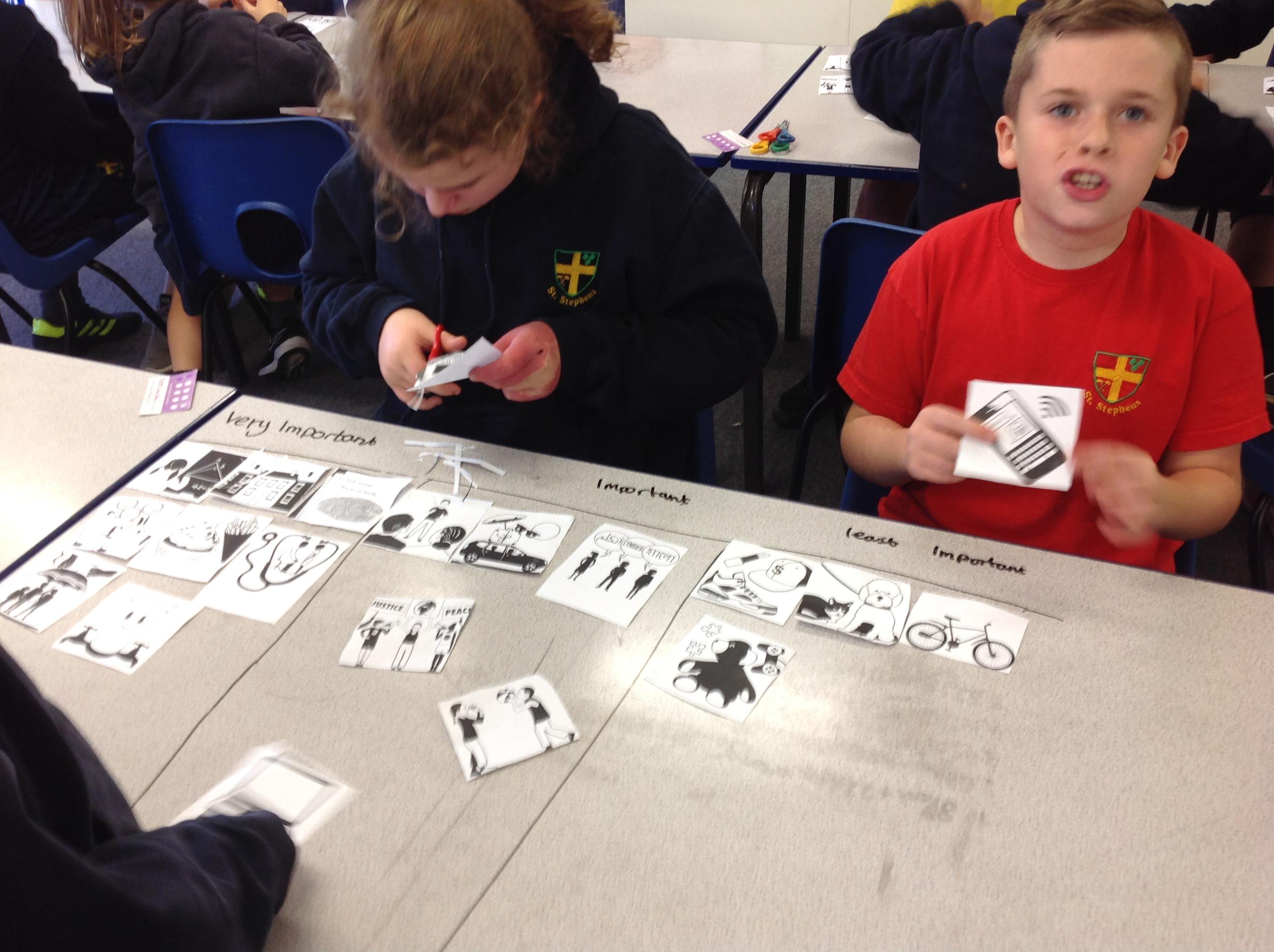We started off by sorting different images into: Most important, important and least important. Later on, we watched a film about children in India and how they prioritise the images differently. We finished off by discussing the difference between wants and needs. Later this week, we will be writing up or own class charter about the rights that we will adhere to so that everyone is able to access learning.
