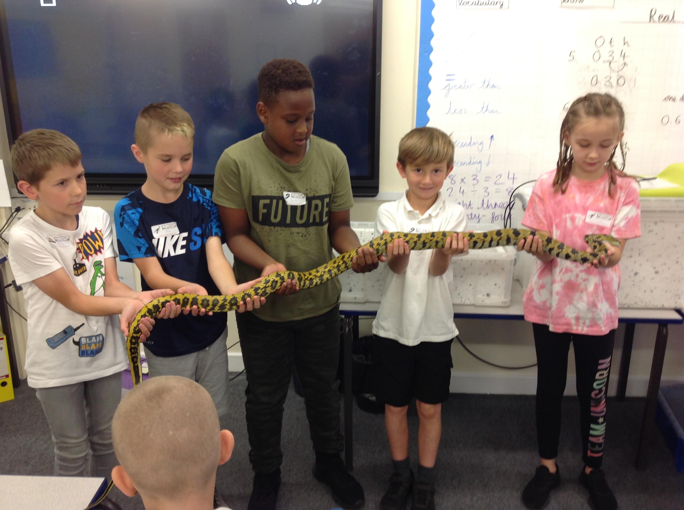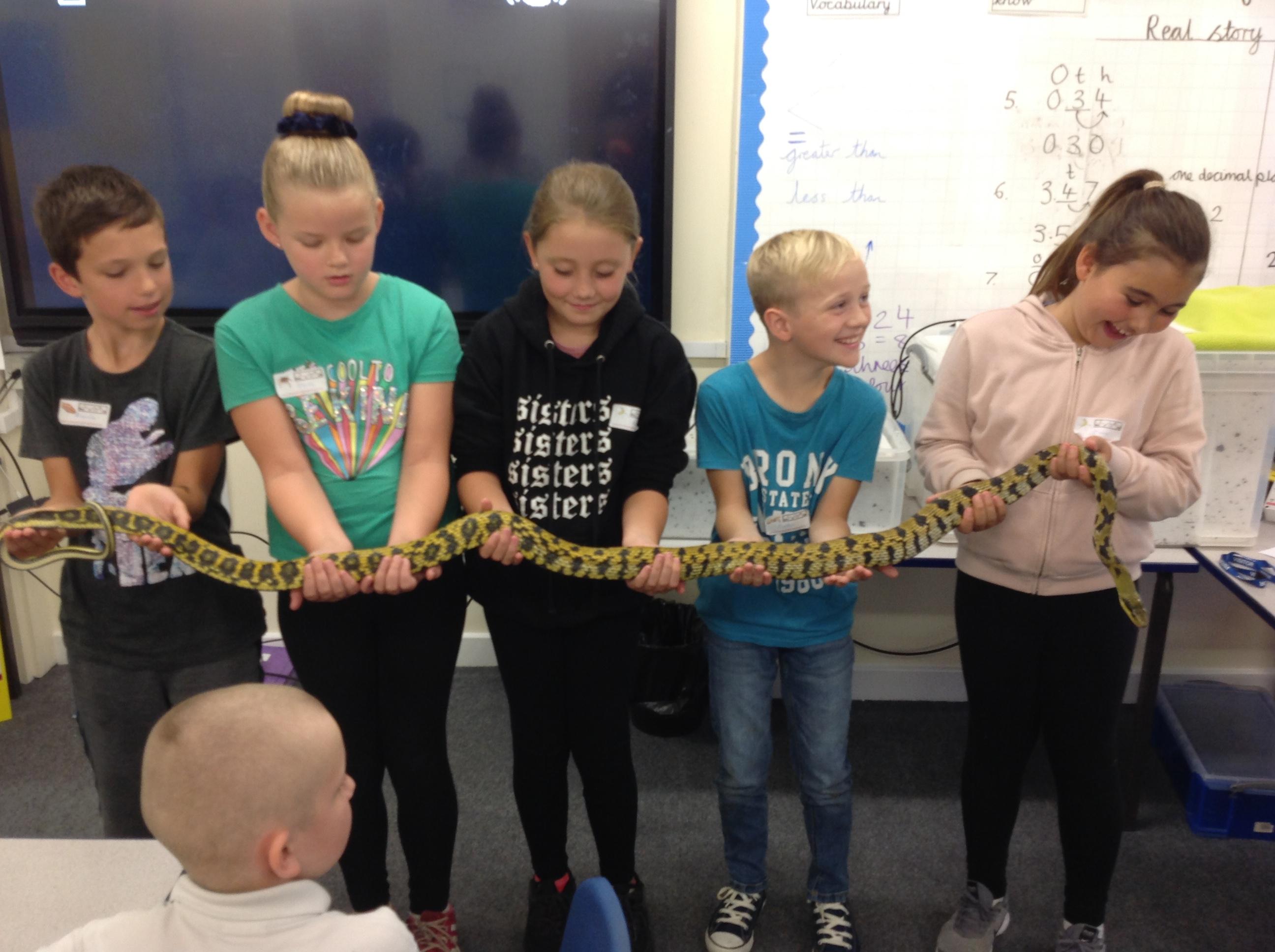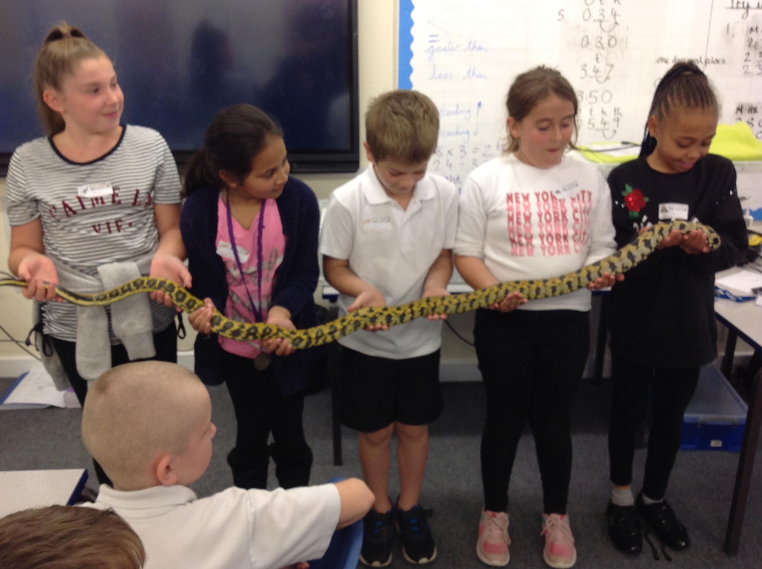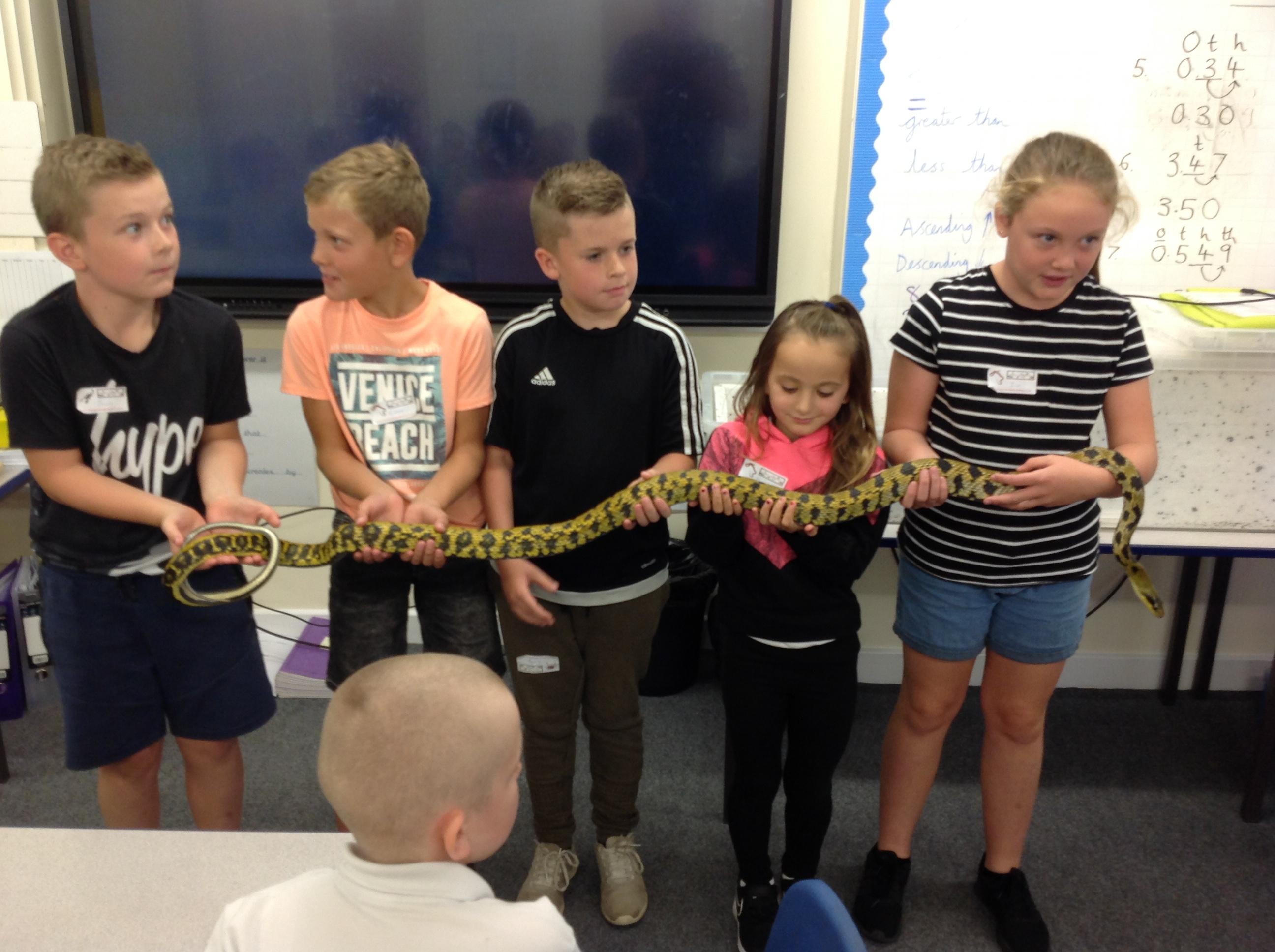 For our WOW day we were lucky enough to have ‘Jungle Jonathan’ come in to school with his collection of exotic rainforest animals. We encountered a tarantula, a scorpion, stick insects, a gecko and even a snake! We learnt about the effects that deforestation is having on these animals' homes. We are looking forward to finding out about what we can do to help prevent this from happening.