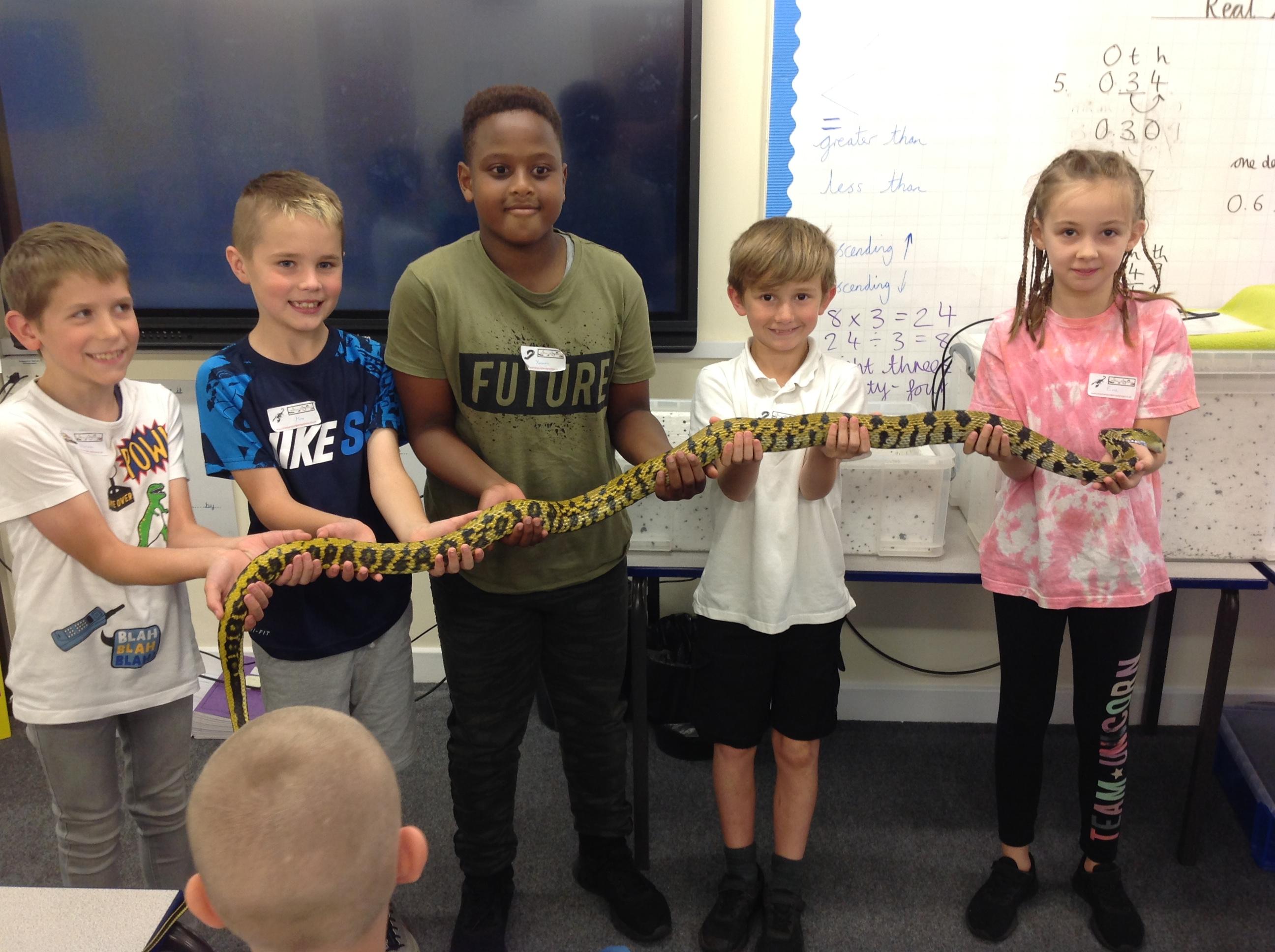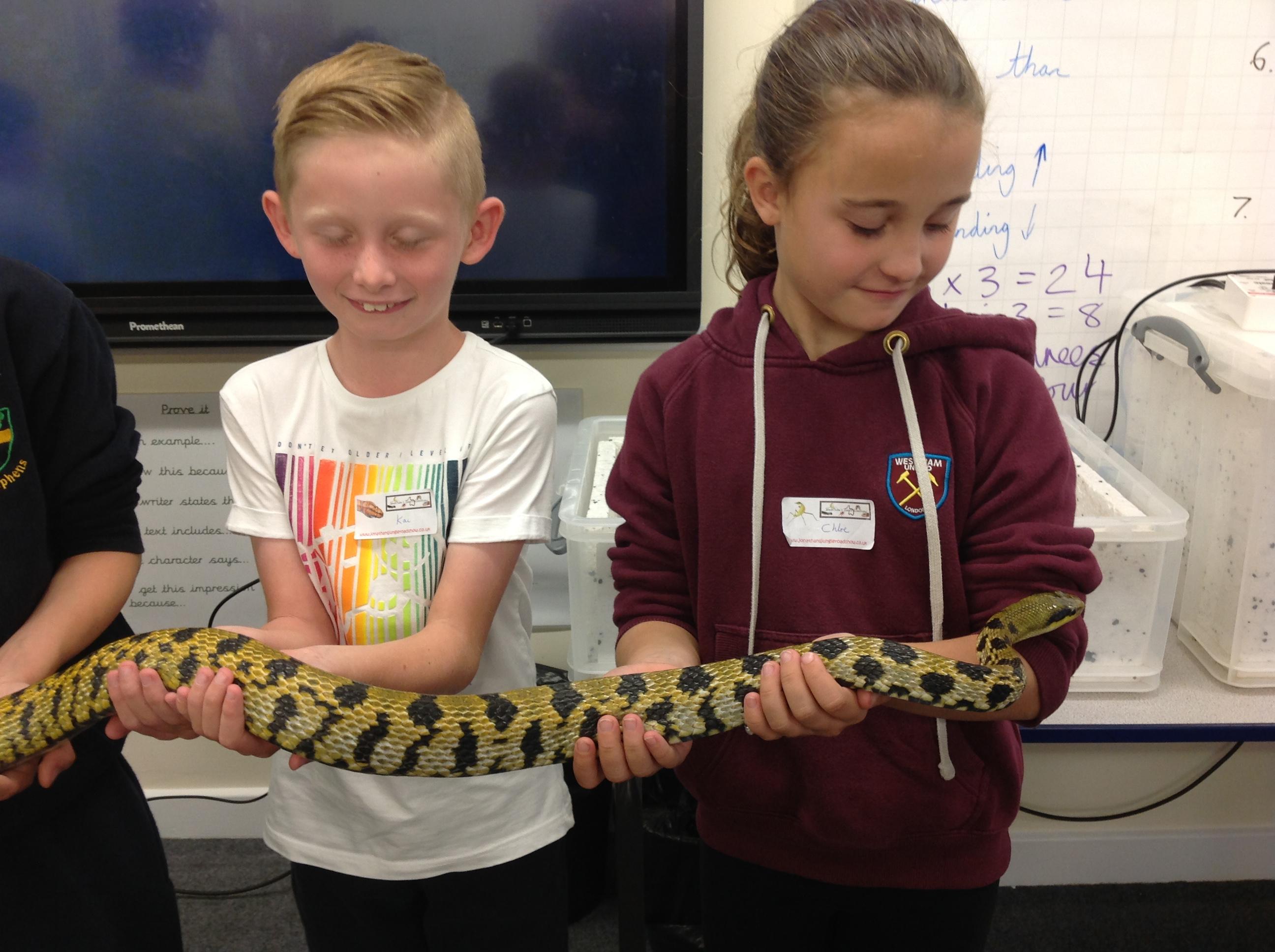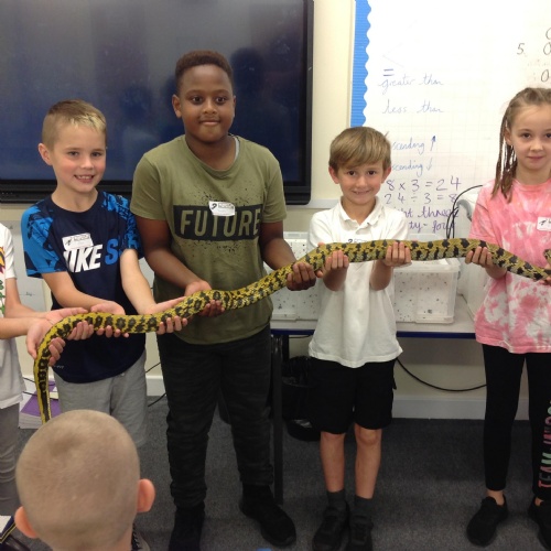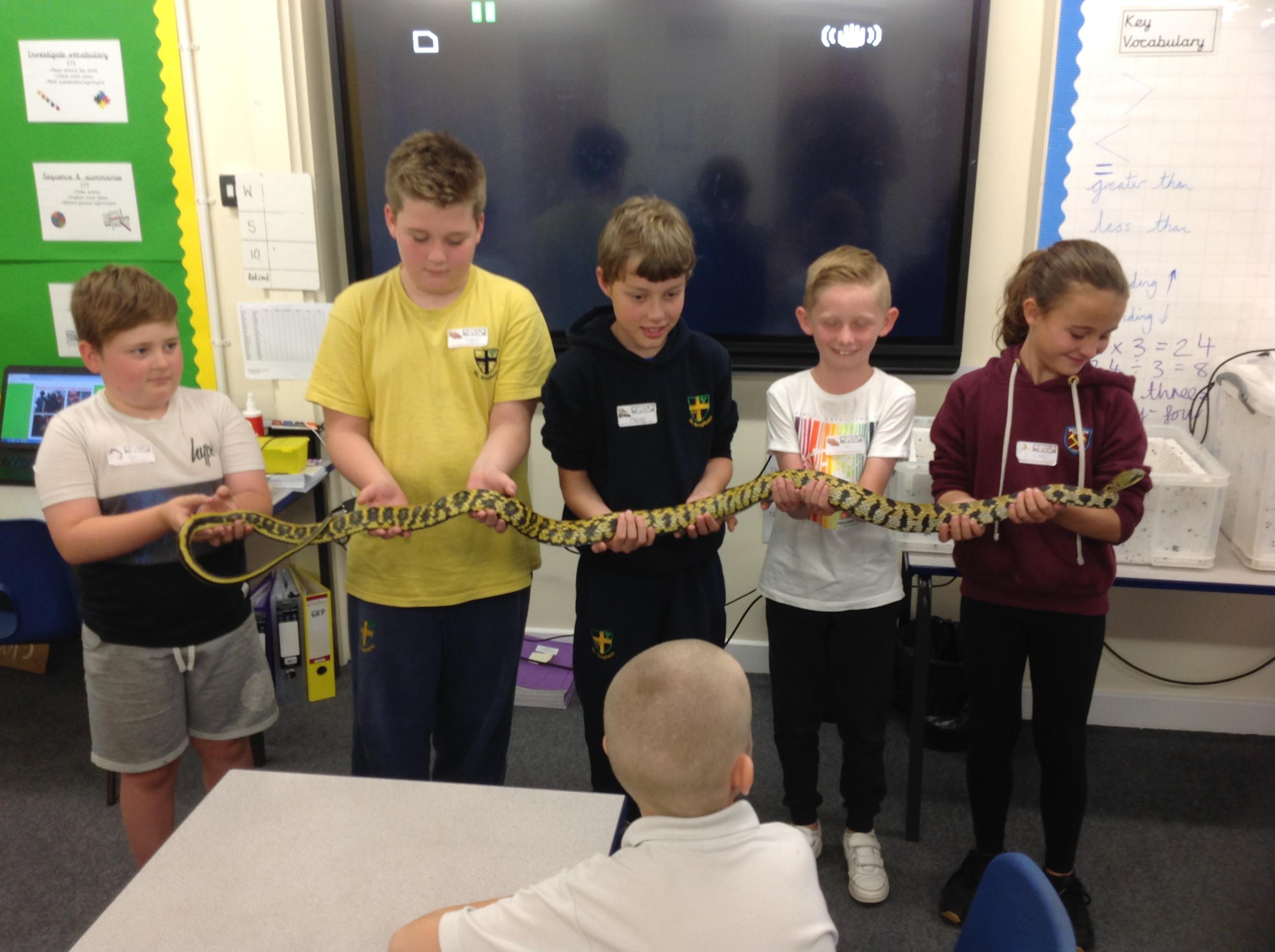 For our WOW day we were lucky enough to have ‘Jungle Jonathan’ come in to school with his collection of exotic rainforest animals. We encountered a tarantula, a scorpion, stick insects, a gecko and even a snake! We learnt about the effects that deforestation is having on these animals' homes. We are looking forward to finding out about what we can do to help prevent this from happening.