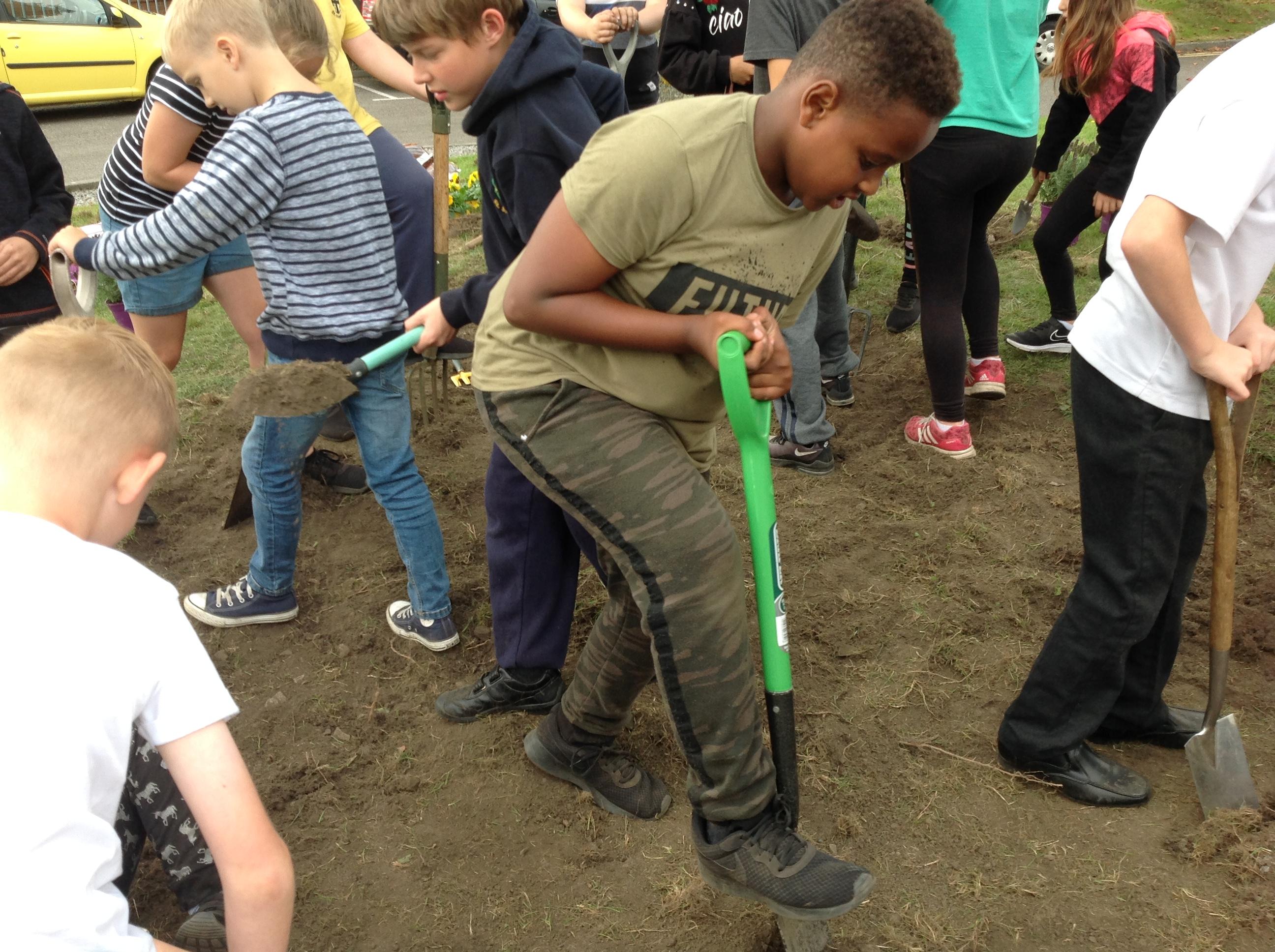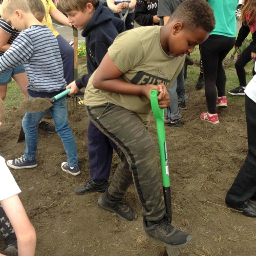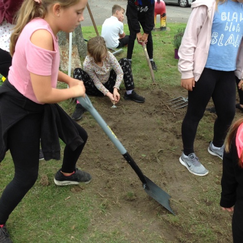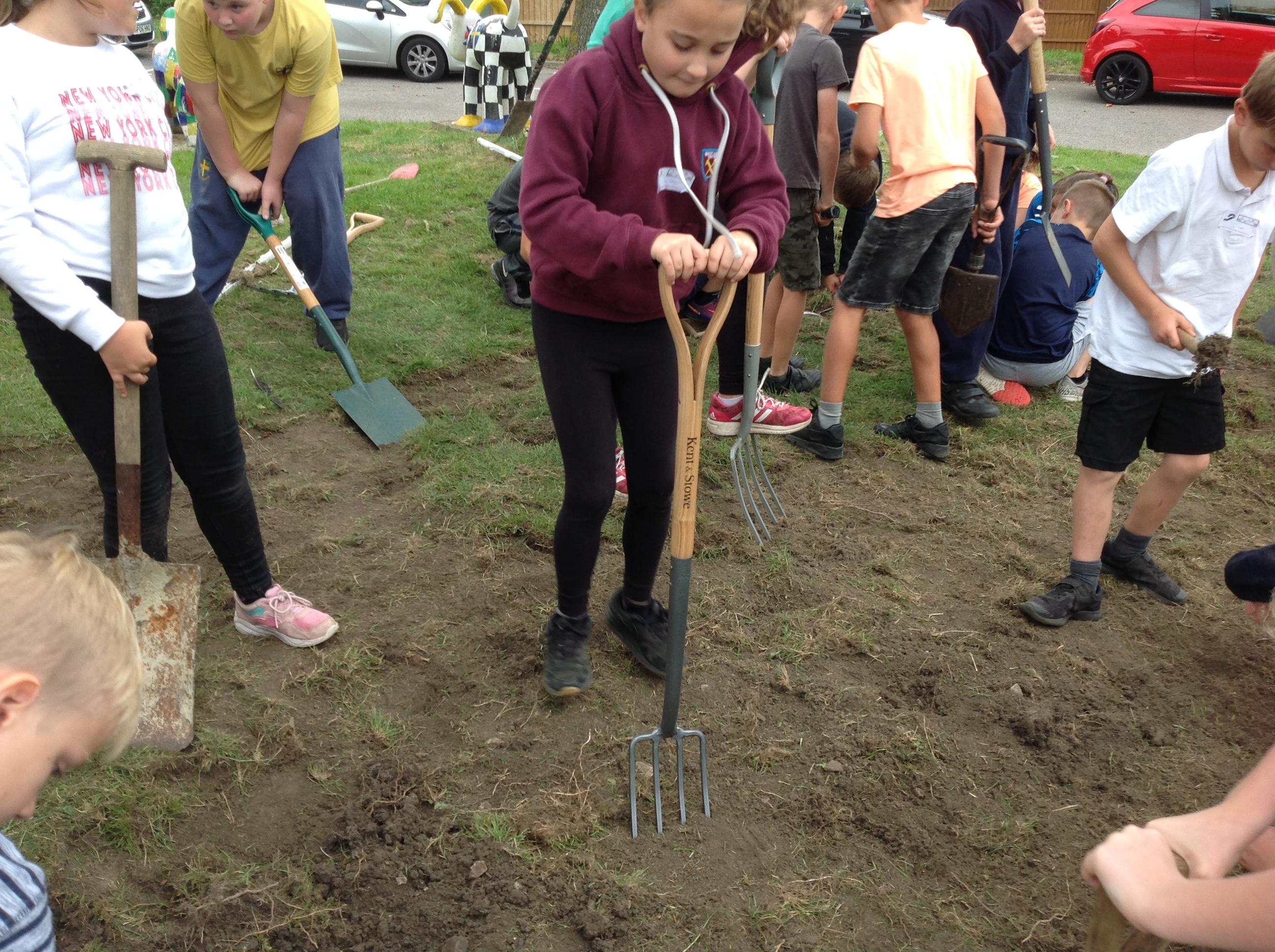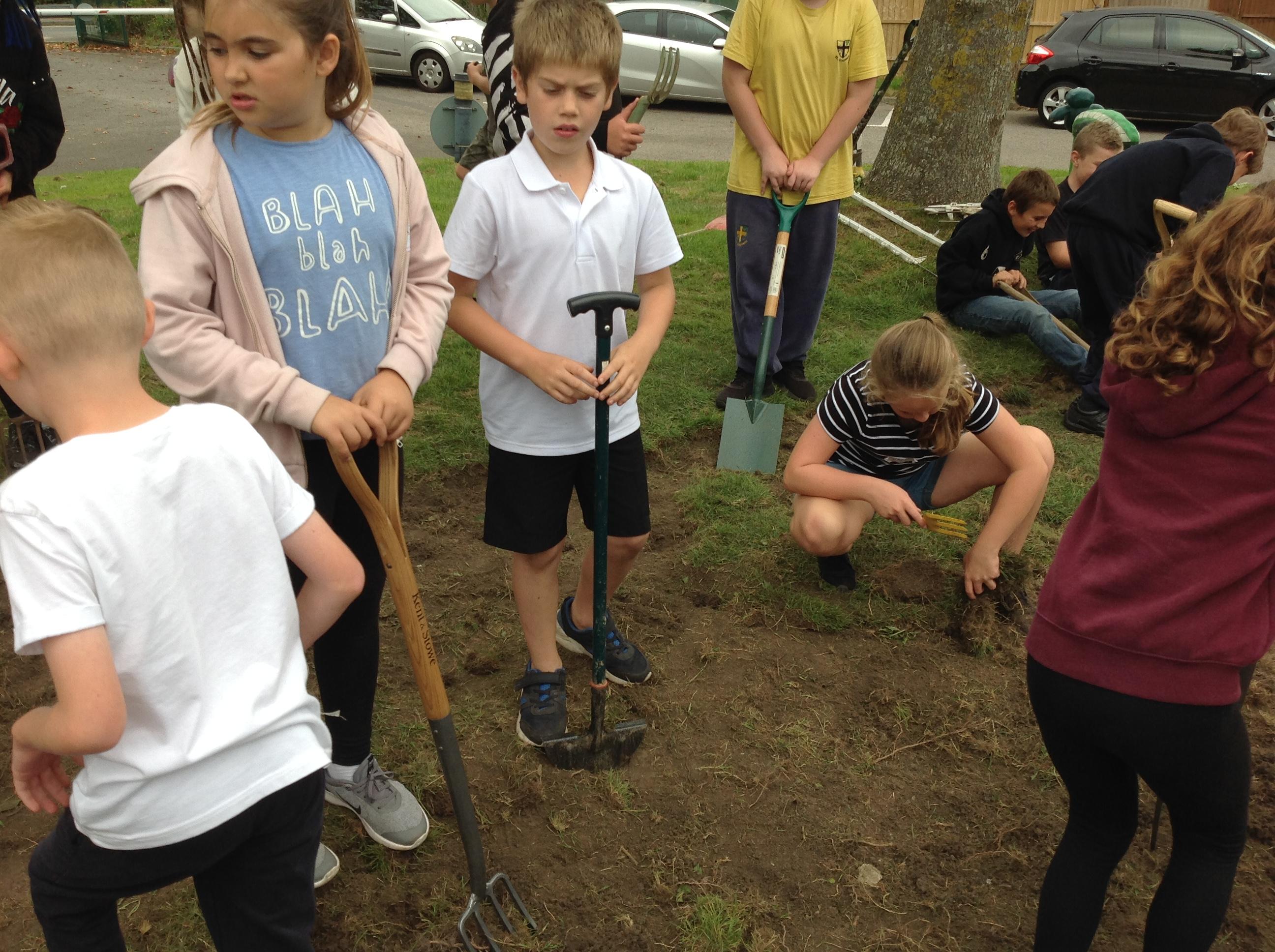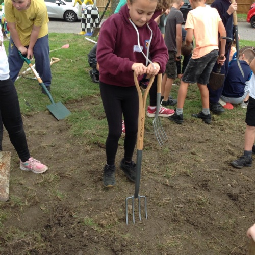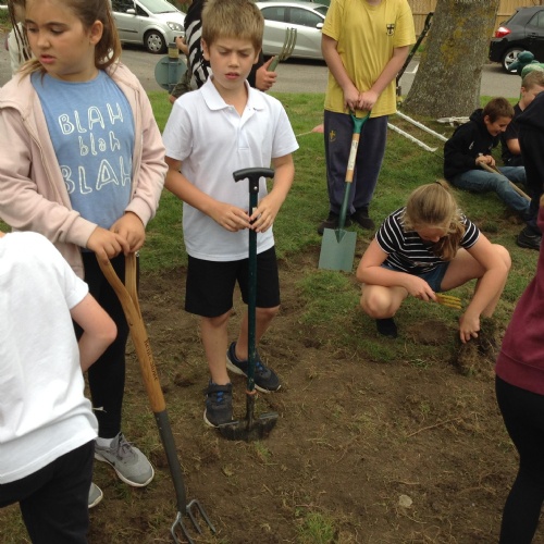 Not only did we have our session with Jonathan, we also spent some time 'Rewilding' part of the roundabout at the front of the school. It was much harder work that we had initially thought. First we had to remove the grass from the top and then dig down and turn over the soil. Finally, we will be planting flowers and sowing seeds that will entice bees. This is our contribution to the Global Goal- Life on land.