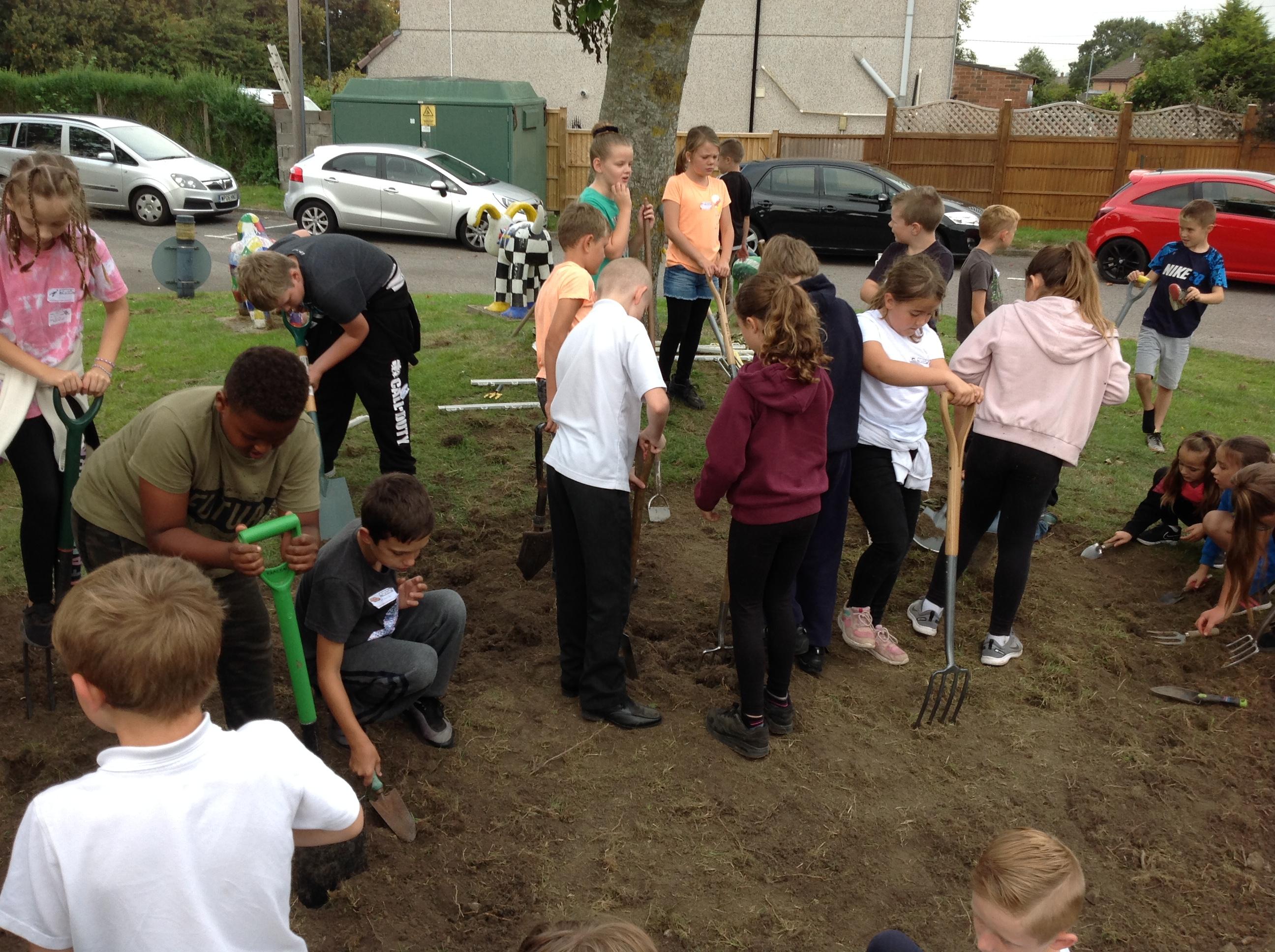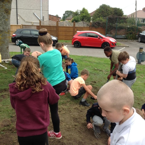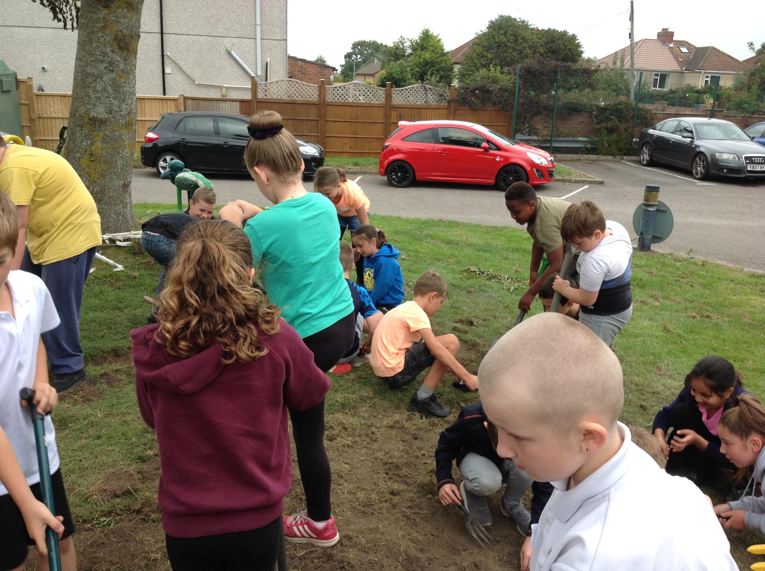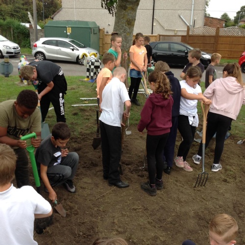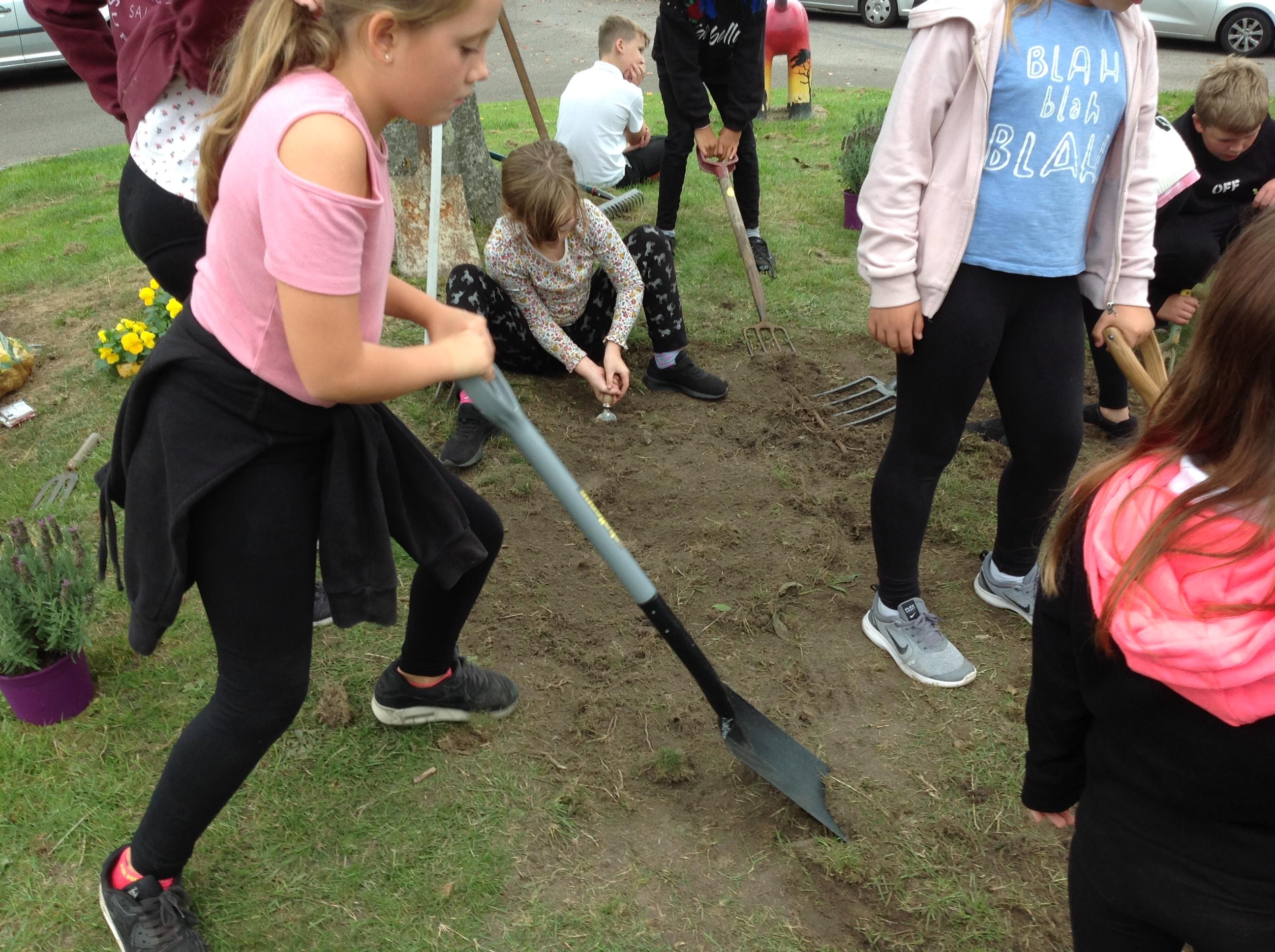 Not only did we have our session with Jonathan, we also spent some time 'Rewilding' part of the roundabout at the front of the school. It was much harder work that we had initially thought. First we had to remove the grass from the top and then dig down and turn over the soil. Finally, we will be planting flowers and sowing seeds that will entice bees. This is our contribution to the Global Goal- Life on land.