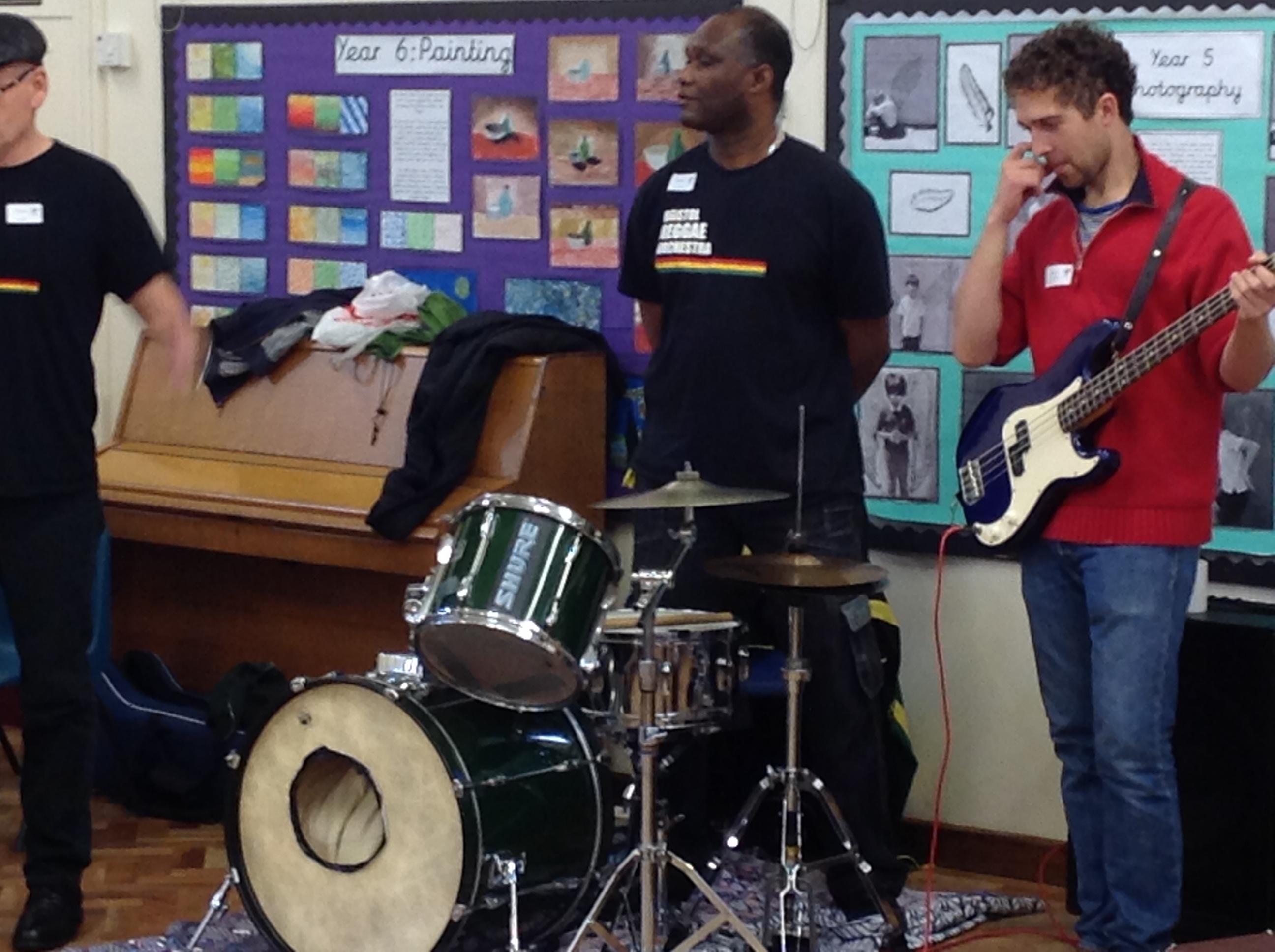 Wow what an impressive group of lively, energetic and inspiring musicians. We were entertained by the Bristol Reggae Orchestra- the only one of its kind in the world. Not only did each of the musicians introduce their instruments but they also played some iconic reggae tunes.