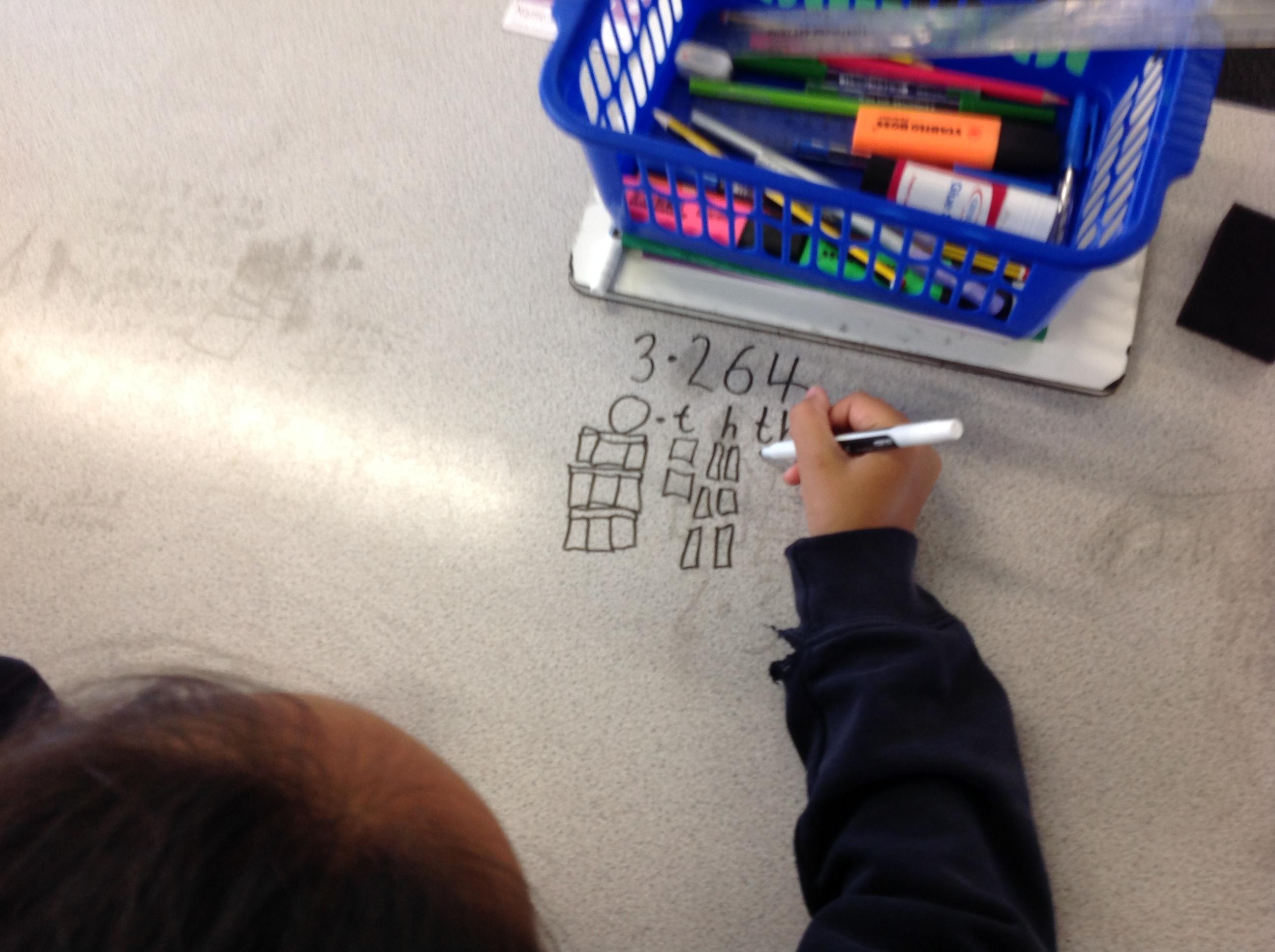 Today, we moved on with our Place Value maths learning by looking at decimals. We know that the further away from the decimal point to the right the smaller the part of the whole. Though the use of dienes, we explored how to make numbers up to three decimal places as well as using money to show two decimal place numbers.