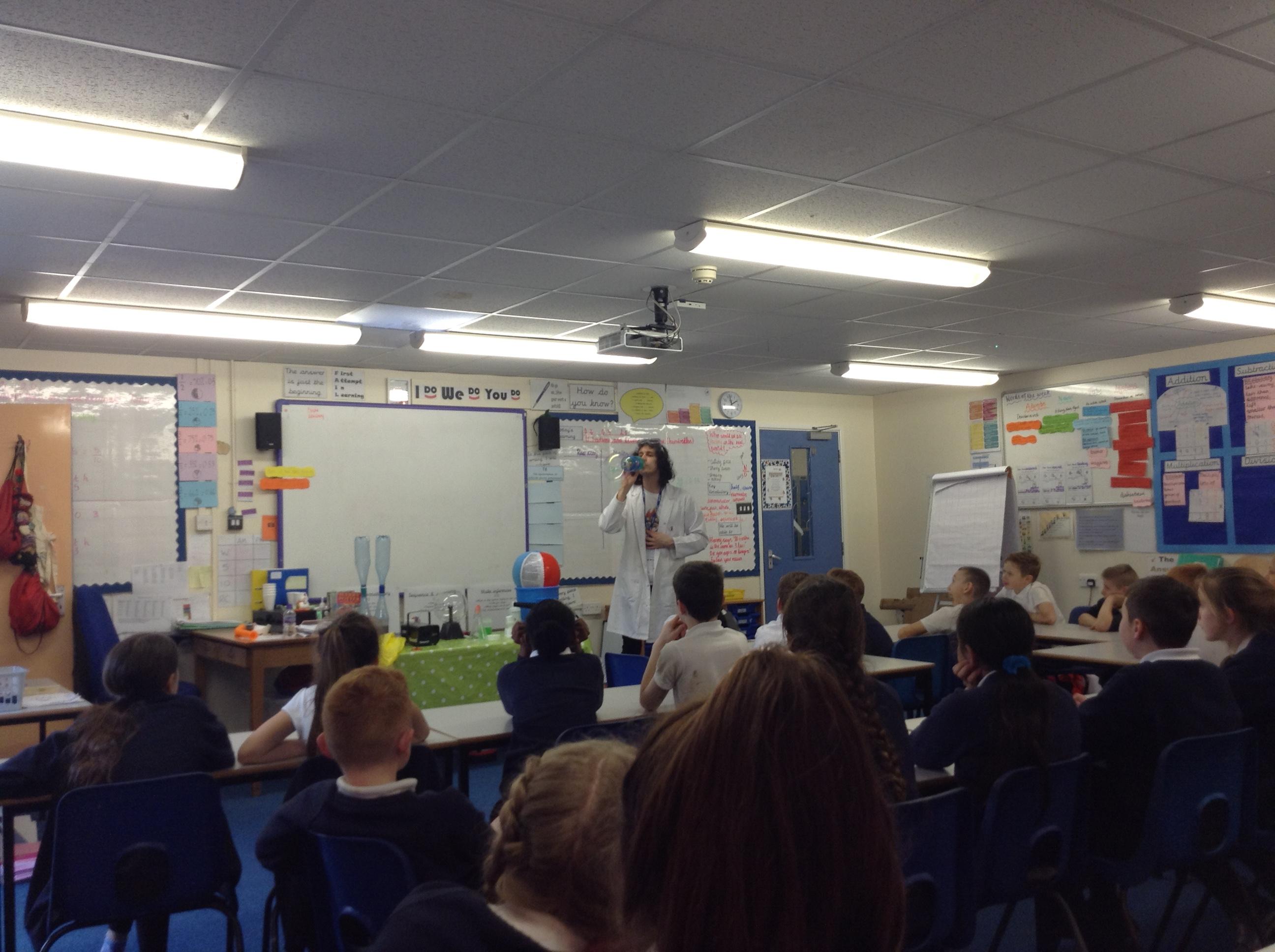 Today we had an amazing workshop led by the scientist Mad Mark. He conducted some science experiments that truly wowed us all. He demonstrated how sound travels, gravity and how air expands in the heat and contracts when it is cold.