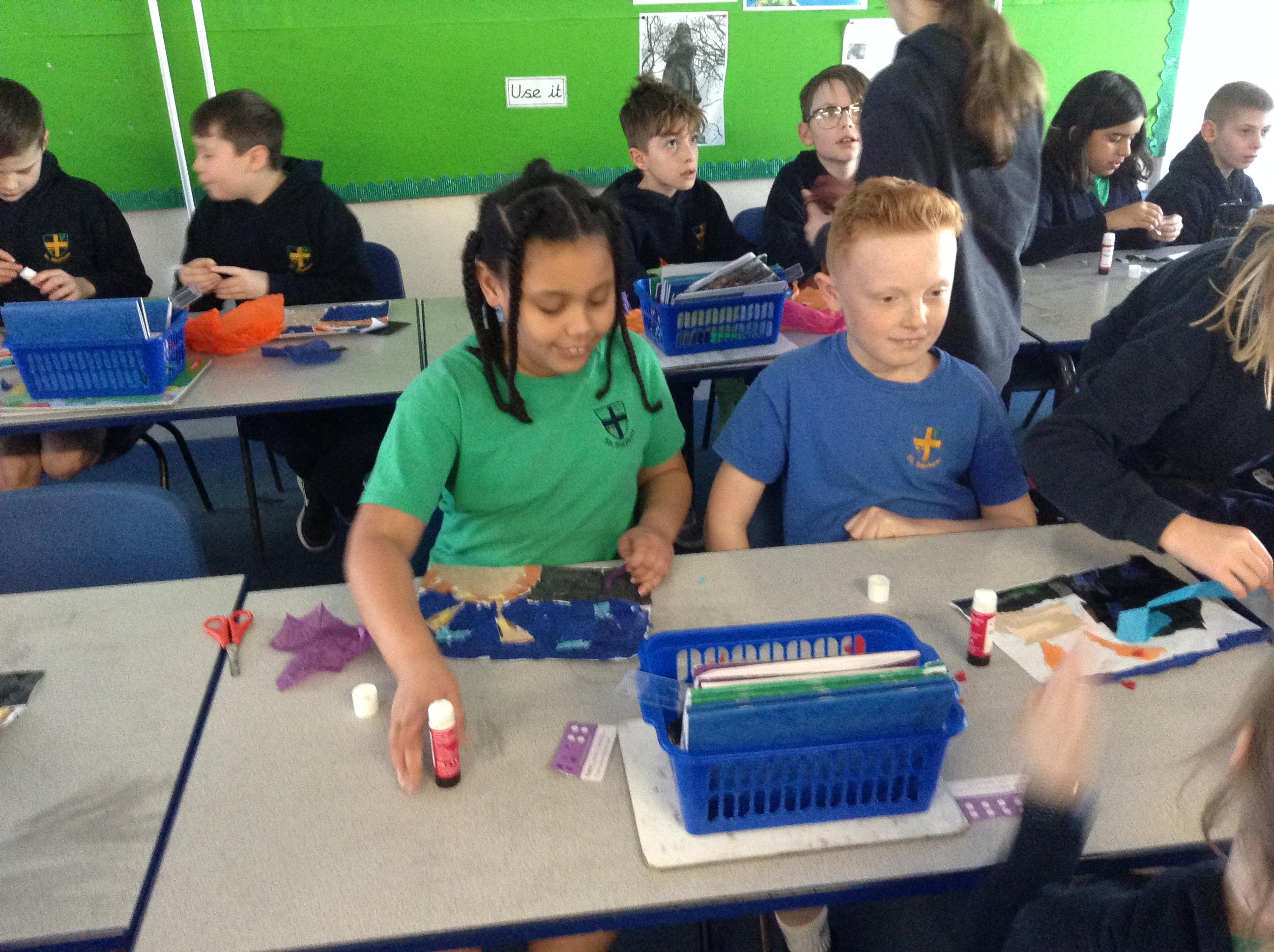 5KC joined us for an art lesson today. Year 5 focused on collage, we studied an artist and built on our knowledge of collage from year 4 by experimenting with different colors to represent a 3D shape.