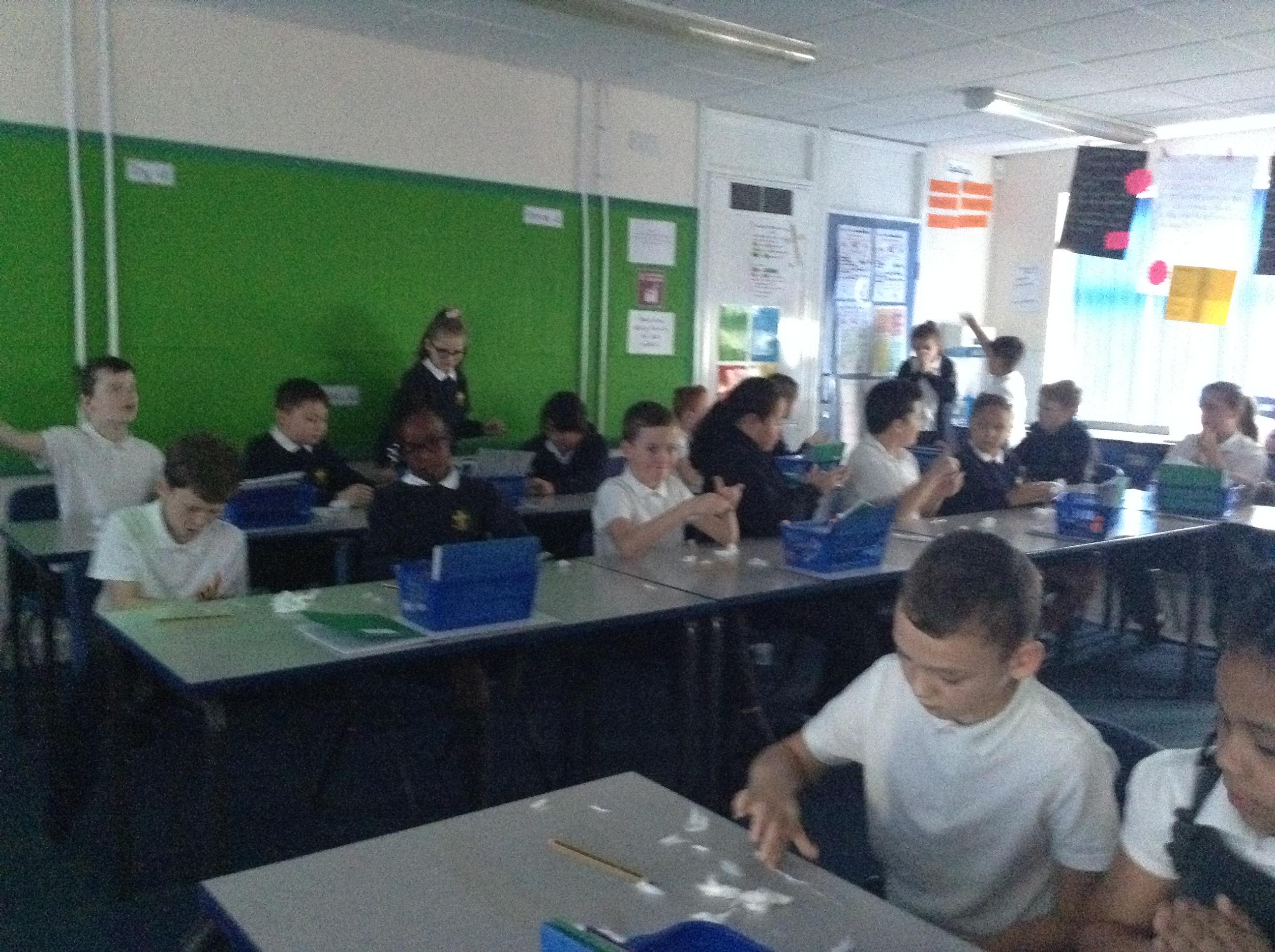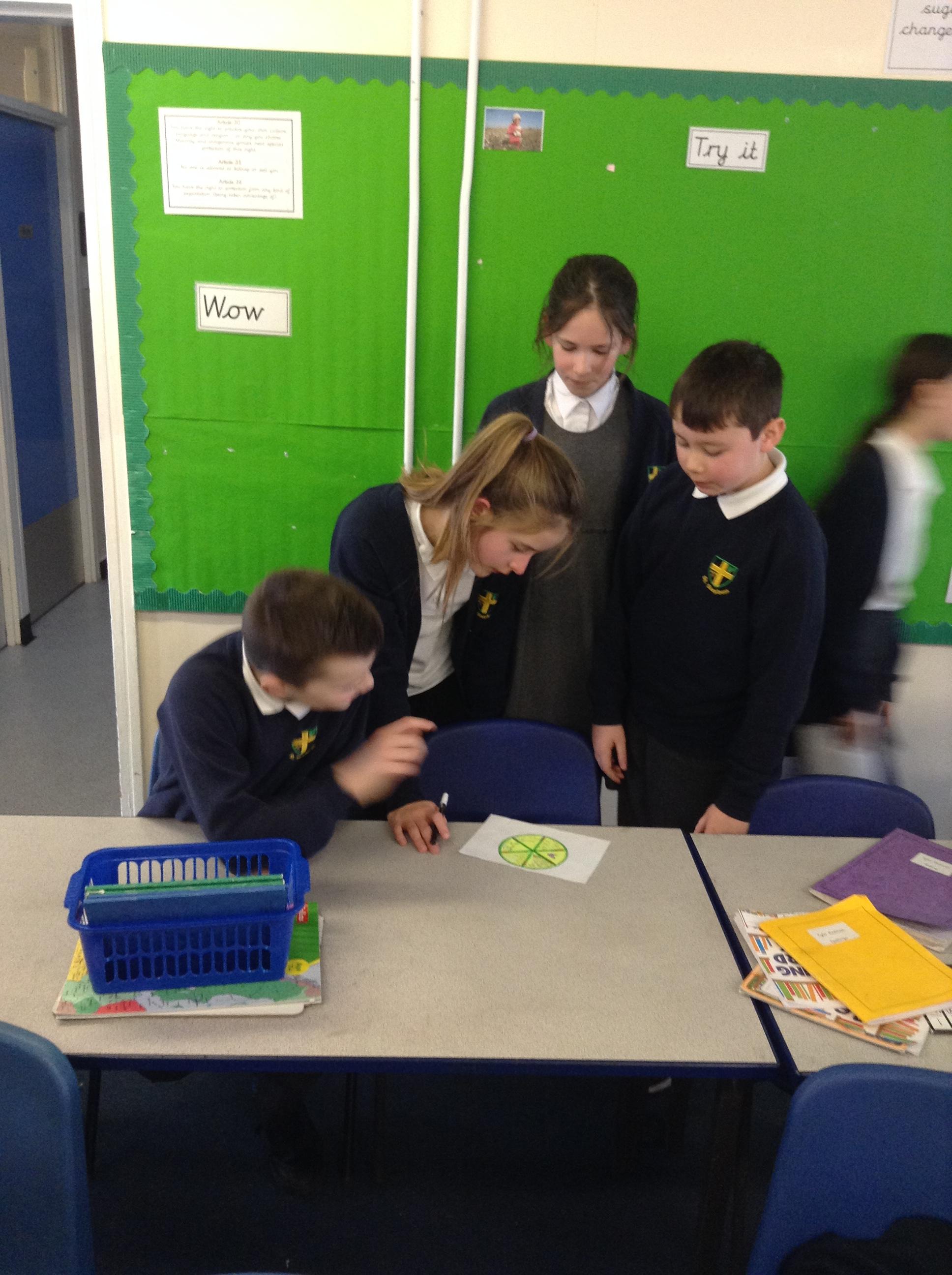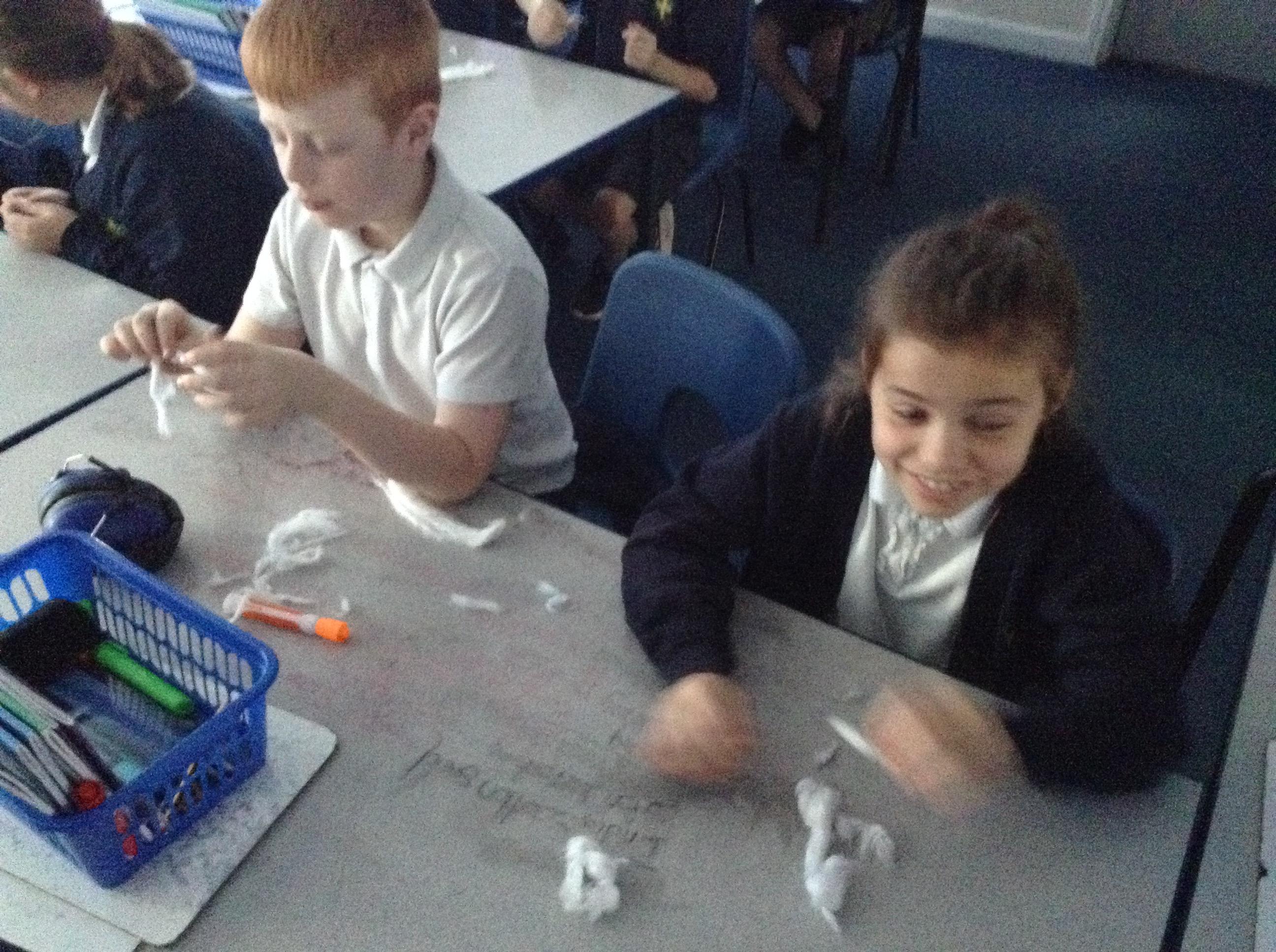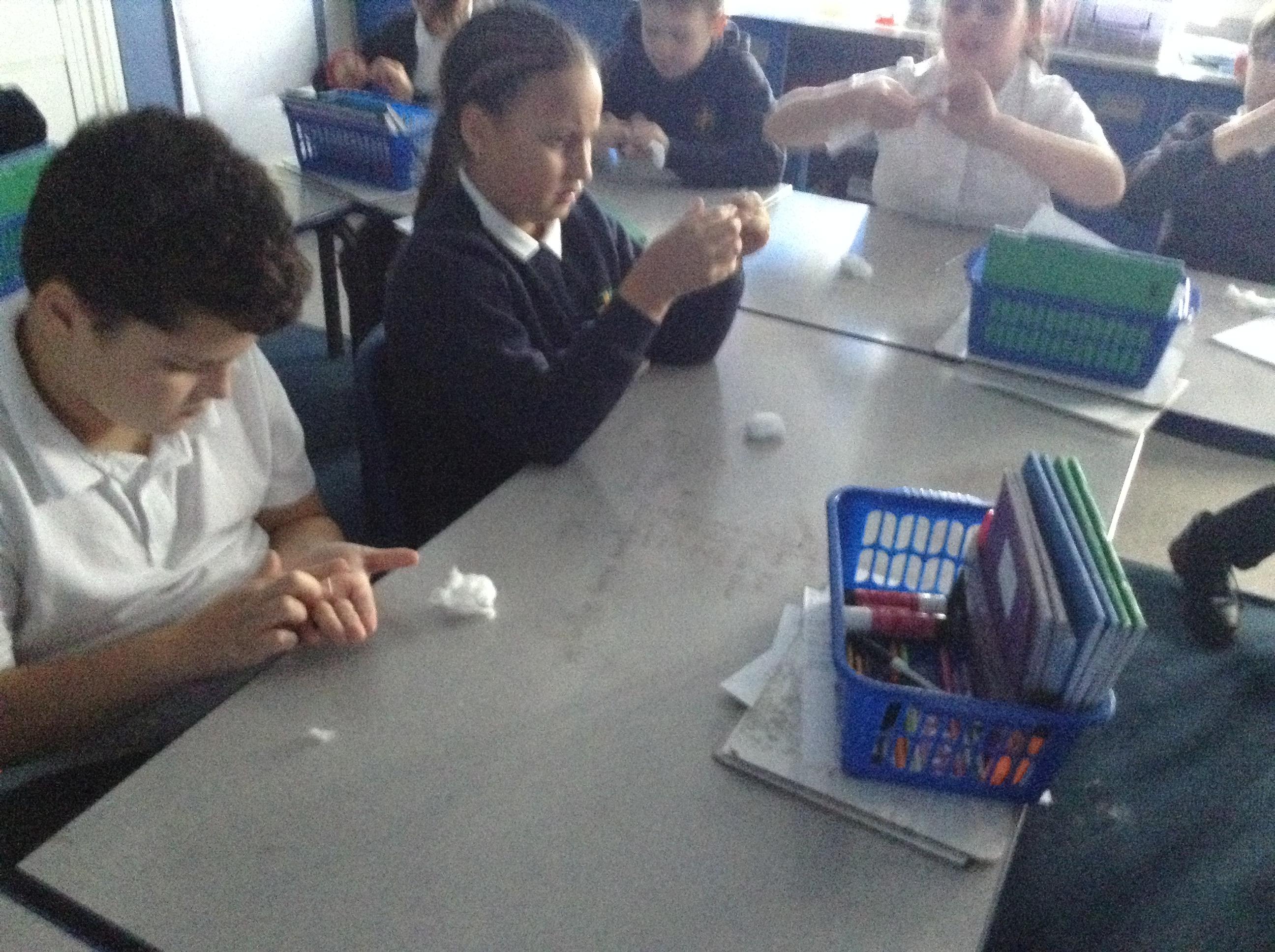Year 5 have been studying Fractions this week. They started by talking about how fractions always have to be part of a whole and seeing how sometimes fractions of a whole can be equal, even if they are not of the same denominator. We ripped up paper to help us understand what fractions of a whole looked like.