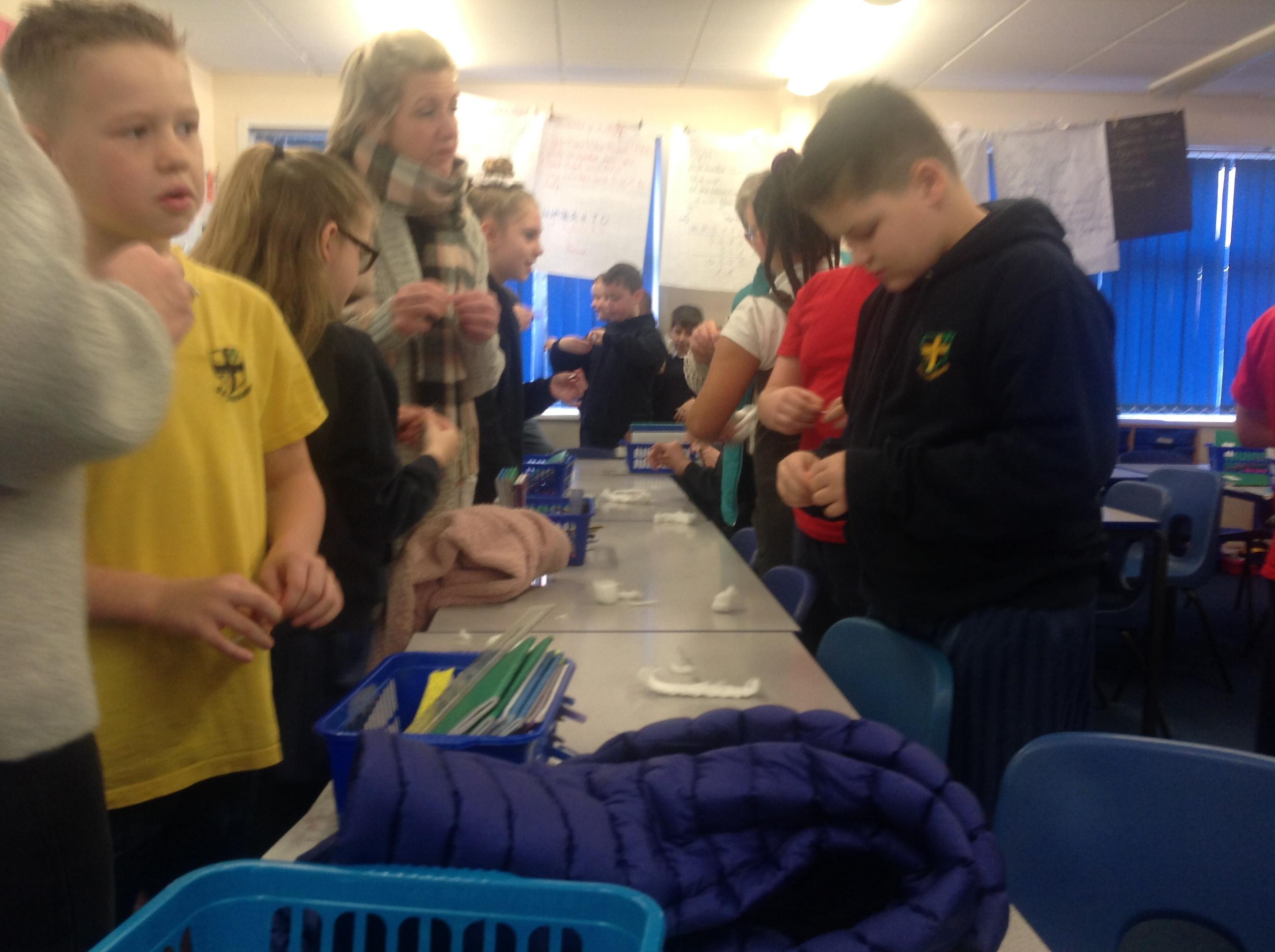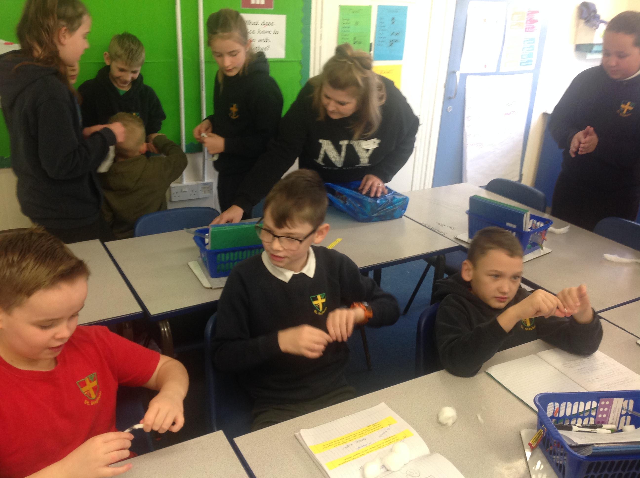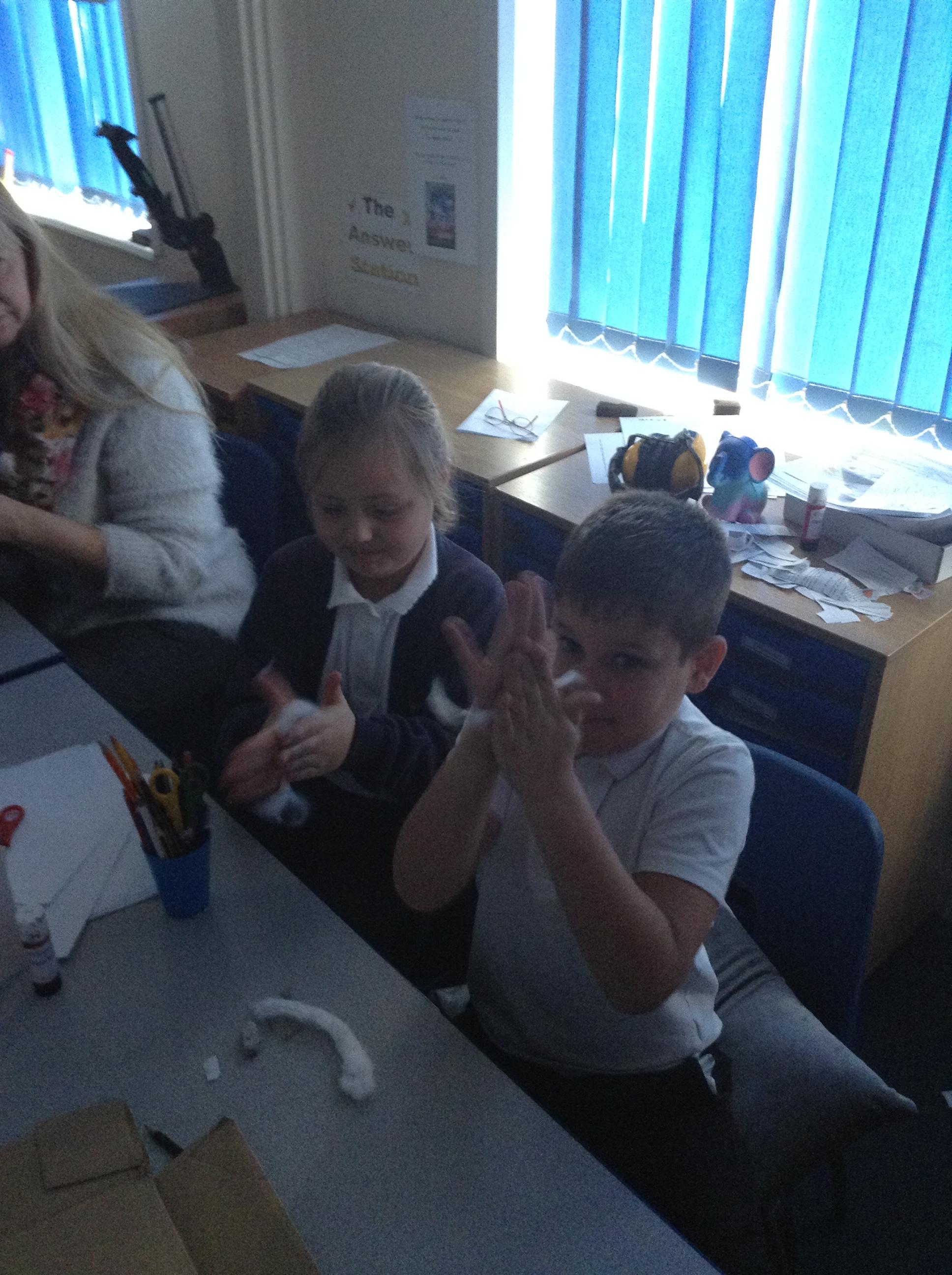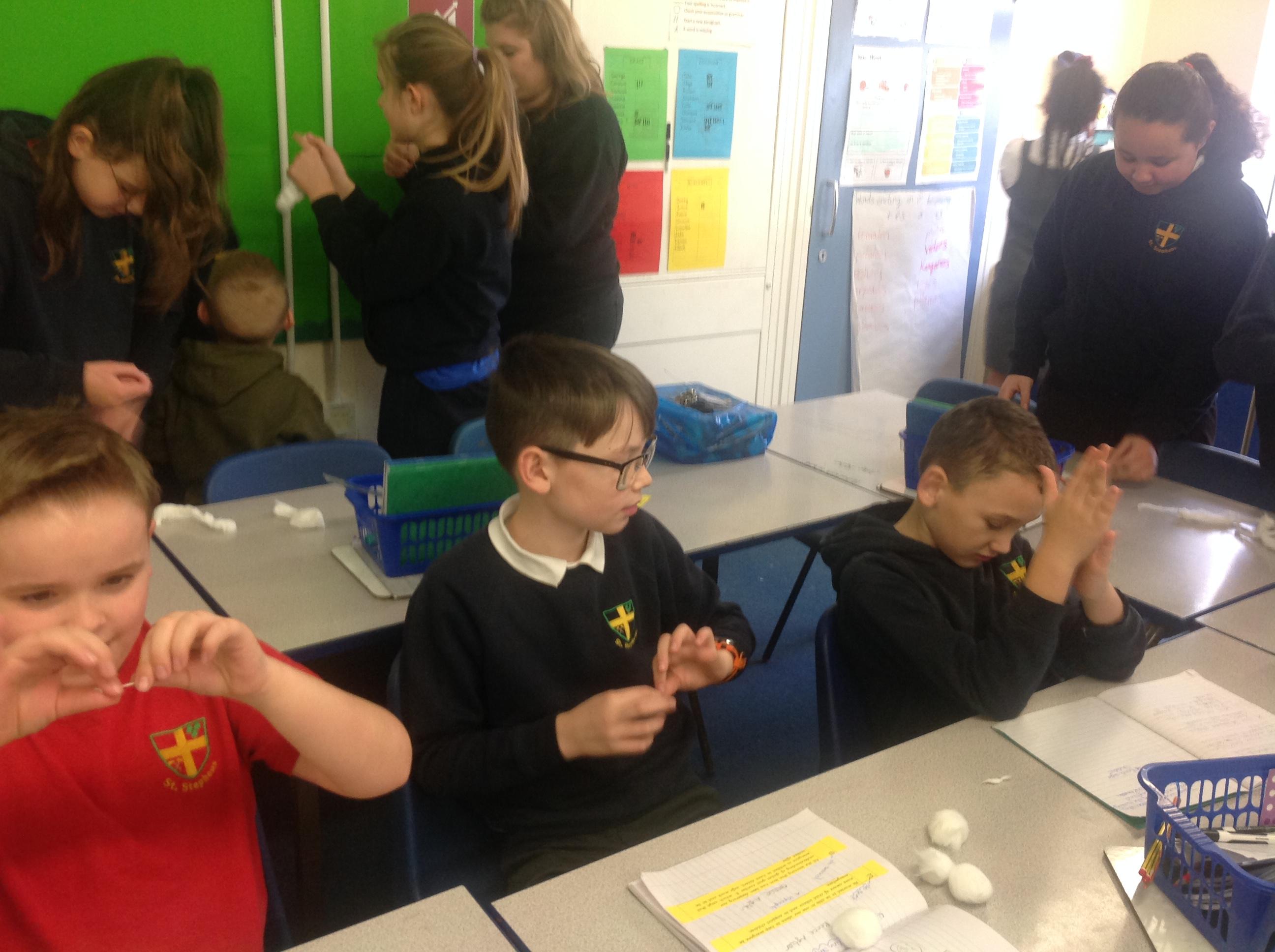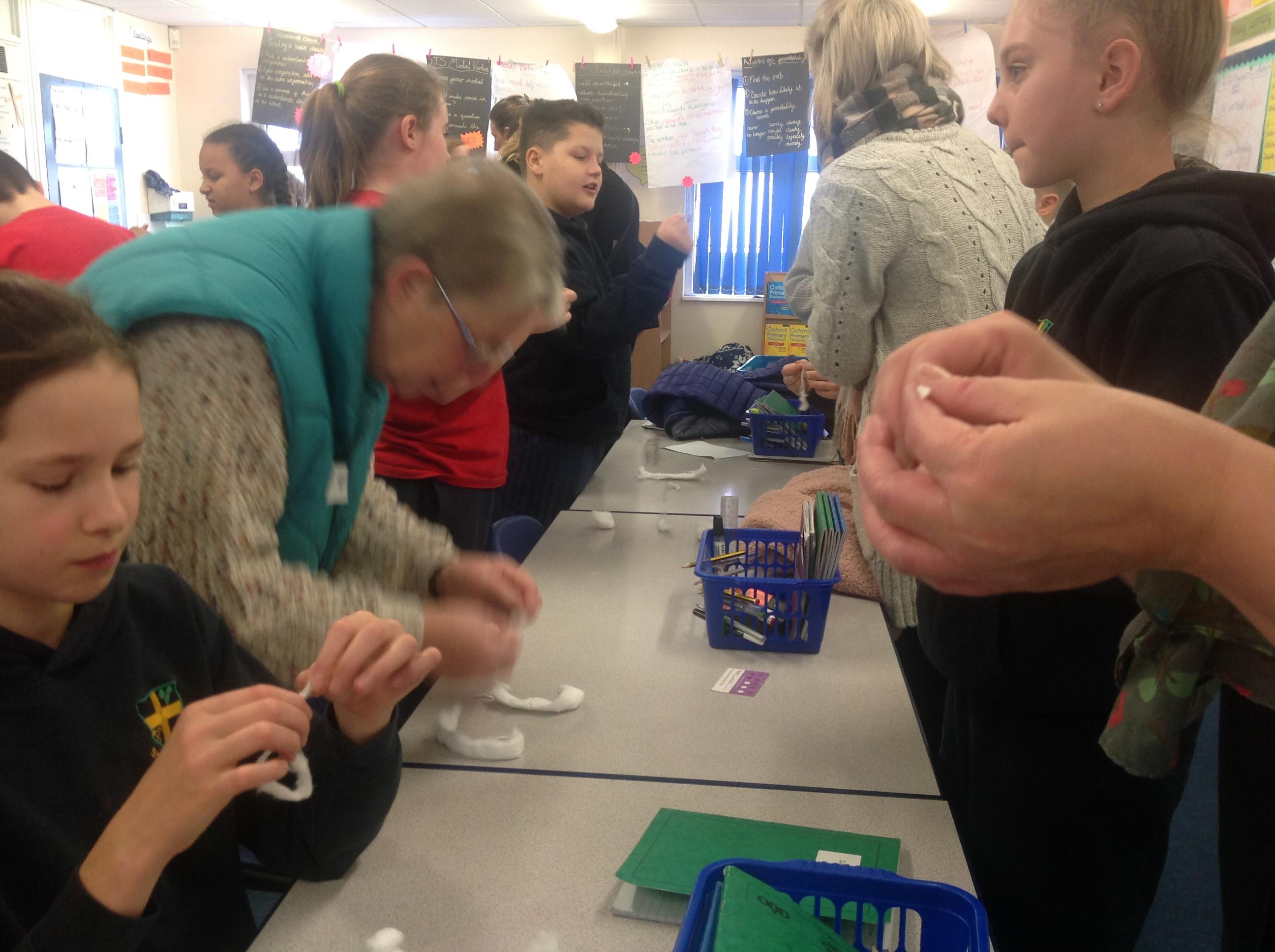 We then learned what it could be like to work in a cotton mill. We tried to create thread from raw cotton and we also learned how to stitch two pieces of material together by hand- something which many people are still doing as part of their jobs.