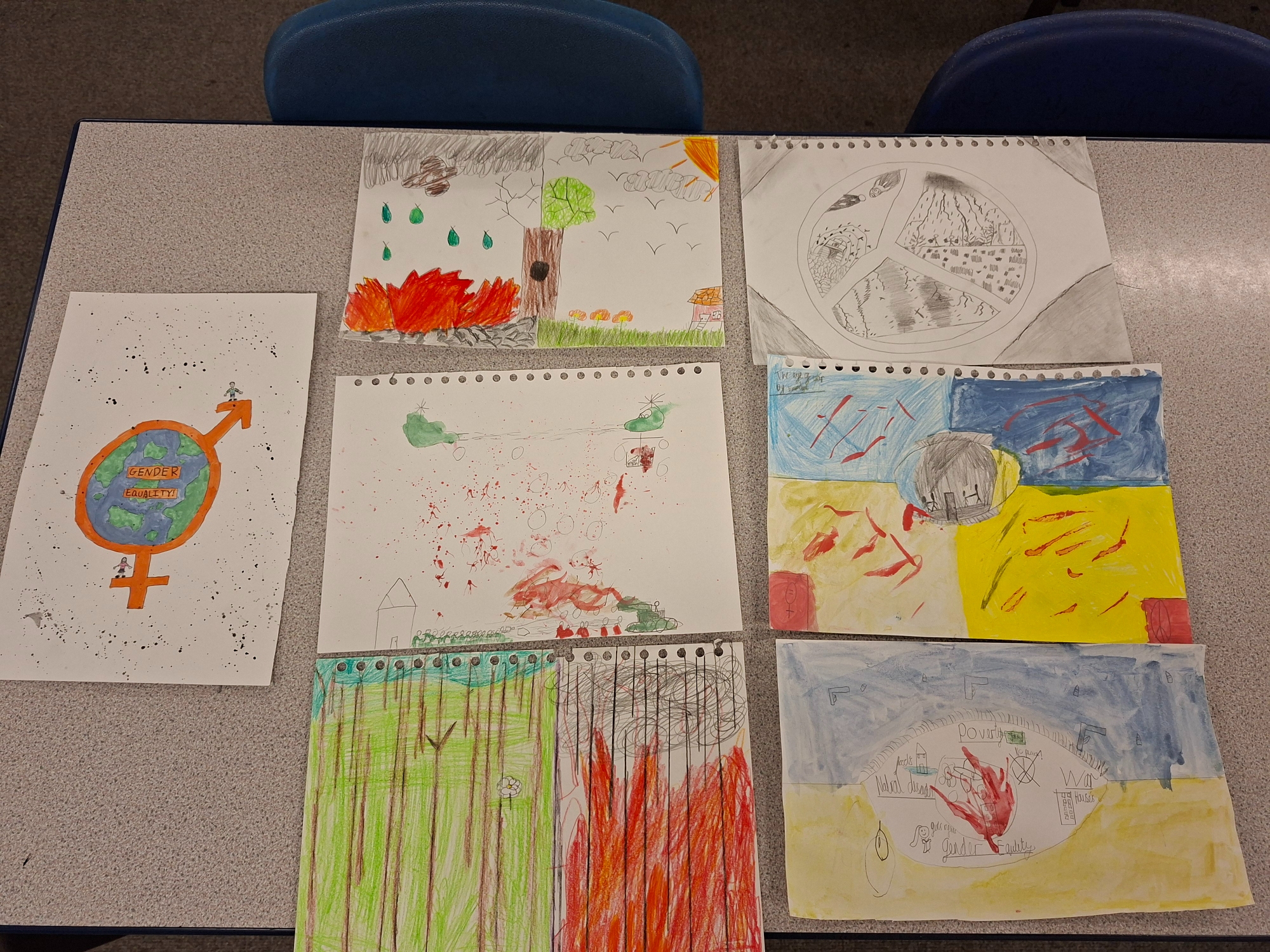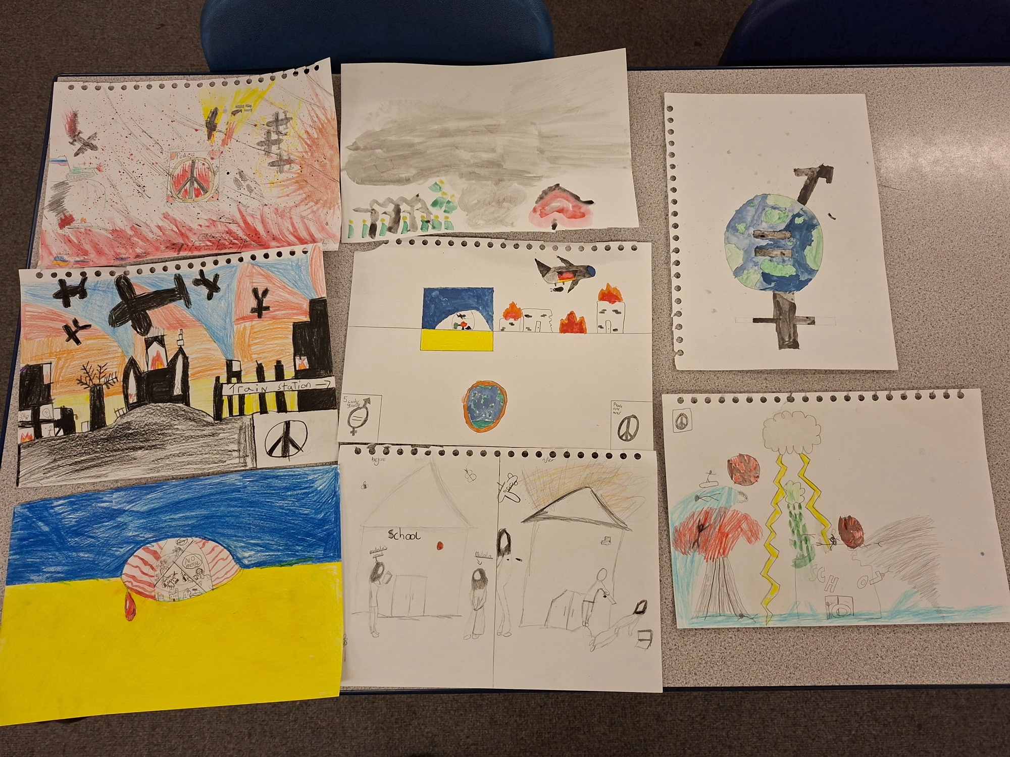 This week, the children completed their final pieces of artwork, which represented one or more reasons why children are prevented from accessing education. The children used the knowledge they had gained over the last term's enquiry and writing units, as well as techniques learnt in art lessons, to complete some wonderful, emotive pieces!