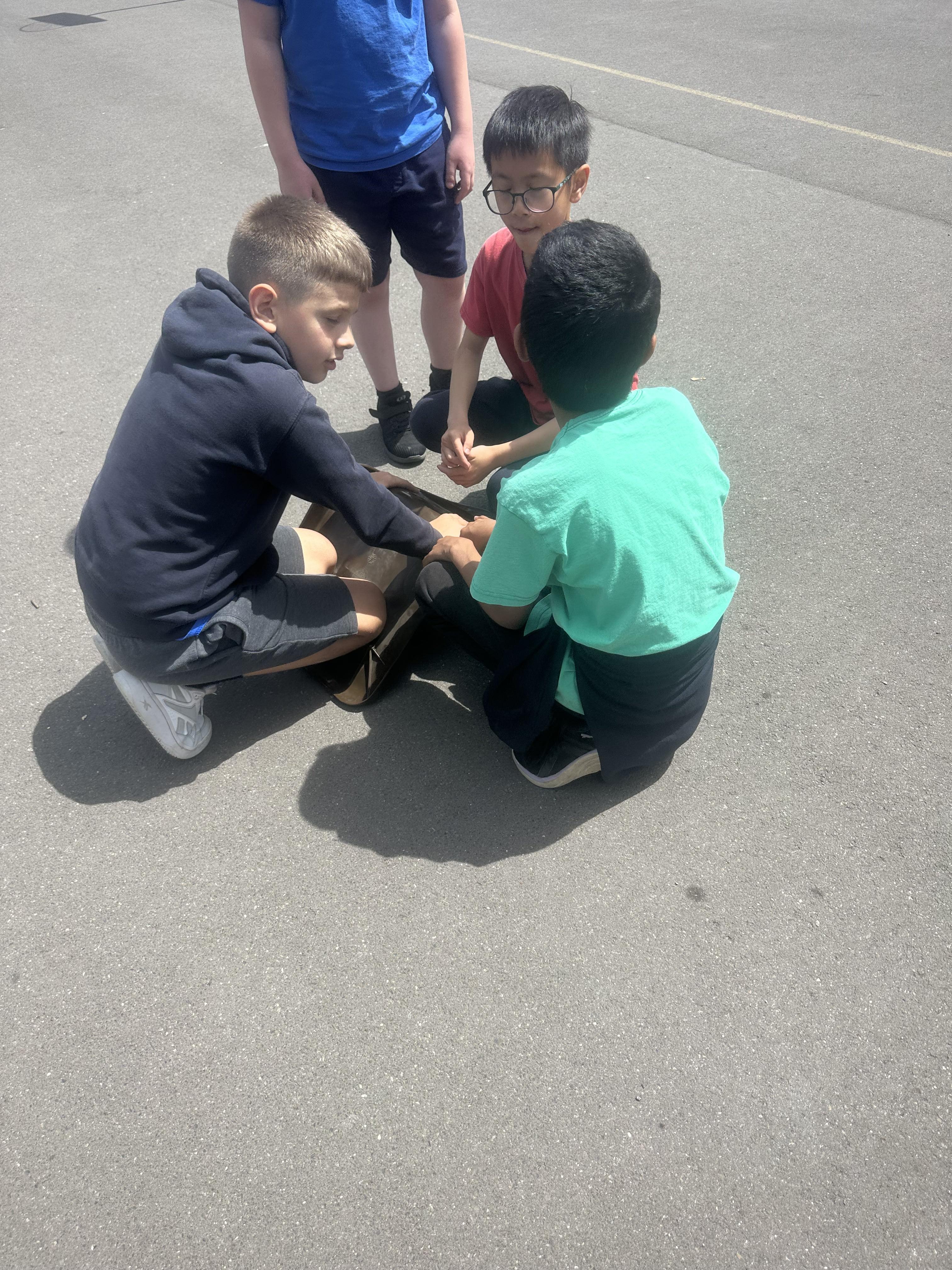 The children were then challenged to pick 1 item in their teams from the shed and create a brand new game using that item.