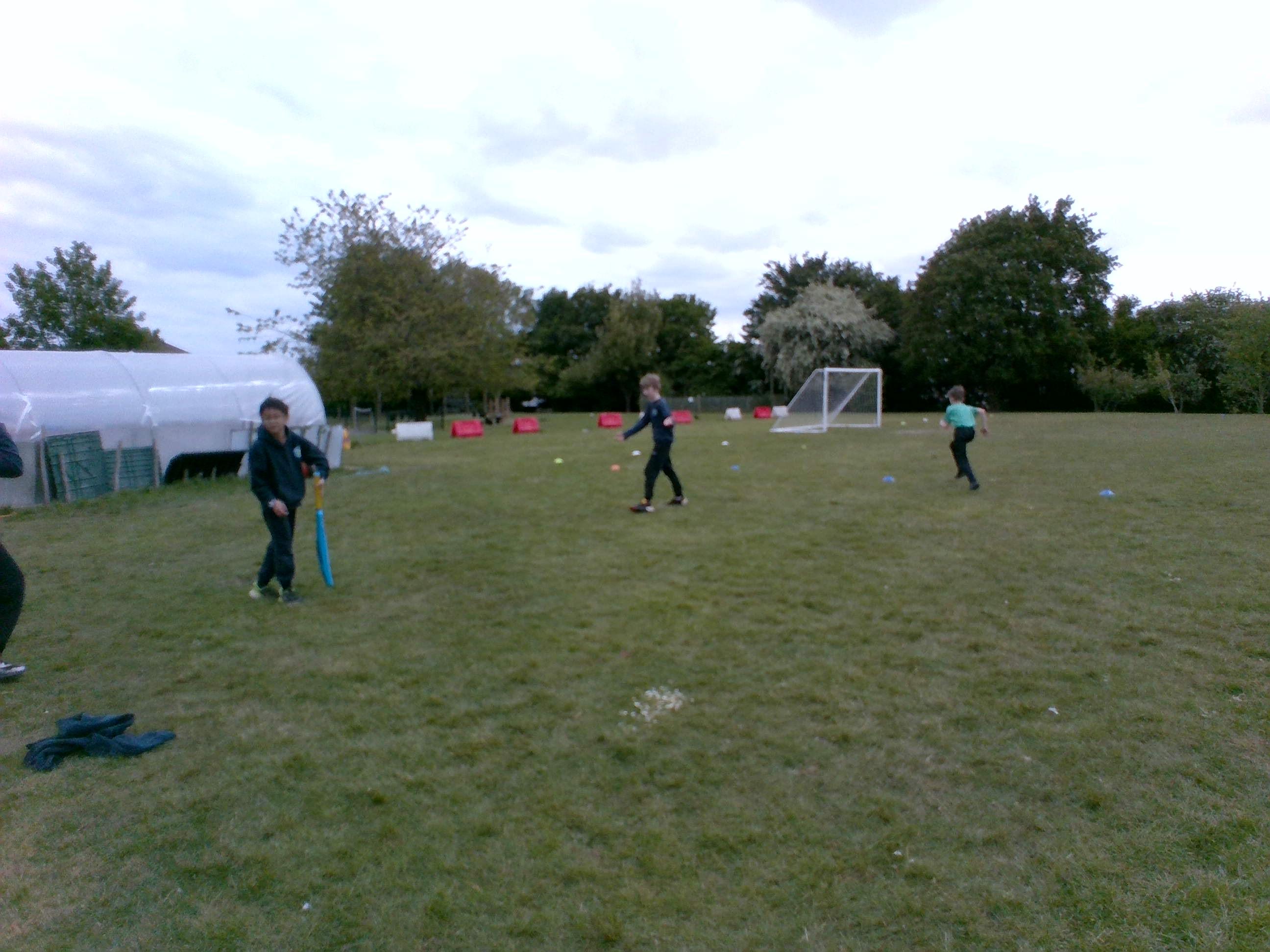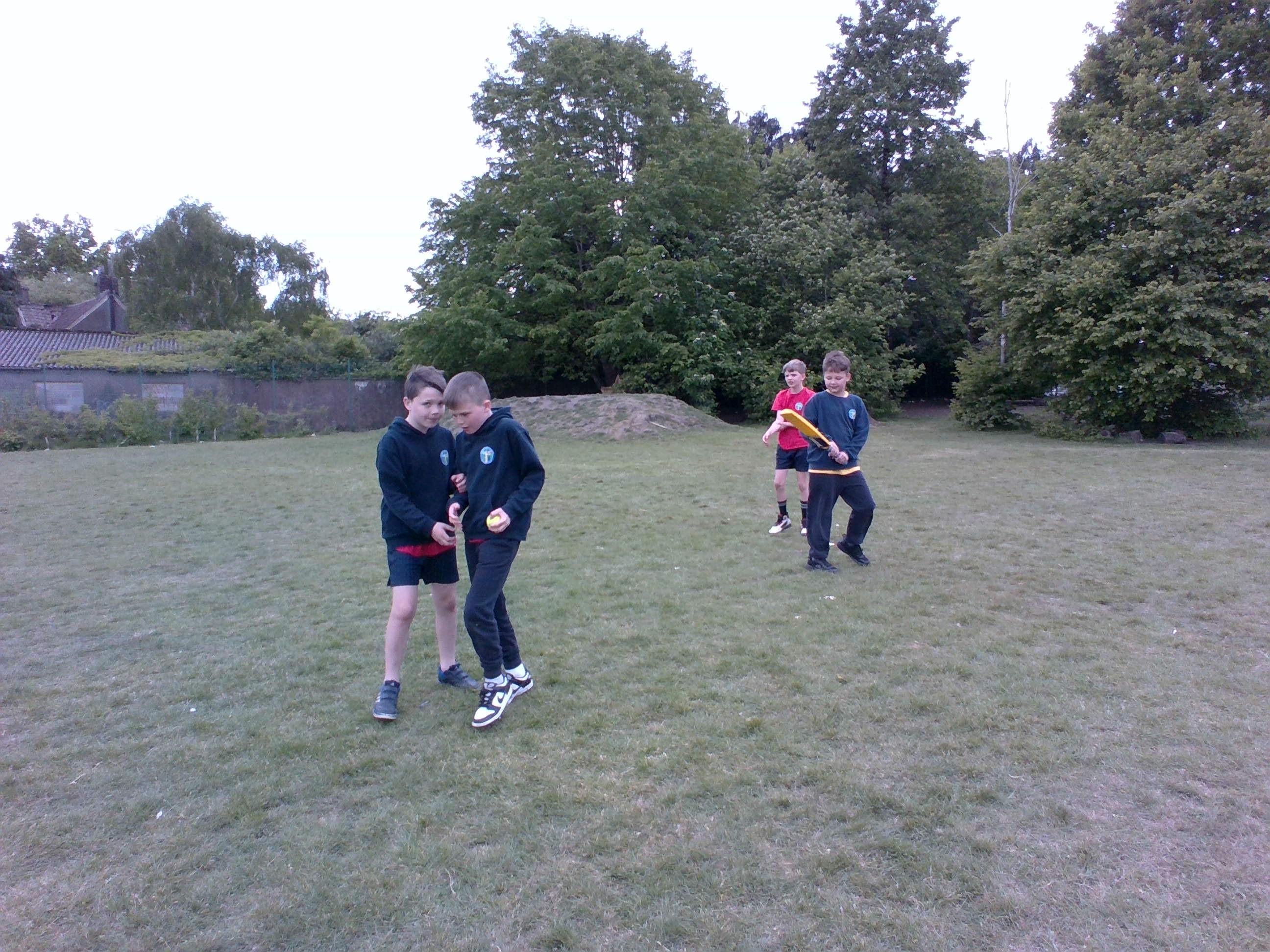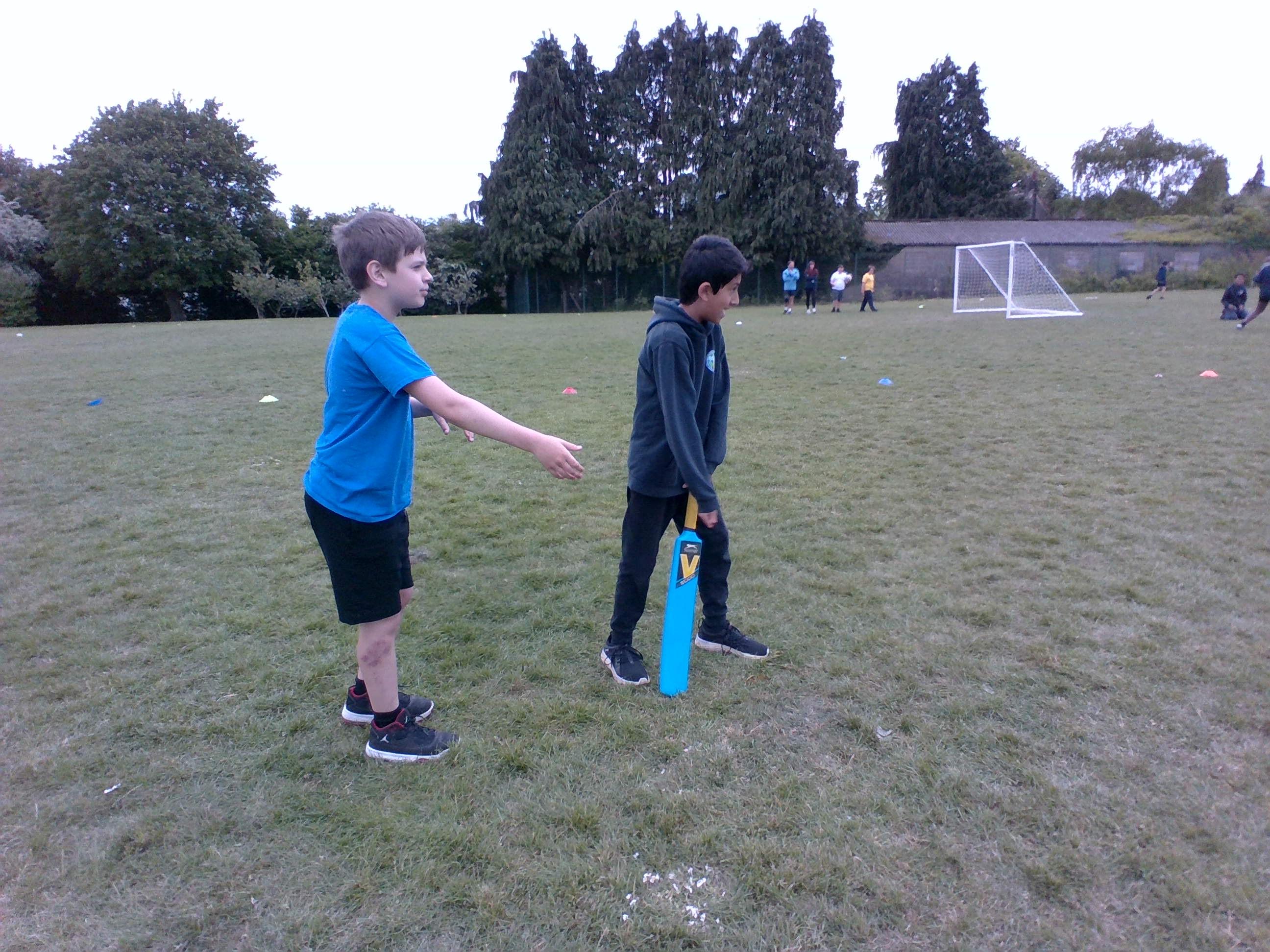 Today, we set up 'mini' cricket games in groups of four. We decided on a batter, bowler, fielder and a wicketkeeper and rotated frequently to make sure everyone had time for a go and to develop their skills in a different area!