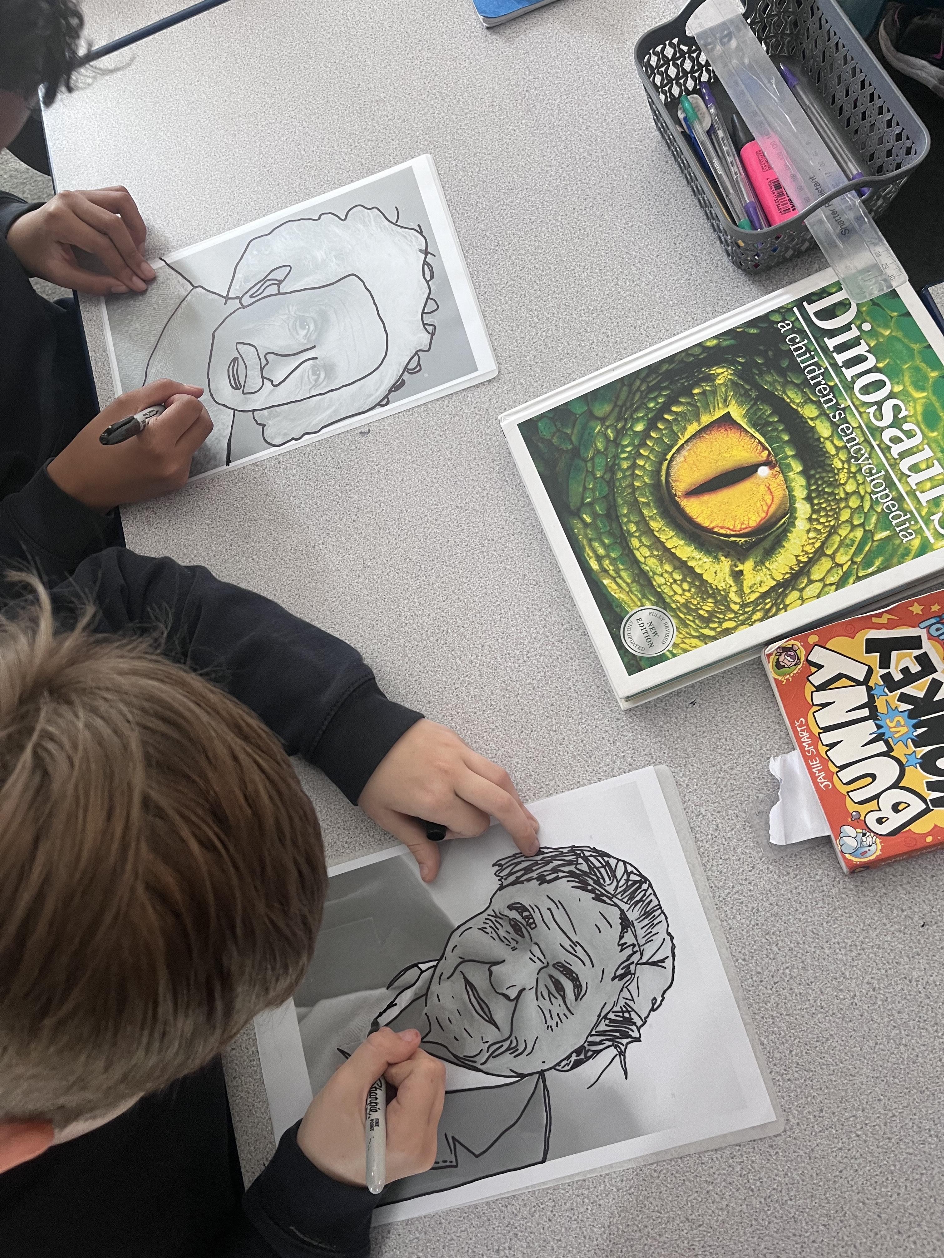 After this, we created our own pieces of art. These pieces were based off on influential people. We discussed what influential means and what makes a person influential. As a class, we chose five different people to choose from that we could use to create our art; Ariana Grande, Rosa Parks, David Attenborough, Albert Einstein and Messi.