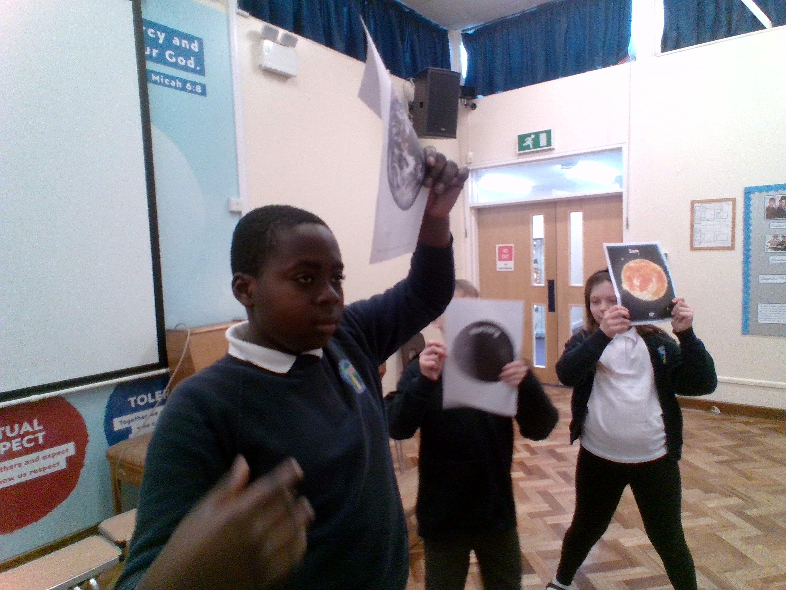 In teams, we were challenged to lines ourselves up as planets in the correct order. This allowed us to demonstrate our school value of humility as we had to work positively in a team.