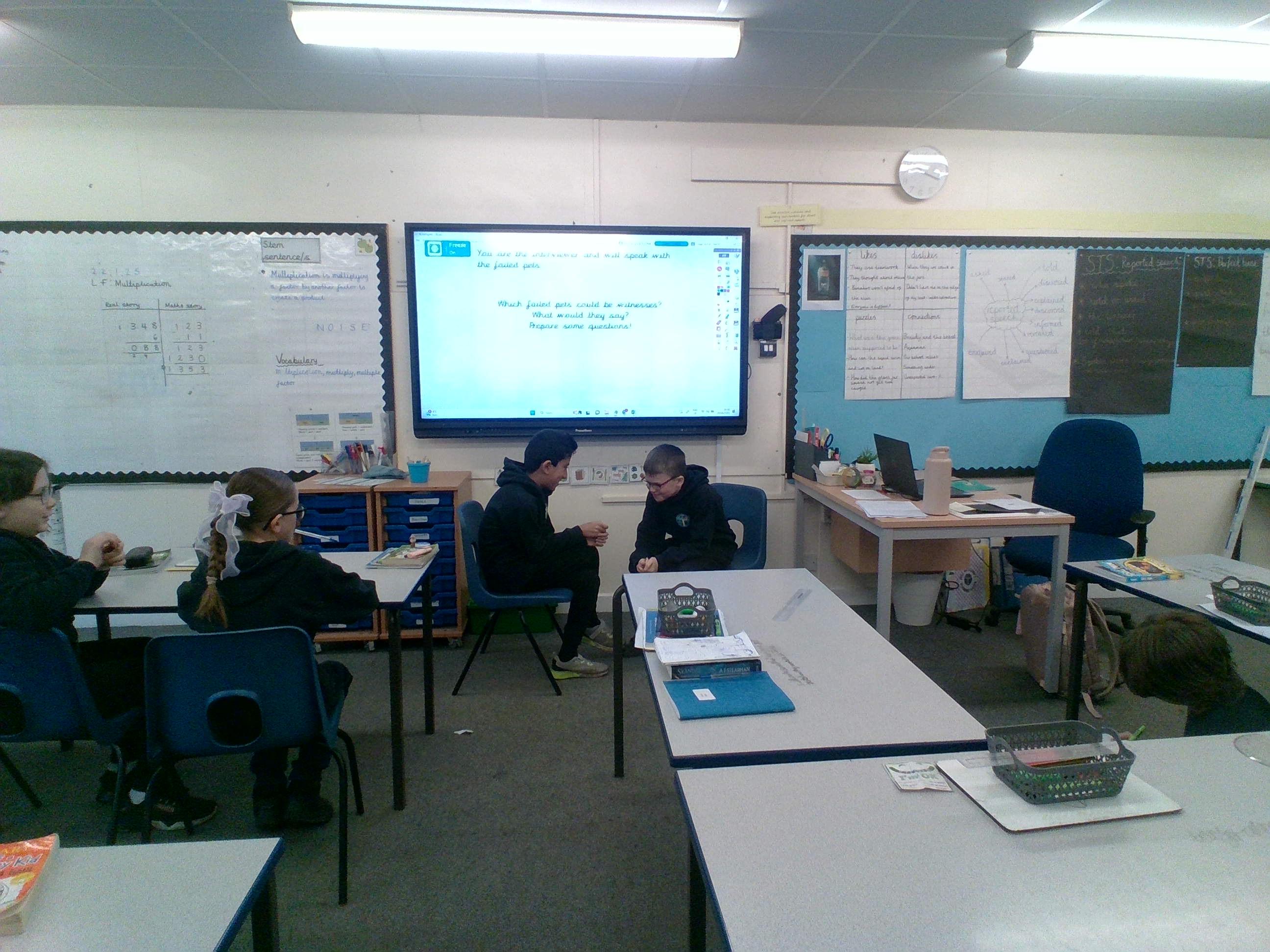 In our planning stage of the newspaper report, we used our grammar and oracy skills to create interviews and present them to the class.