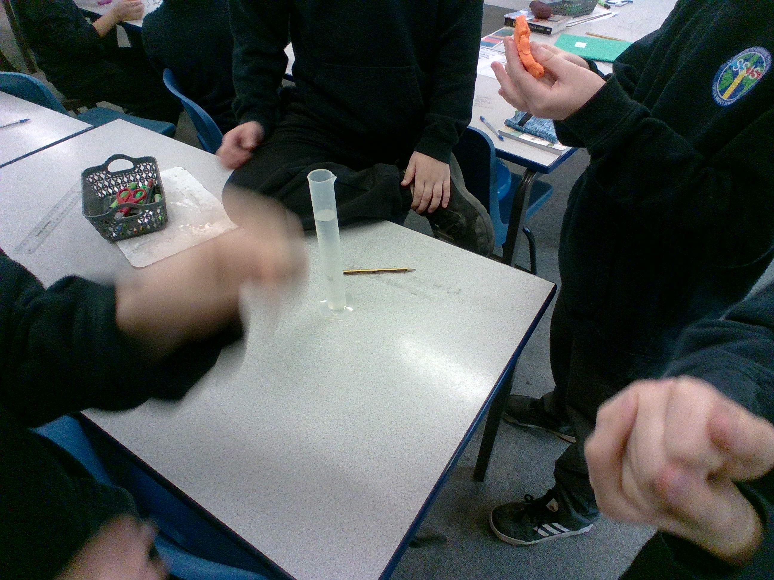 We then started our investigation into how different shapes of playdough experience water resistance by the times it takes the pieces to fall to the bottom of the beaker.
