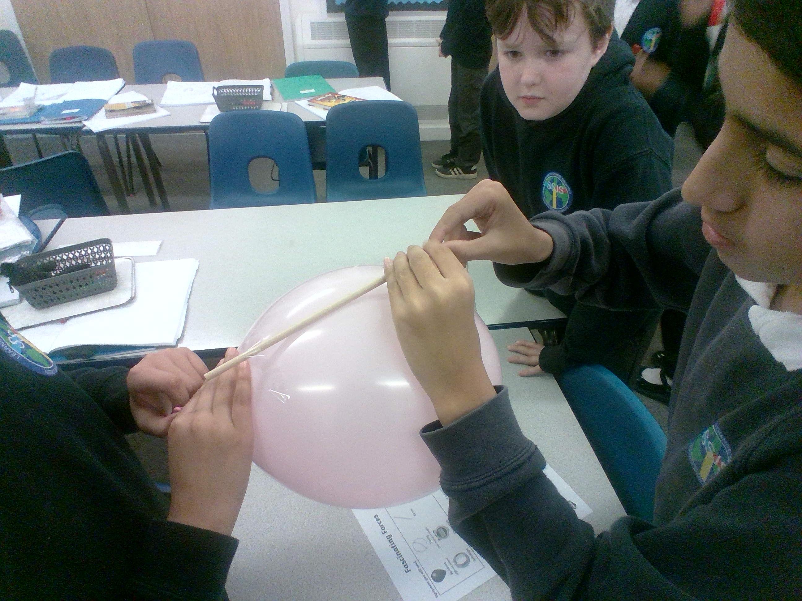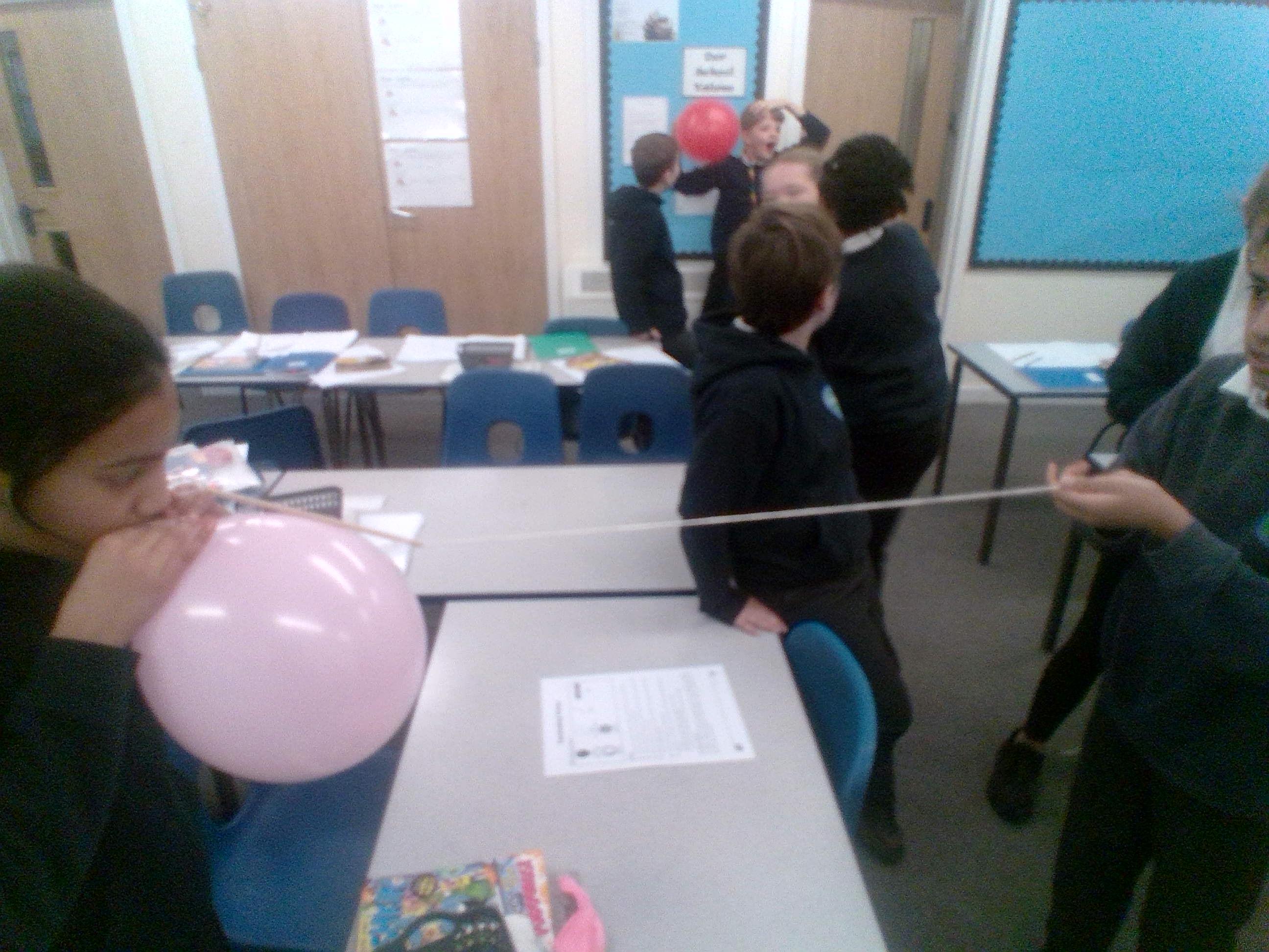 We conducted an experiment into air resistance by attaching a balloon to a straw on a piece of string. We observed how (once released) the air allowed the straw to travel across the piece of string.