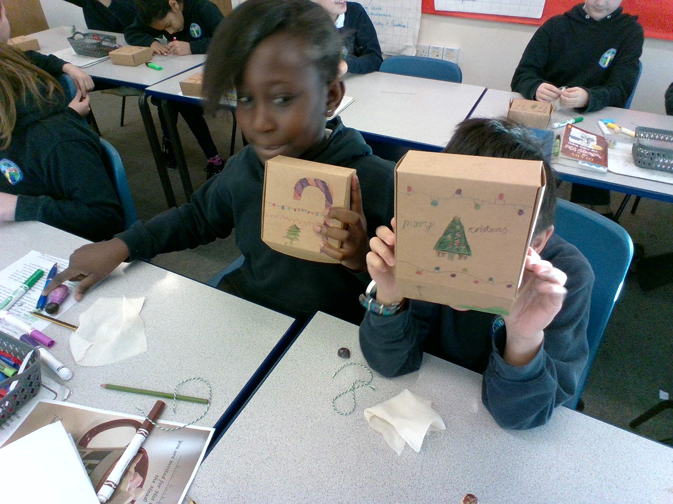We designed our own boxes, wrapped up special stones, decorated flags and created a tree decoration.