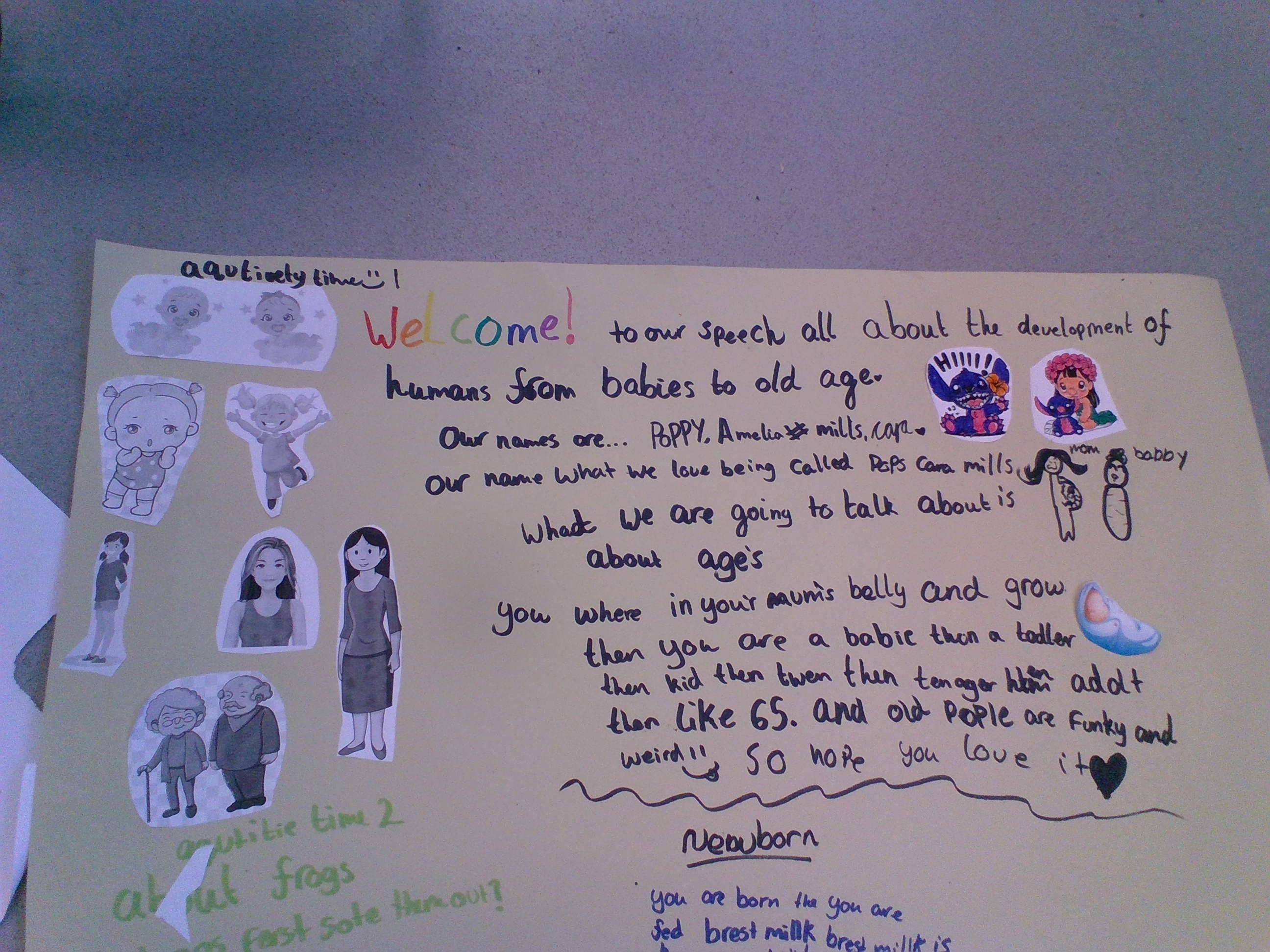 During this week in our enquiry lessons, we have been learning about speeches and presentations. We have discussed the steps to success of a speech (e.g. clear voice, confidence, facts, images and prompts) and used these to create our own presentations. Our presentations were based around the focus of 'The development of humans from babies to old age' and through this we linked our learning so far in this term. In our speeches we also compared and contrasted the life cycle of humans to other mammals and frogs!