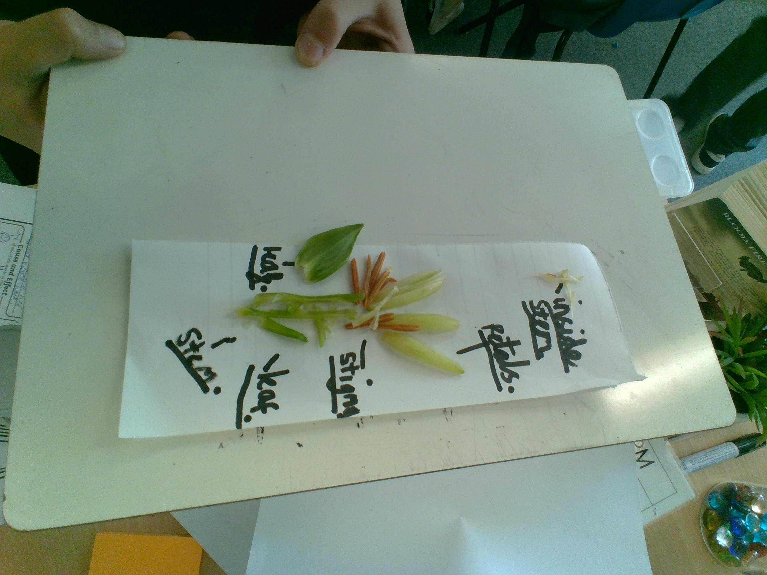 Today we have been learning all about plant reproduction. To support our learning, we observed the different plants in the allotment to explore their key features. After this, we returned to our classroom and discussed the key features and their functions. We dissected lillies to see up close the different parts of the plant, e.g. the stigma, the anther, and presented our findings to the class.