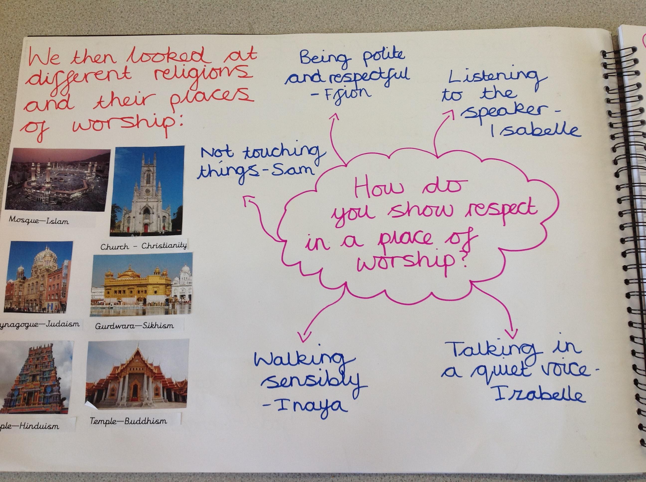 In Week 3, we have been learning about different places of worship. We started off by discussing how to show respect in a place of worship and came up with some fantastic ideas, as shown below! We are looking forward to learning more about Sikhism and their place of worship - a Gurdwara.