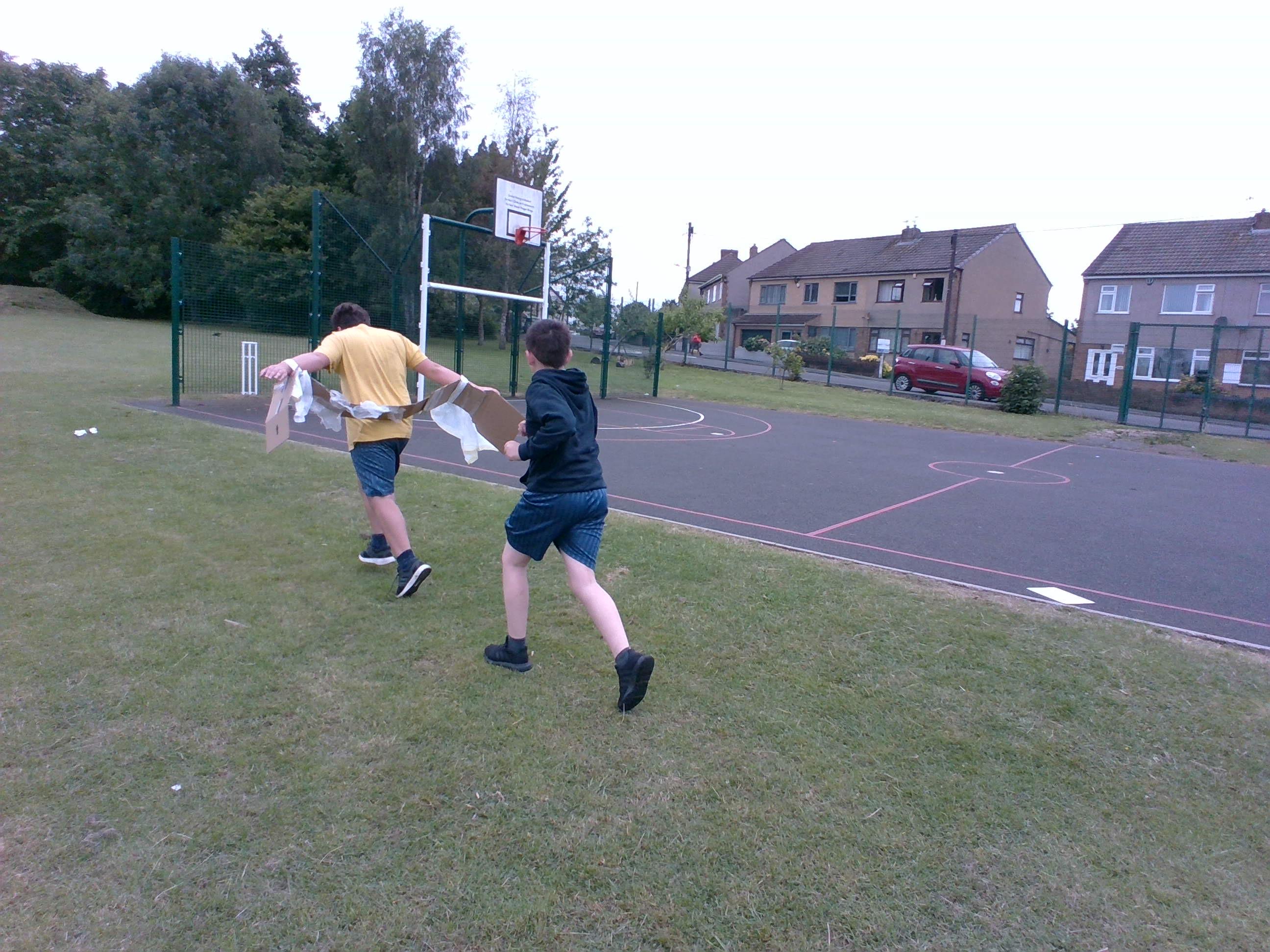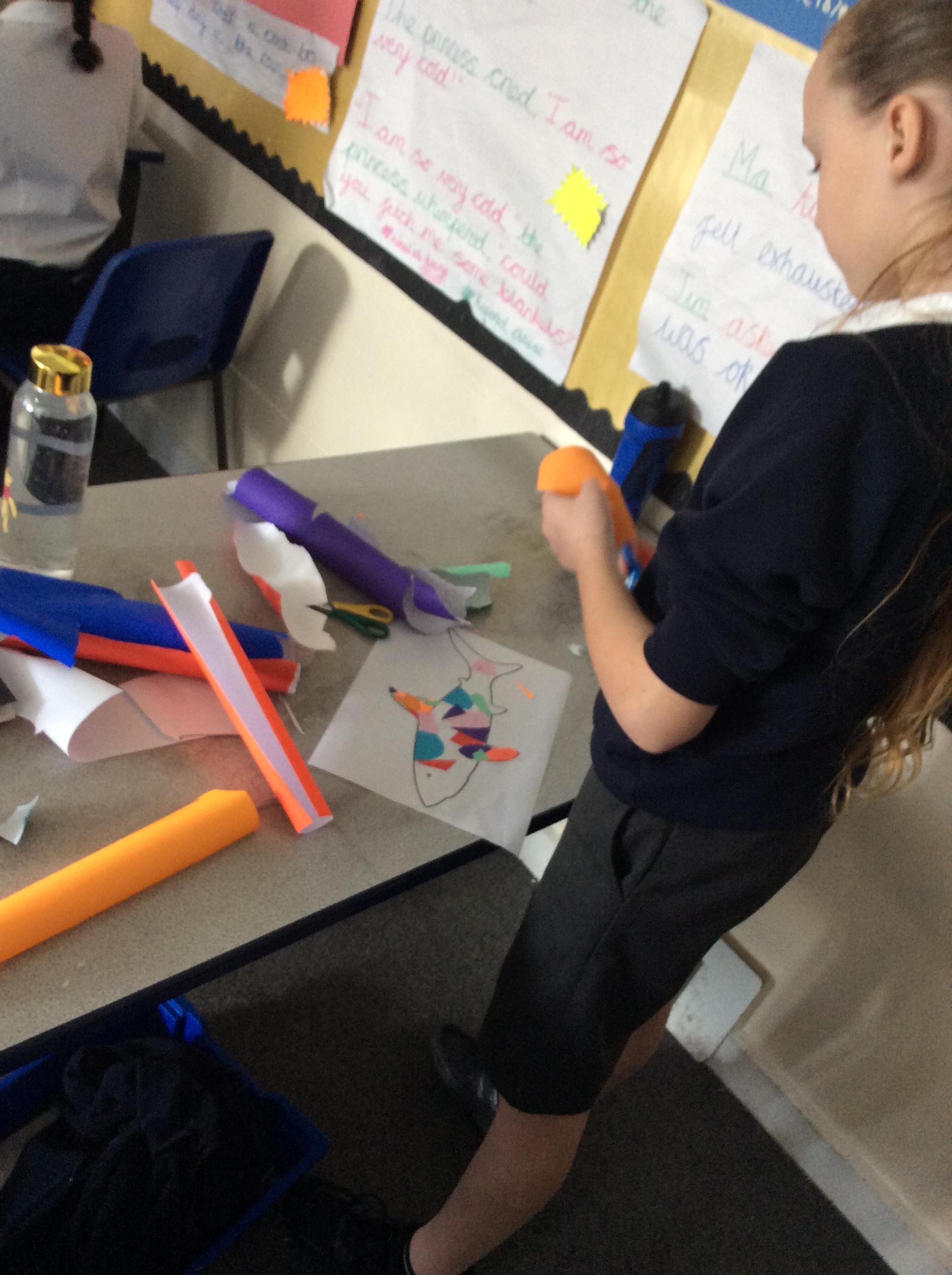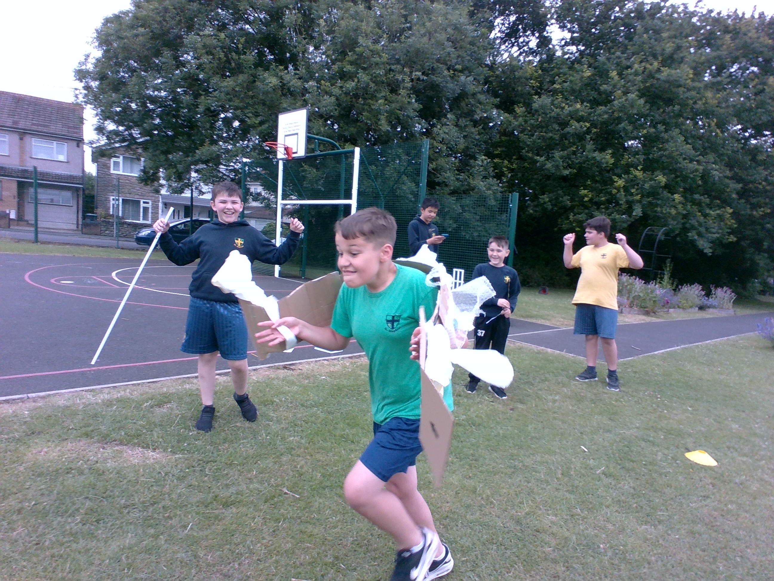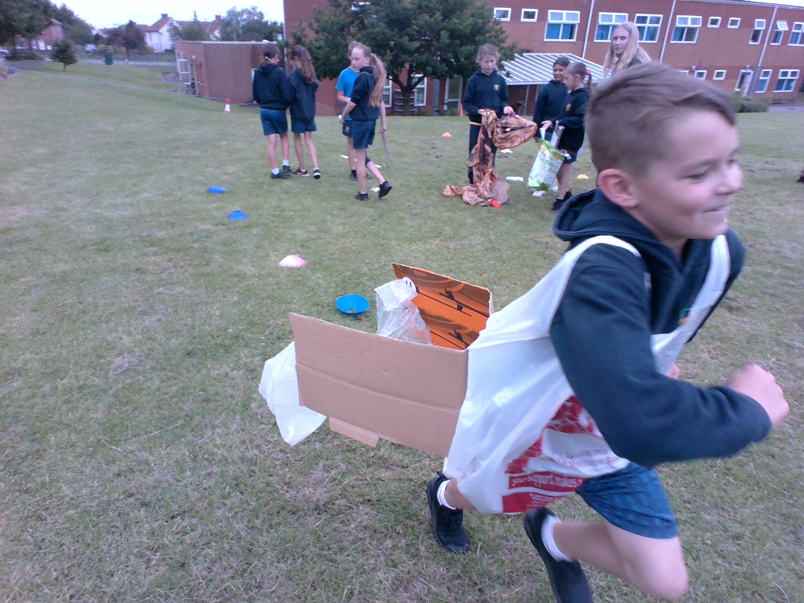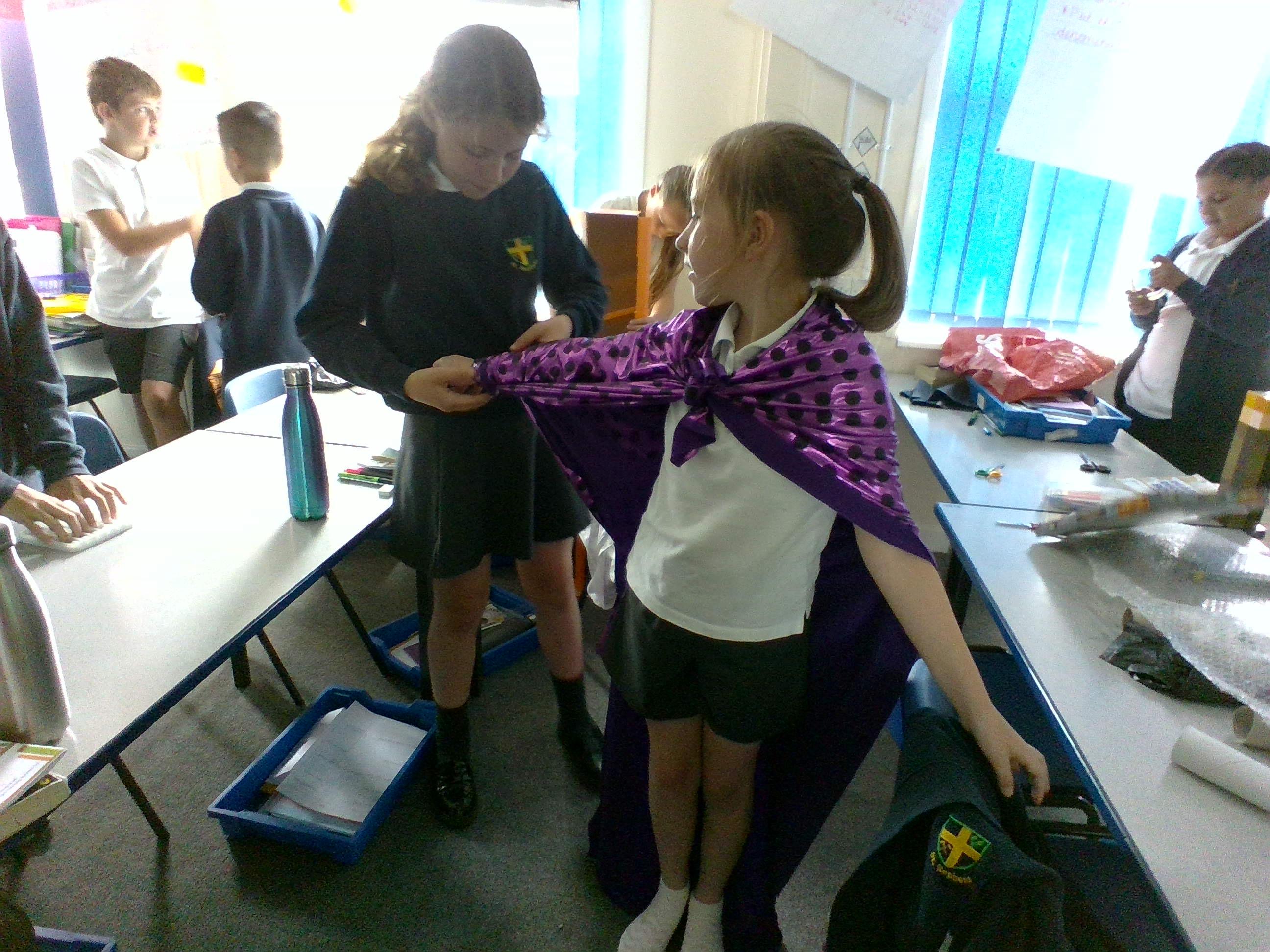 In Week 3, we have been looking at forces and investigating air resistance. To do this, we have thought about fair testing and have been designing and creating costumes for our air resistance race. We have thought about how we can make our designs as air resistant as possible in order to slow our opponents down!