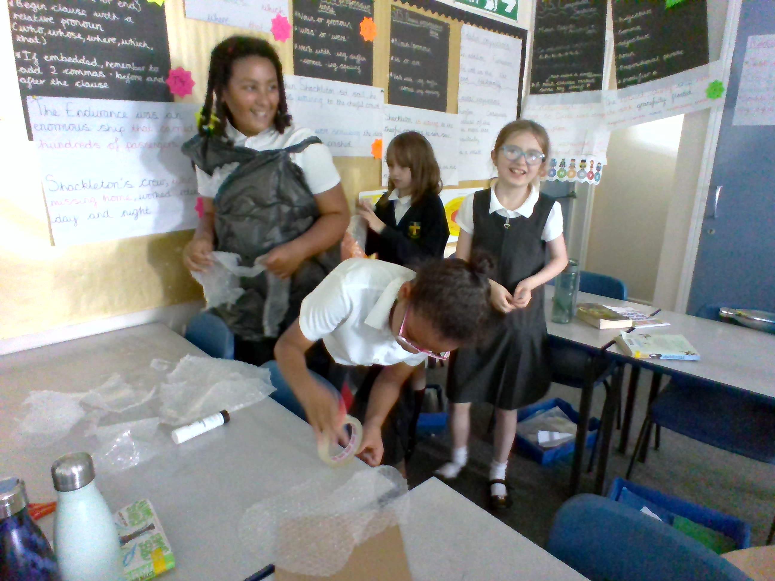 In Week 4, we had a fantastic No Pens Day! We kickstarted the day by refreshing our understanding of oracy and the four strands. When being a writer, we put our oracy into practice by discussing how the crew would be feeling when they set sail on Endurance in Shackleton's Journey and made good luck charms from salt dough. When being a mathematician, we focused on capacity. We enjoyed estimating and experimenting with water and different containers and bottles. We also enjoyed Spanish with Mrs Thomas, taking part in the skipping challenge and exploring more of Shackleton's journey.