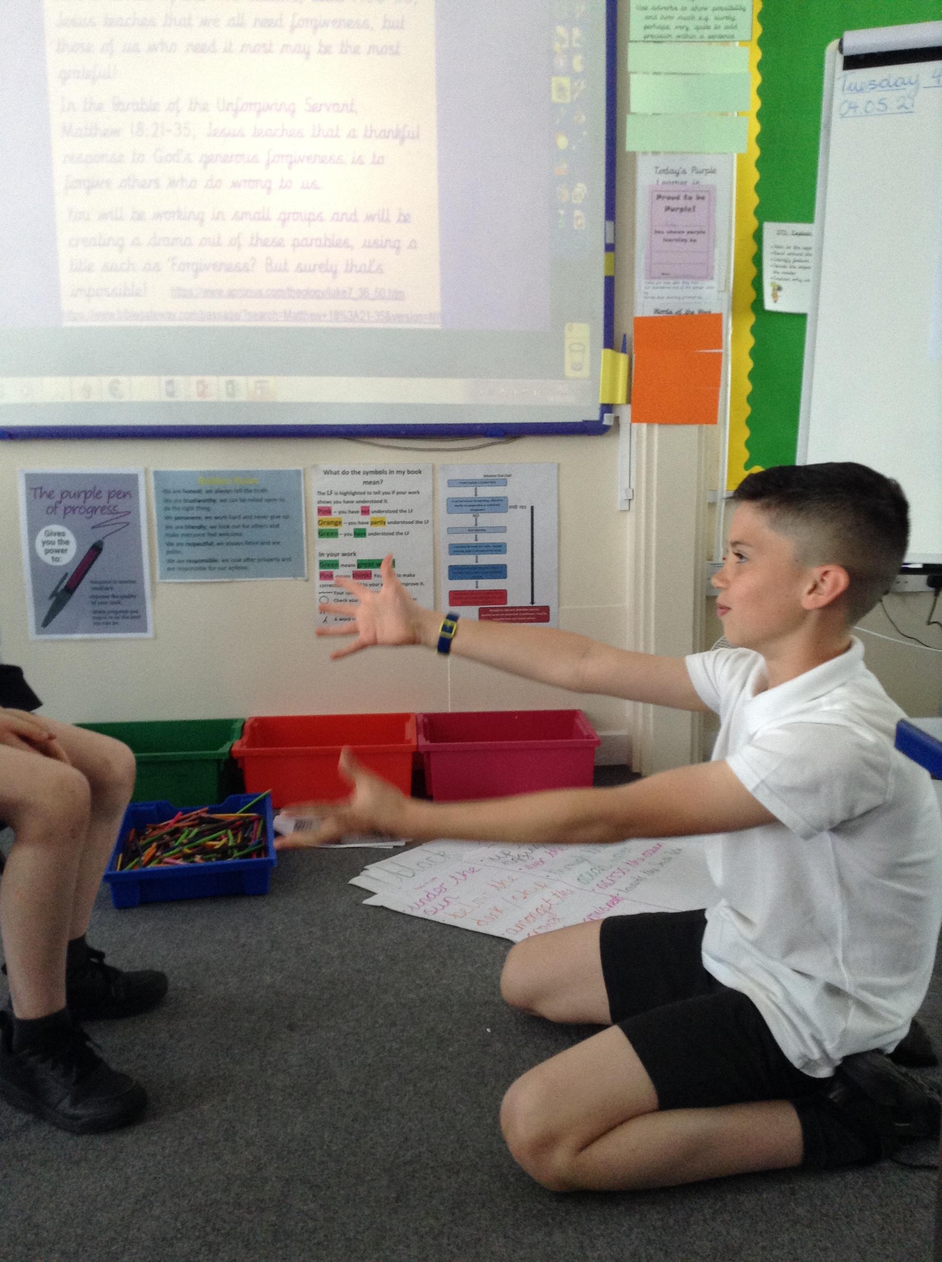 In Week 3, we have learnt about Jesus' teachings of forgiveness. During this, we acted out the parable of 'The Two Debtors'. We then thought about forgiveness in our relationships with friends, family and our wider community. We reflected on the importance of forgiveness for our relationships even if we can sometimes find it difficult.