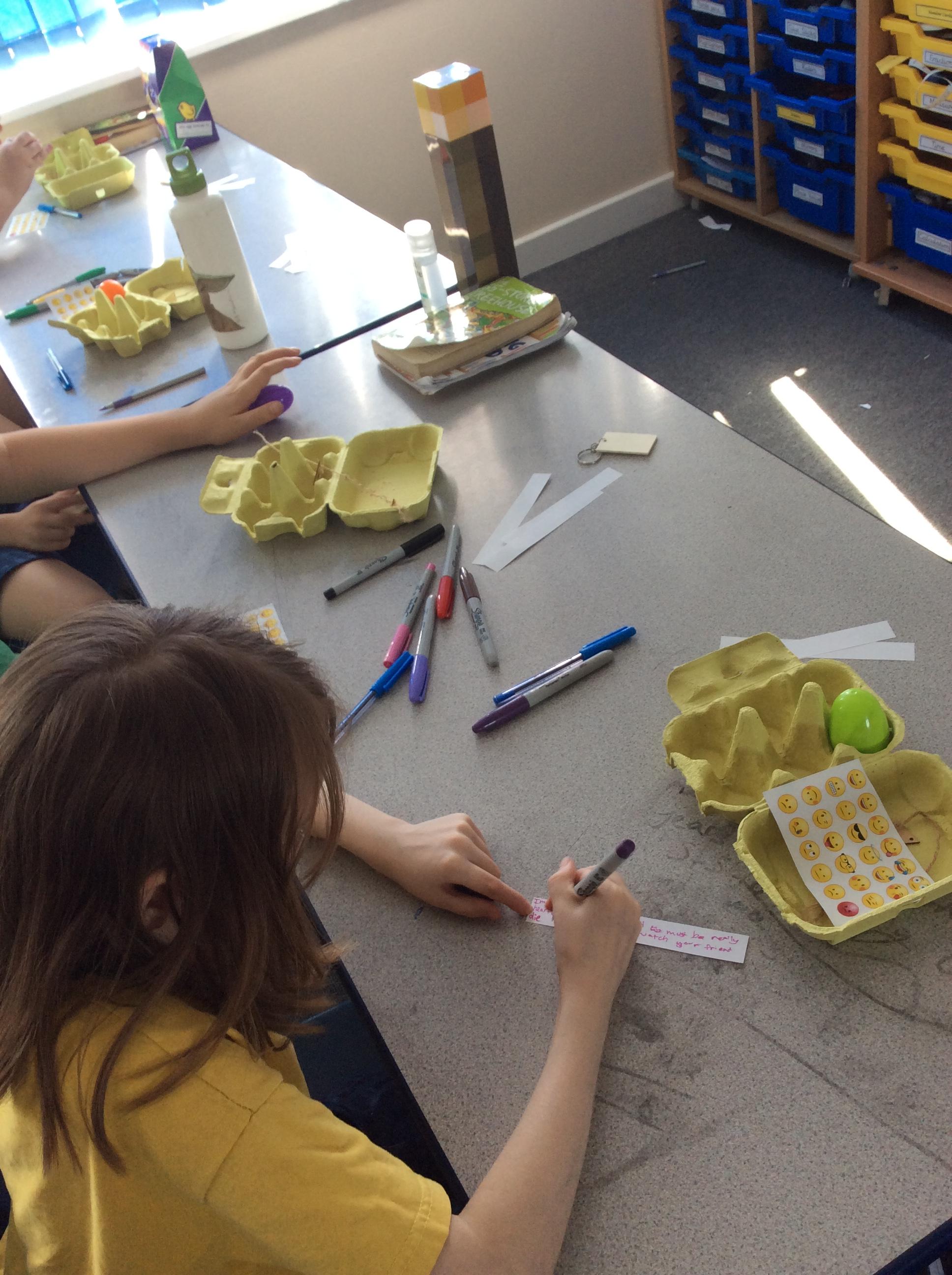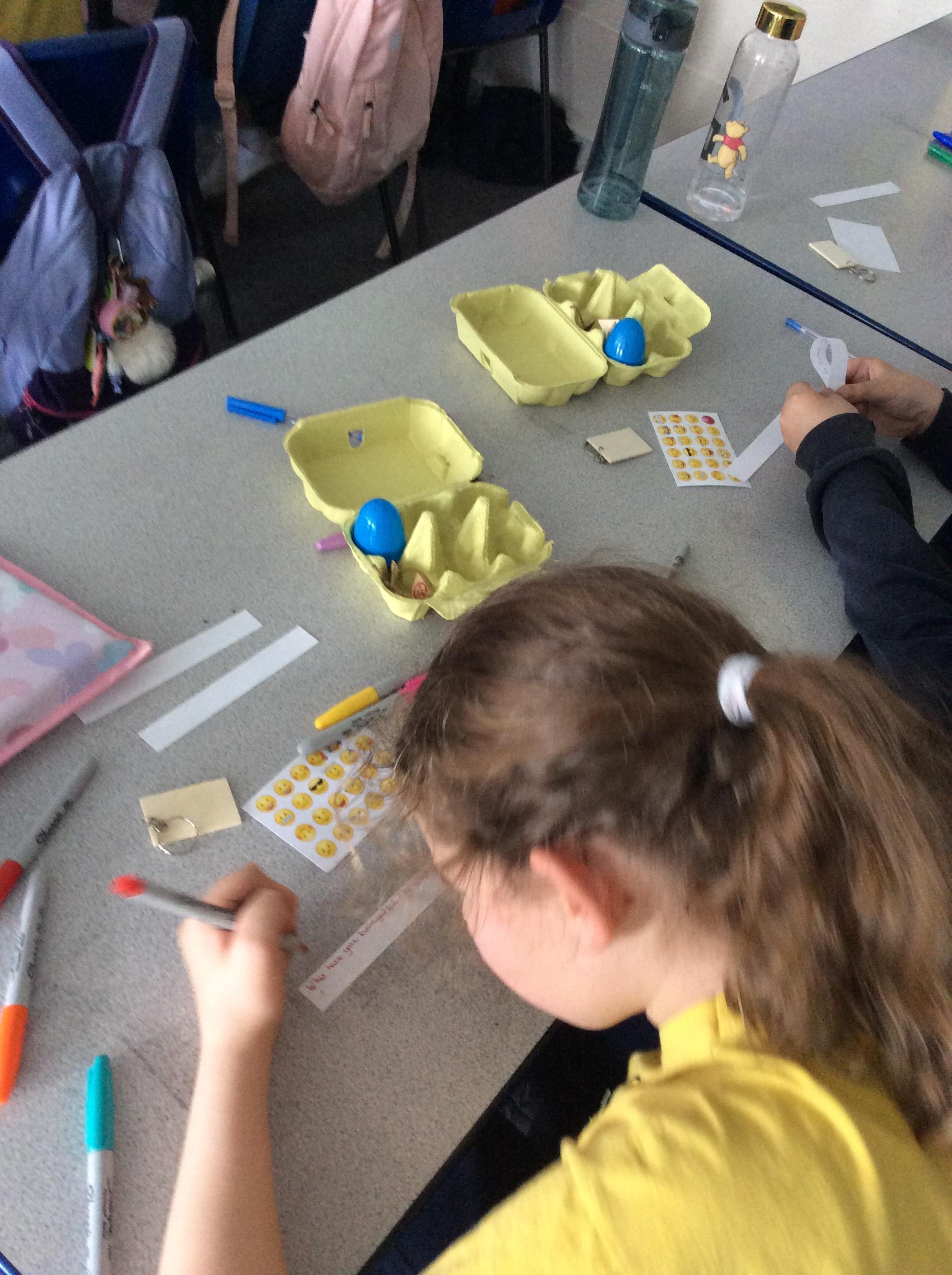 In Week 6, we were very fortunate to have Rev. Lisa come in to see us. We explored the Easter story through different scenes and built a visual representation of the story through asking questions, decorating eggboxes, keyrings and bunting. We really enjoyed having Rev. Lisa come in and furthering our understanding of Easter.