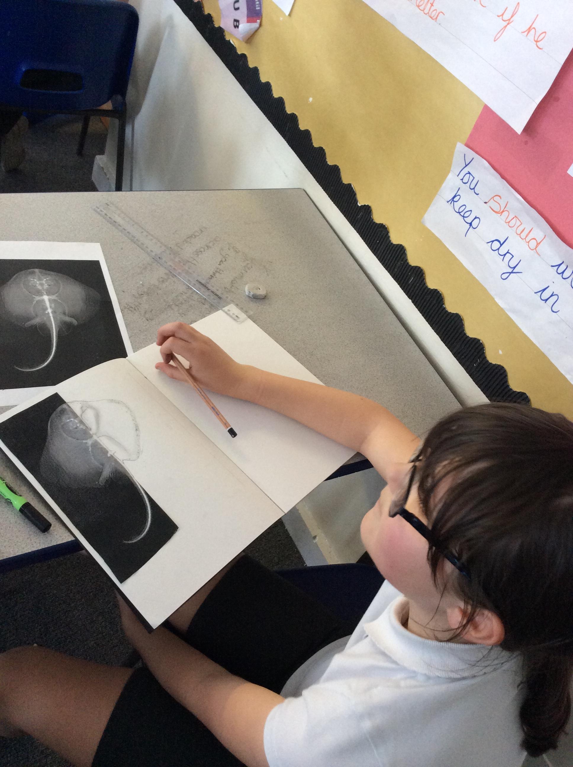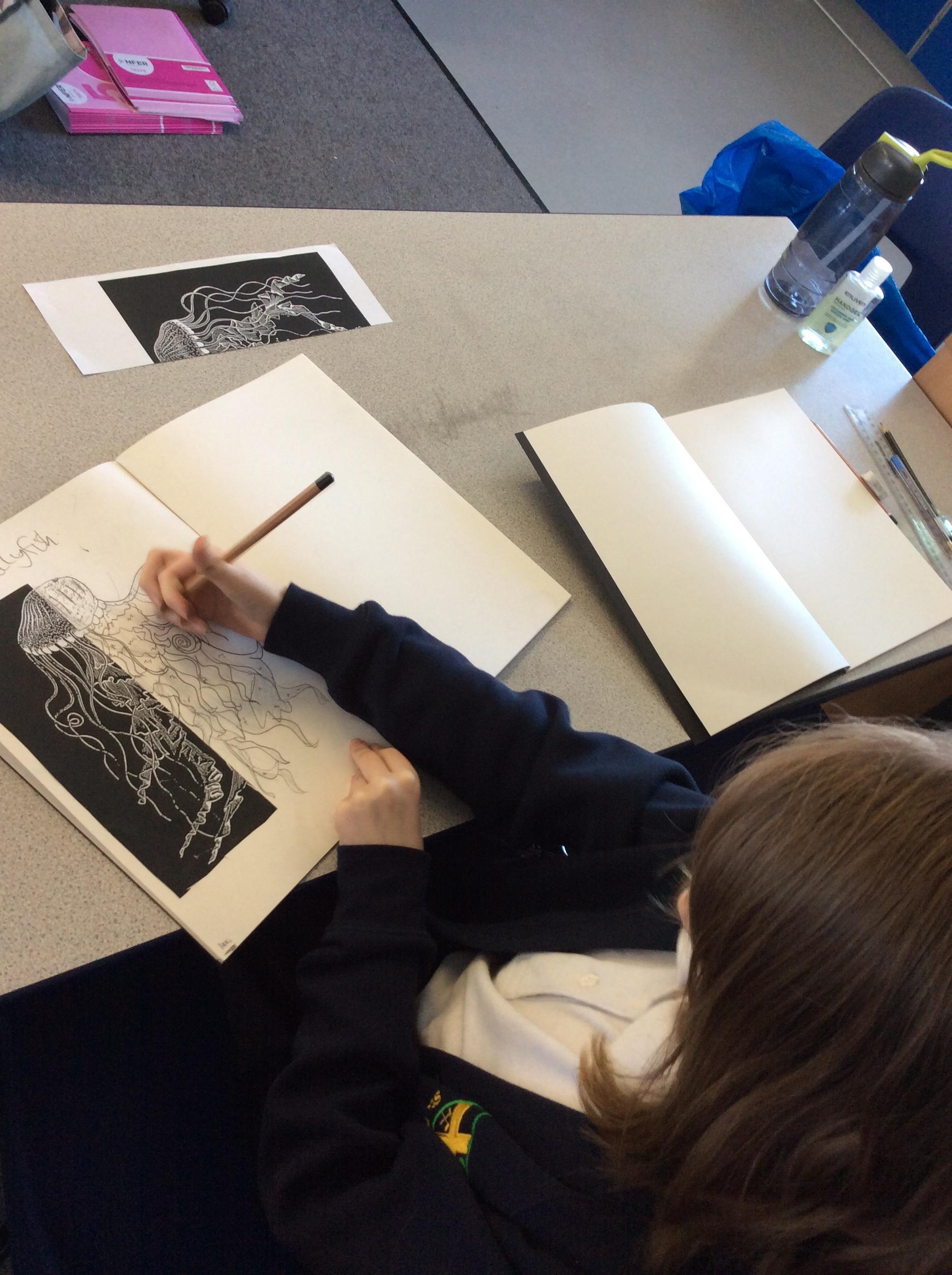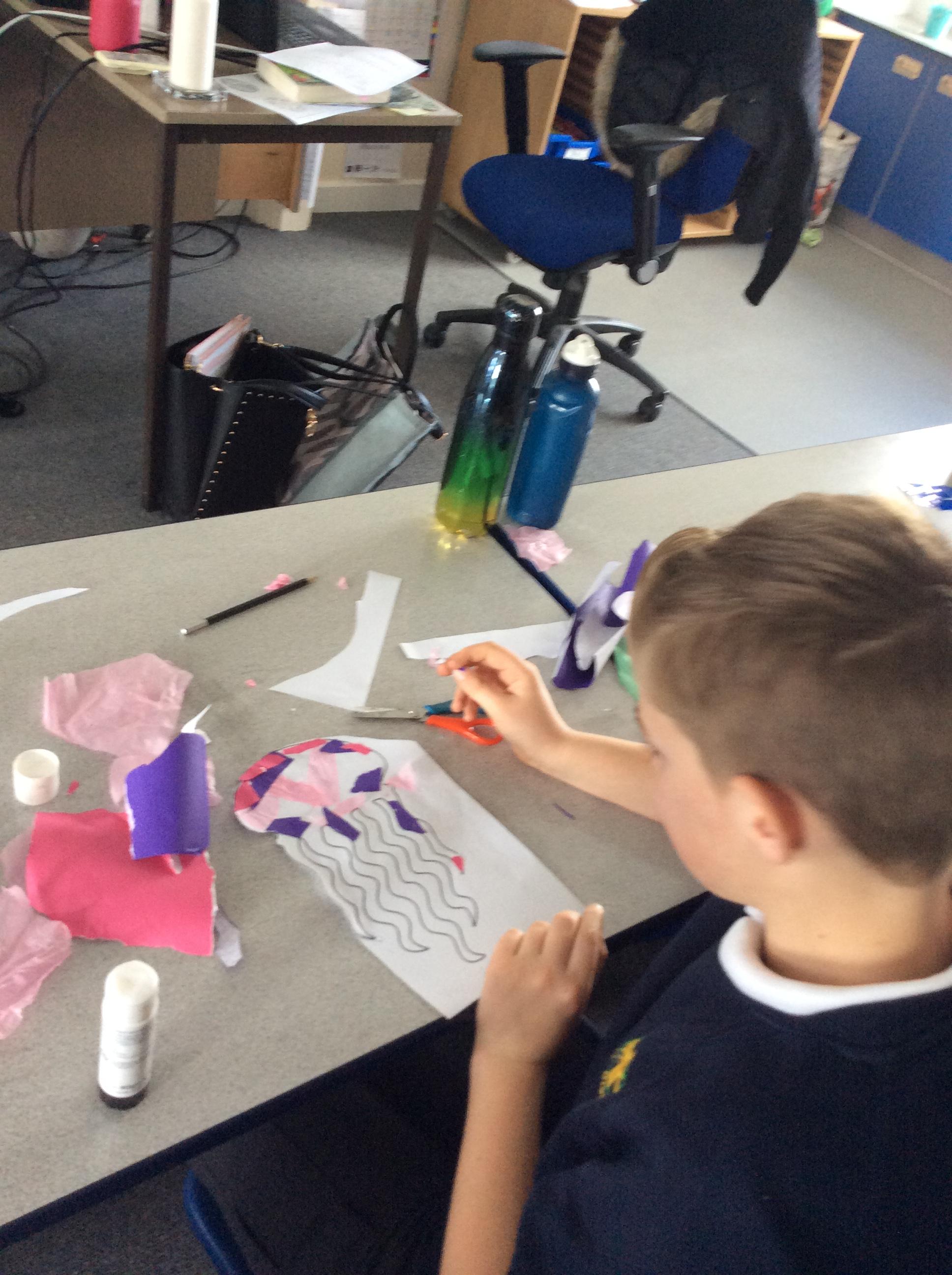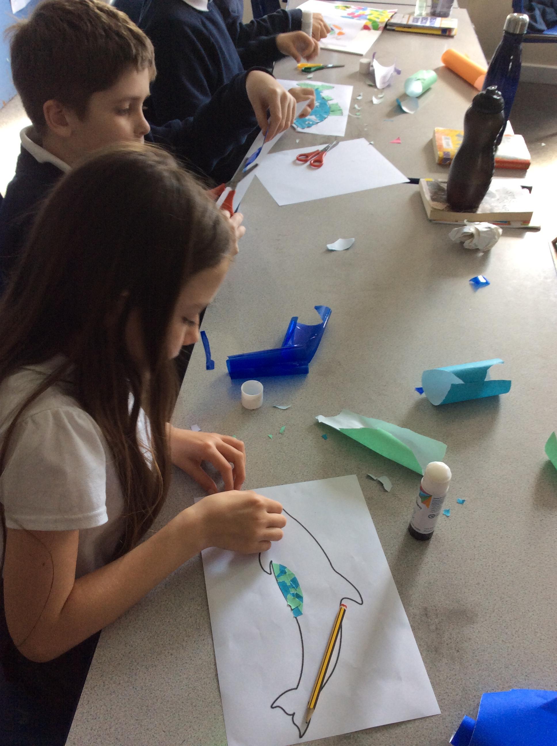 In Week 6, we have been completing some art work based on a picture from the book 'Here We Are'. We have practised our shading skills by focusing on using dark and light effectively in our sketching. We have also put our collage skills into practise and our coming together as a year group to create a collaged ocean scene. Check out some of our amazing art work below!