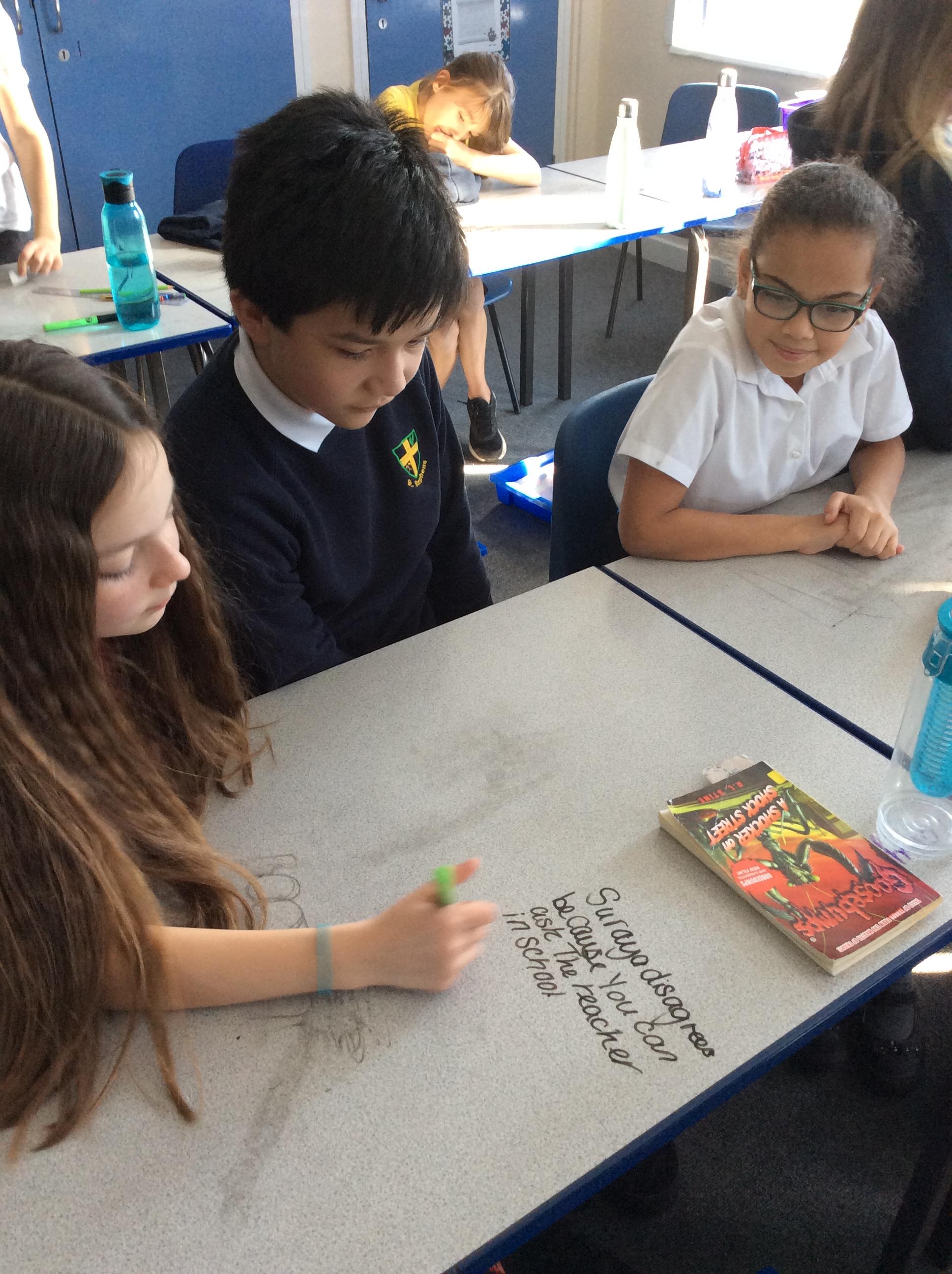 In Week 5, we have had no pens day! During this day, we have used our oracy skills to solve maths problems, immerse ourselves in the our new enquiry book and practise our debating skills. We even got to learn some sign language. Here are some photos and videos of what we got up to!