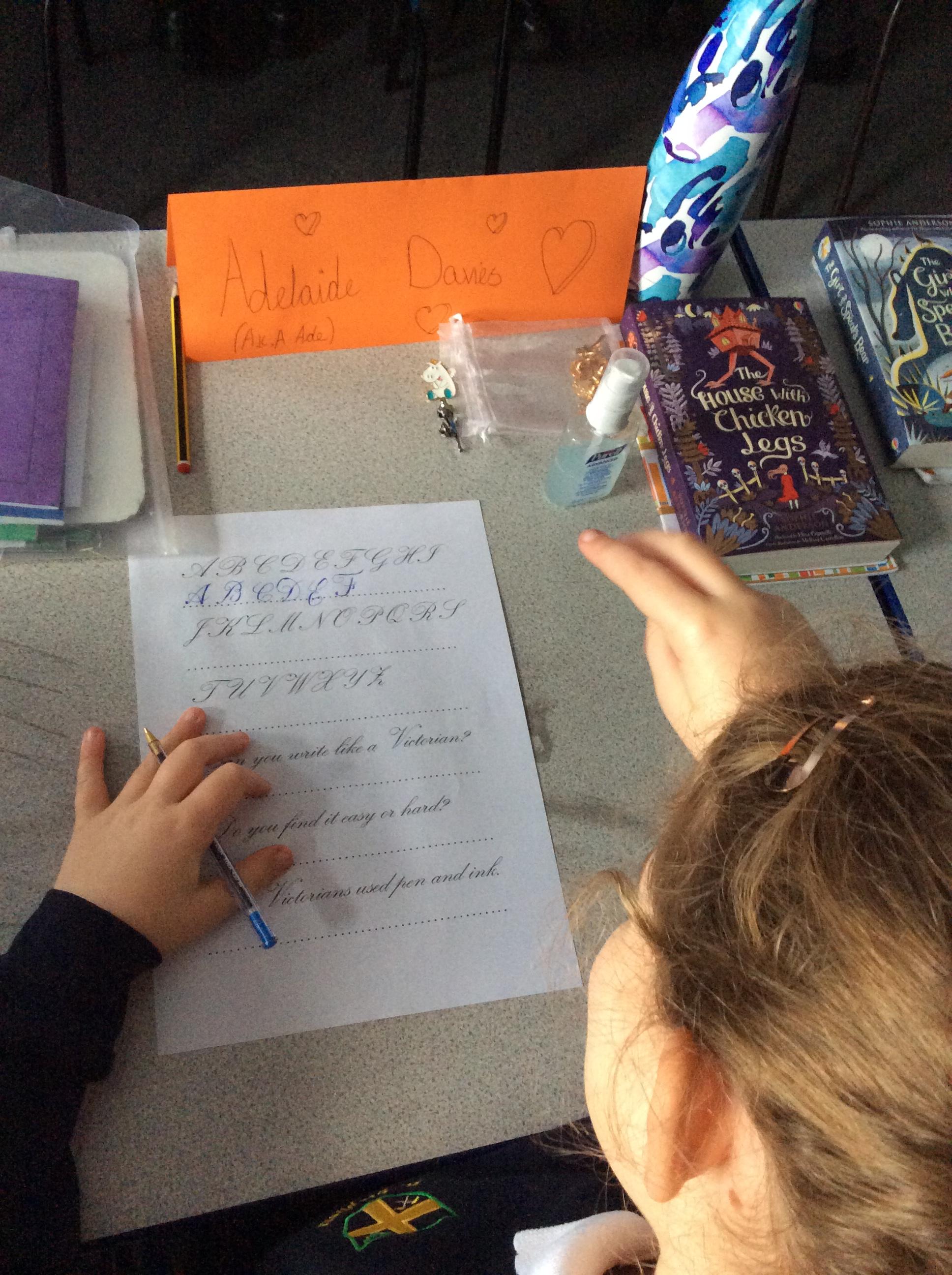 In Week 6, we had our enquiry WOW day all about the Victorian era! We kickstarted our day by choosing a Victorian name for ourselves and comparing Victorian and modern classrooms. We were particularly shocked at the punishments Victorian children faced if they were rude or didn't follow instructions. We watched clips about child slavery in coal mines and textile mills and discussed whether their rights were met, linking to the Rights of a Child. We have practised Victorian handwriting and found out about Victorian workhouses. In the afternoon, we explored what games Victorian children played and made our very own thaumatropes.