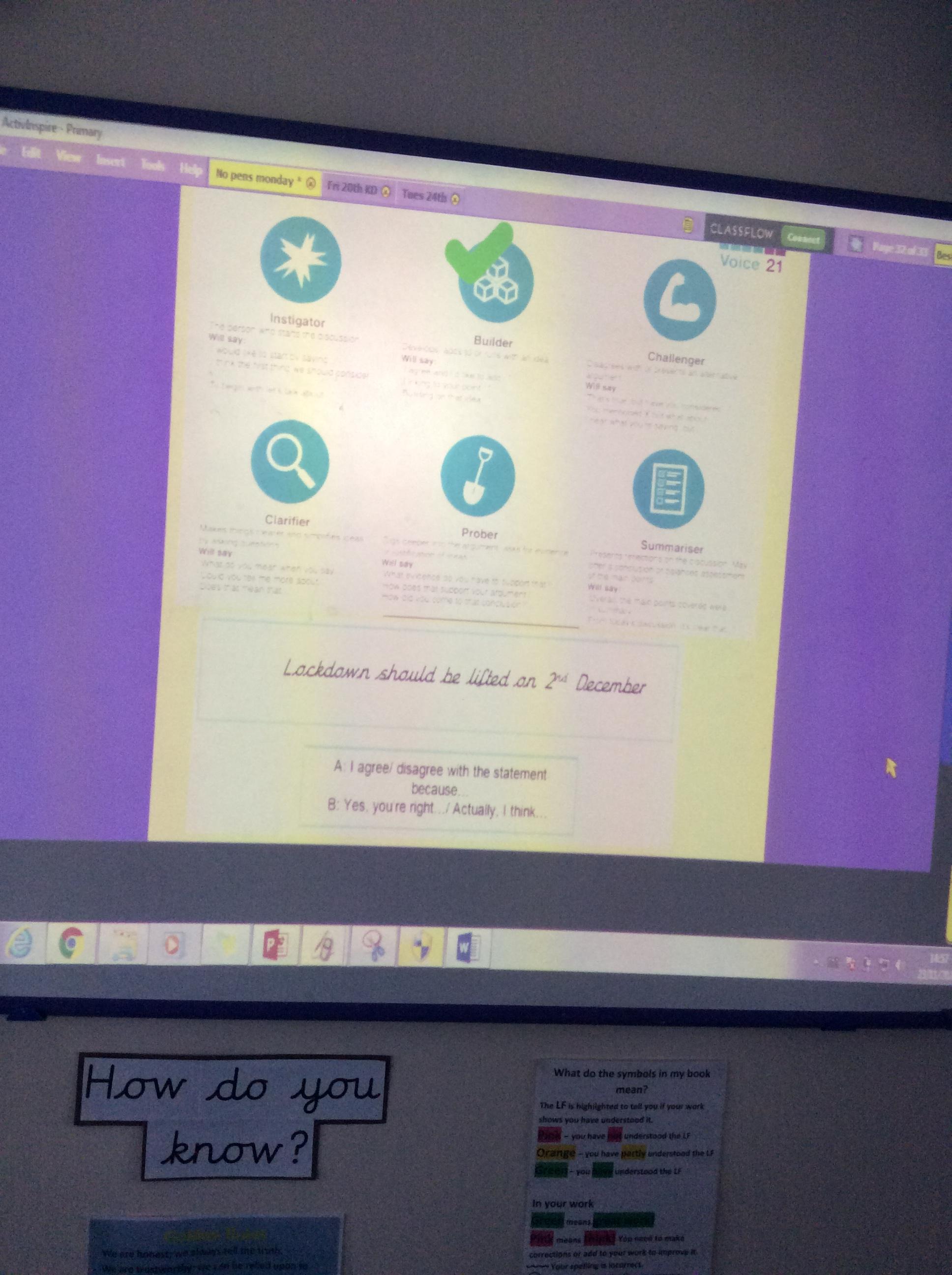 In Week 3, we have been re-immersing ourselves in our purple learning approach. So far we have thought about learning behaviours that help to move our learning on (movers), polite disagreement and what helpful talk sounds like. We have linked this to our oracy guidelines and have practised using helpful talk through discussing statements such as 'the internet is better than school for teaching you things' and improving our listening skills by having a go at being a 'silent summariser'. Have a watch of some of our discussions below and see if you can spot how we have used helpful talk and displayed our super listening skills!