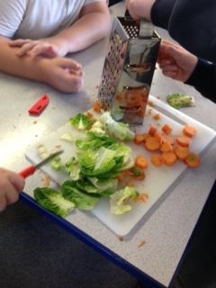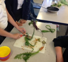 In Week 1, we were able to pick lots of vegetables from our amazing allotment including spring onions, beetroot, lettuce and carrots. We then put into practice our learning from Term 1 about safe and healthy methods of food preparation by washing, chopping, peeling, dicing, grating, roasting and boiling our ingredients. We put them all together to make delicious salads that we all enjoyed eating!