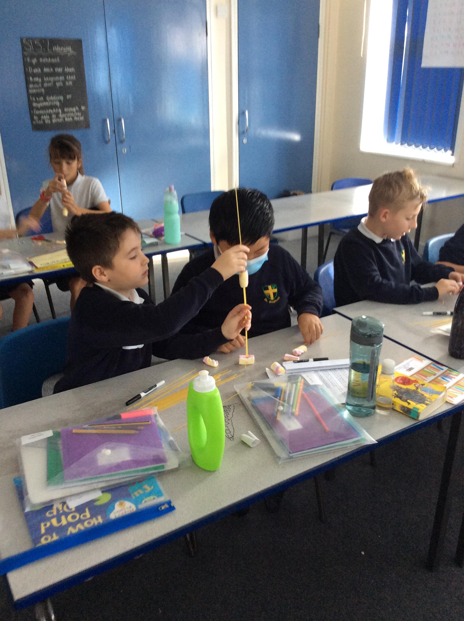 Today, we were set the challenge to make towers using only marshmallow and spaghetti! We got very sticky but it helped us reflect on what made great team work!