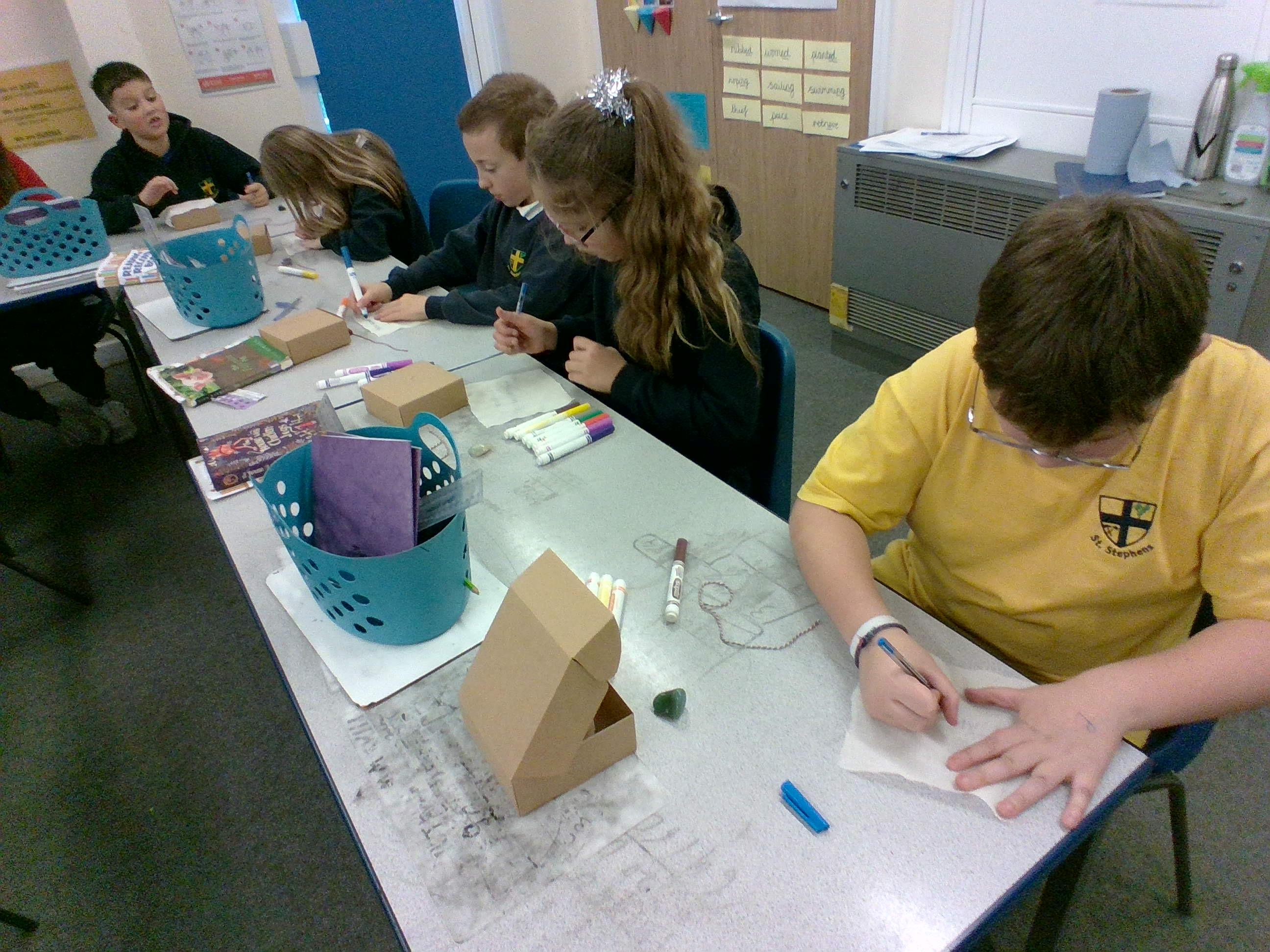 In week 6, we were so lucky to have a visit from Lisa our local vicar. She told us all about the Easter story and we got to make some special boxes to help us remember the key parts of the story. We really enjoyed our afternoon with Lisa and we can't wait to share our special boxes with you all at home.