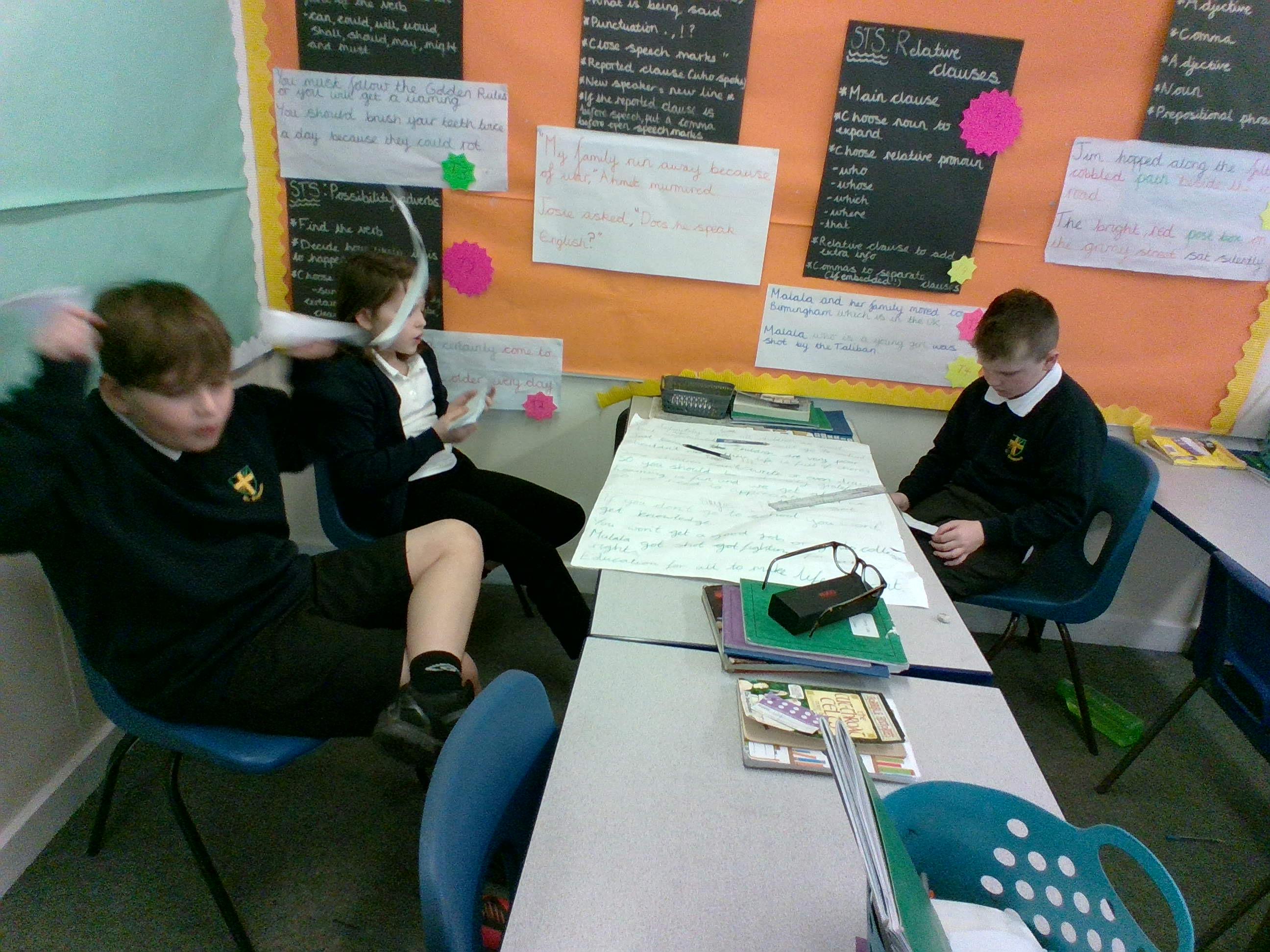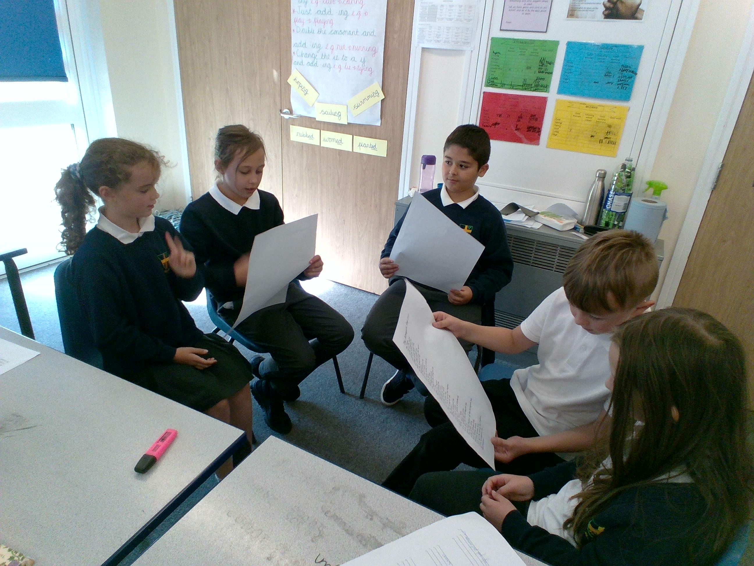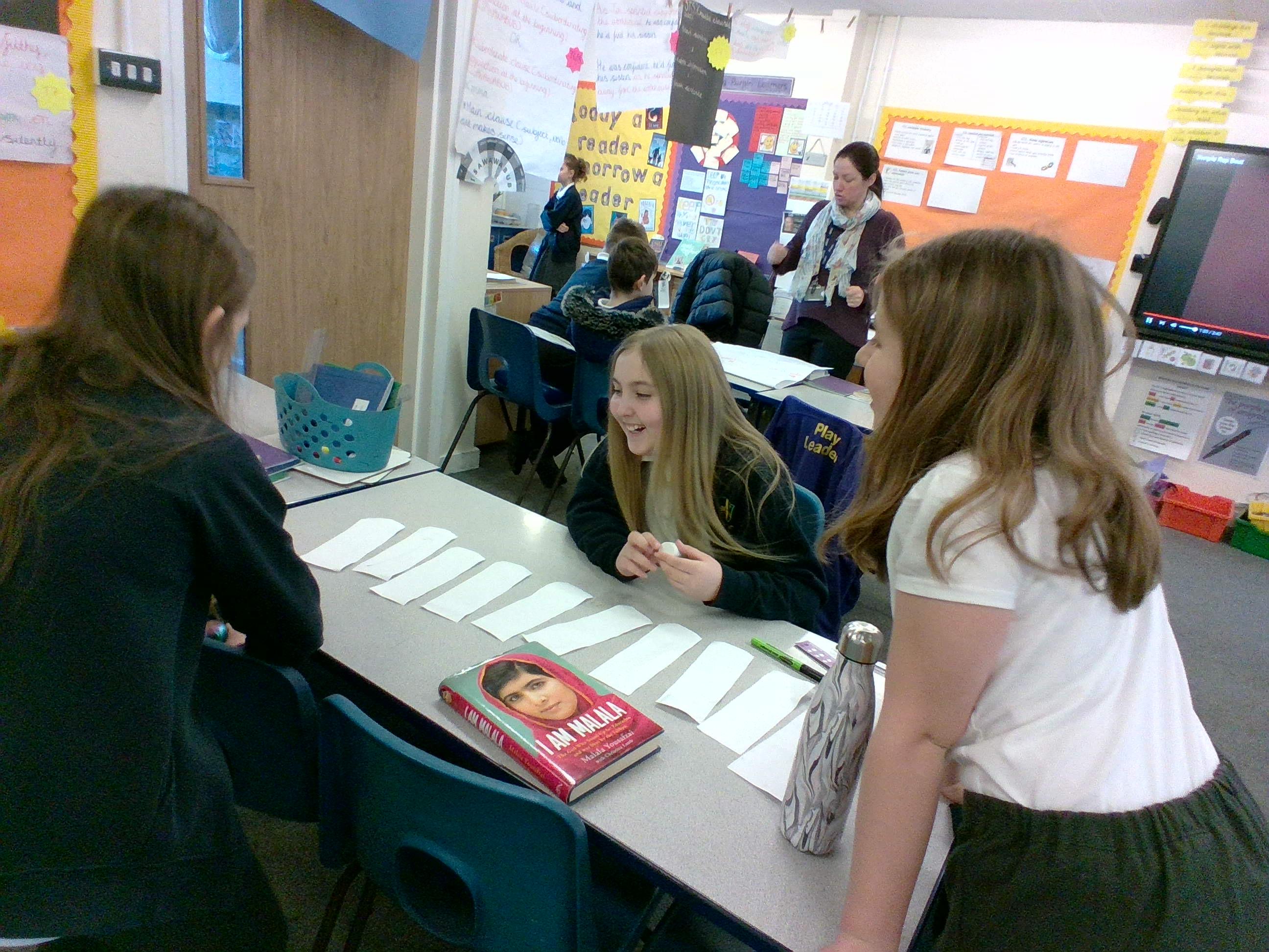 Today, we had a fantastic time working on our oracy skills. We learnt and performed raps about why children are prevented from going to school, in maths we created worded problems based on images maths and in reading we explored part of our class book!