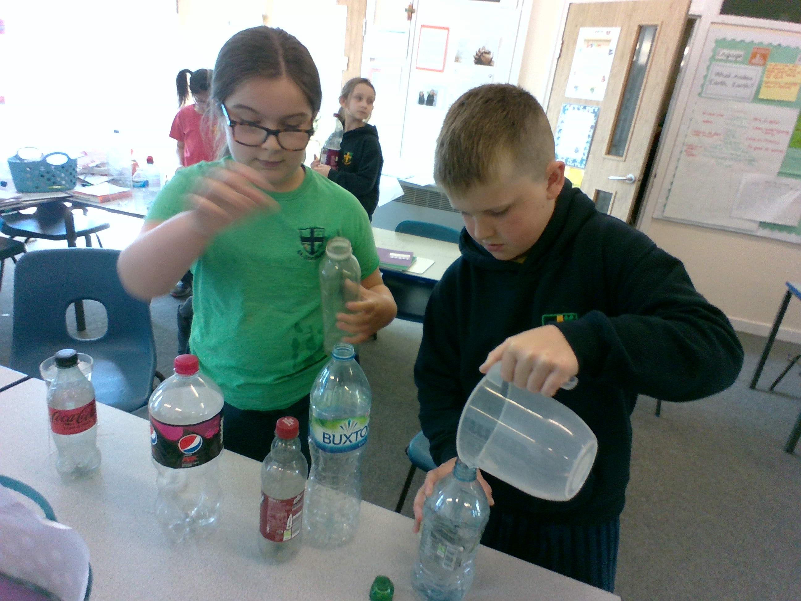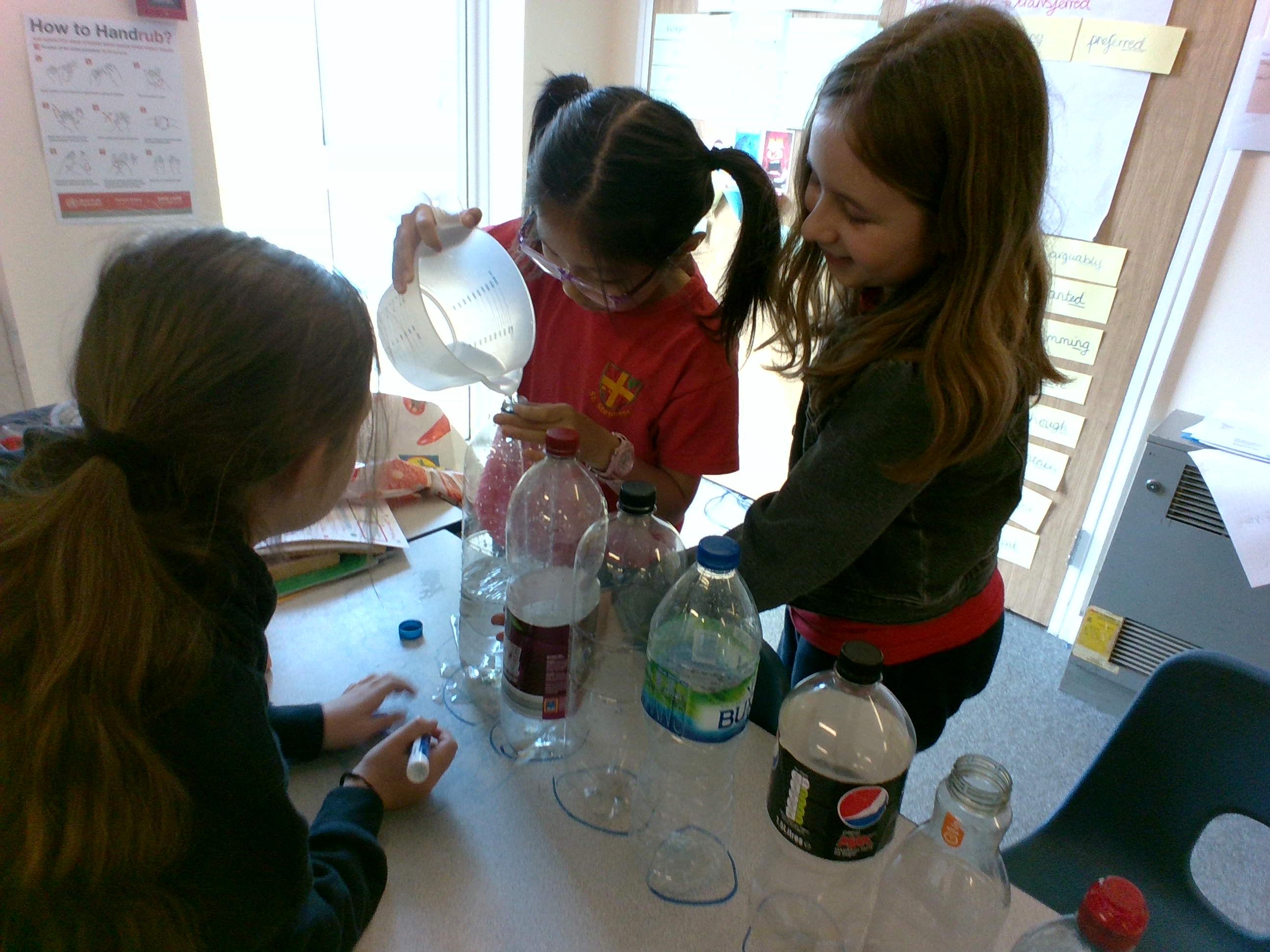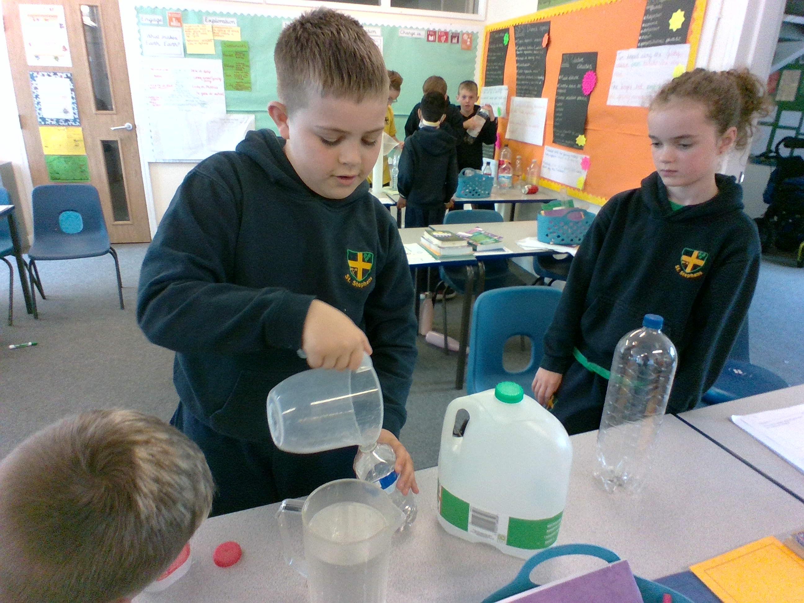 In Week 2, we have begun thinking about capacity. To help us with our understanding of millilitres and litres, we estimated the capacity of different sized and shaped bottles and then selected sensible measuring equipment to see if our estimates were correct.