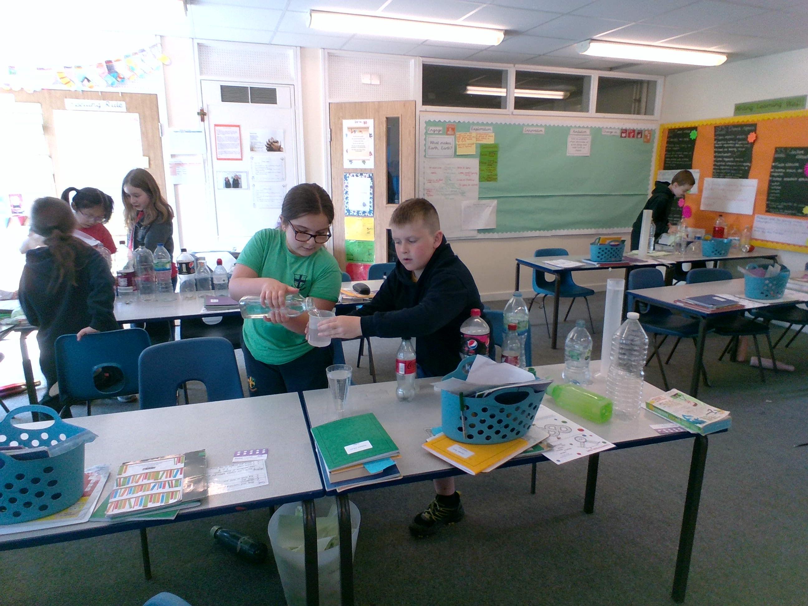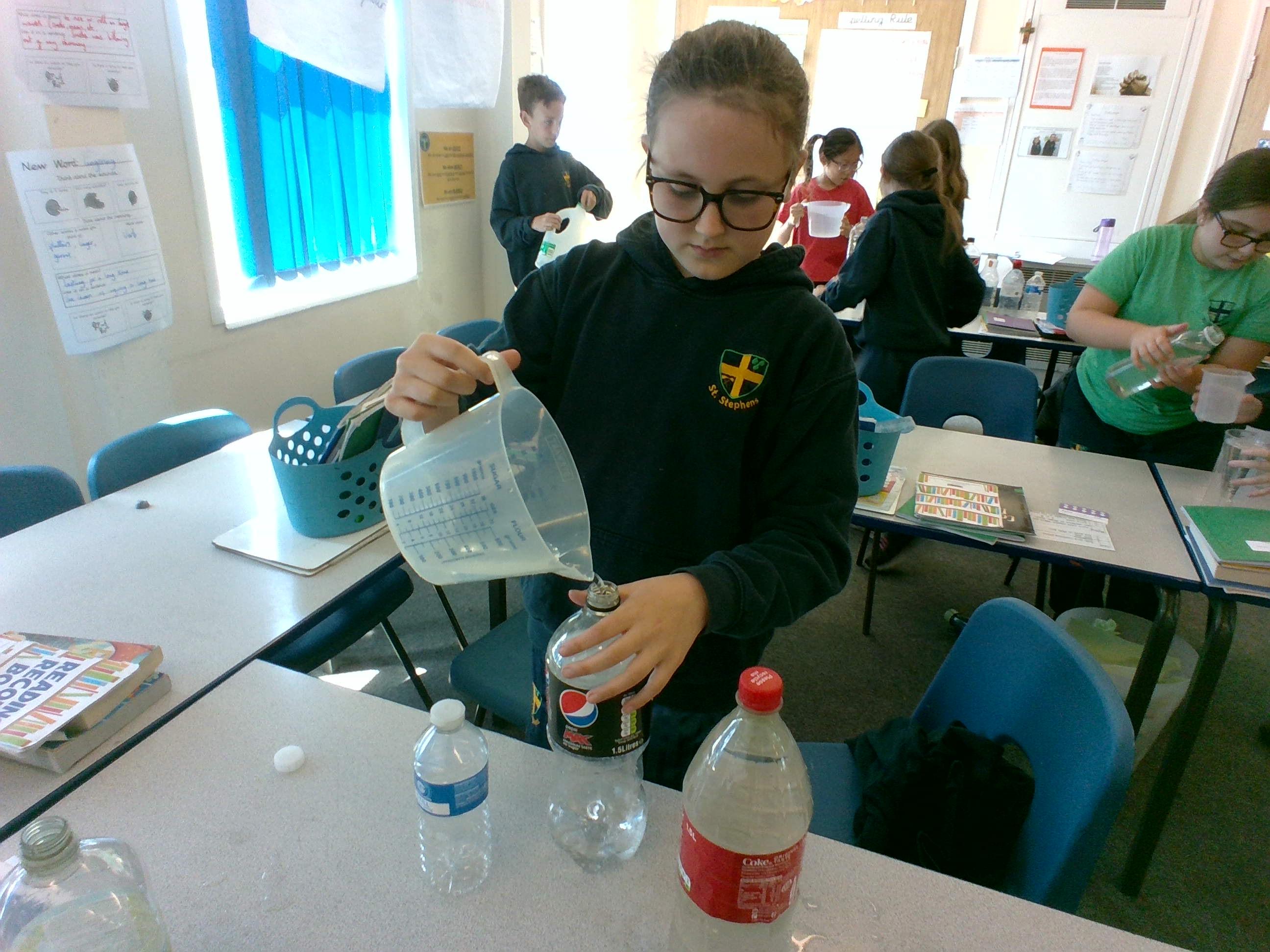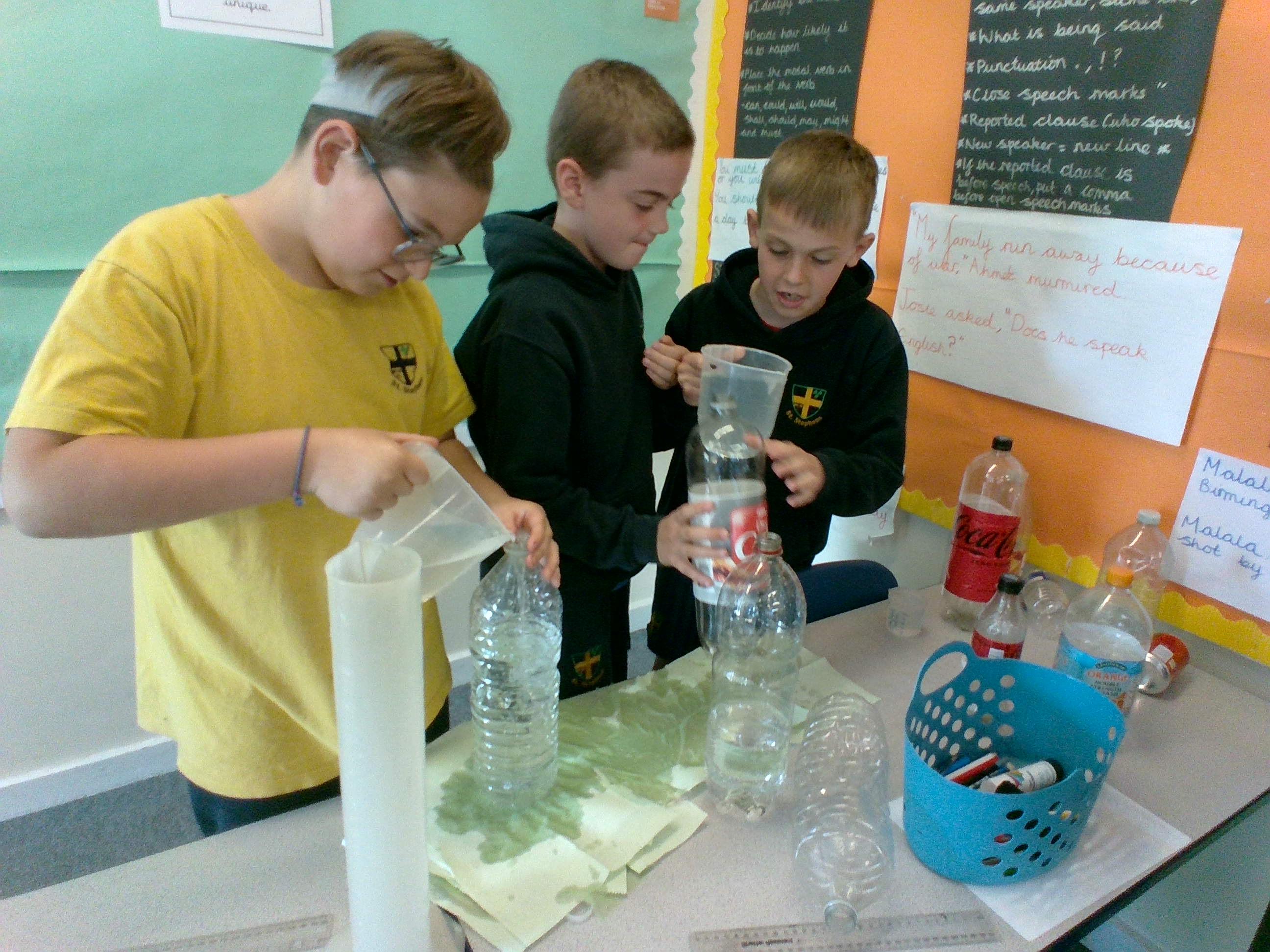 In Week 2, we have begun thinking about capacity. To help us with our understanding of millilitres and litres, we estimated the capacity of different sized and shaped bottles and then selected sensible measuring equipment to see if our estimates were correct.