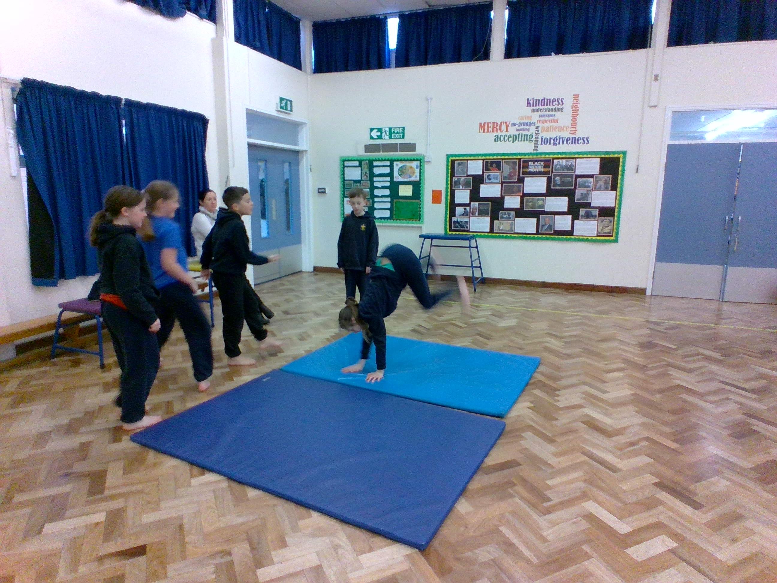 In Week 7, we have completed our gymnastics PE unit with a final performance to show off our new skills. We have learnt forward rolls, cartwheels and lots of different single and group balances. Enjoy a video of one of our final floor routines performed to music.