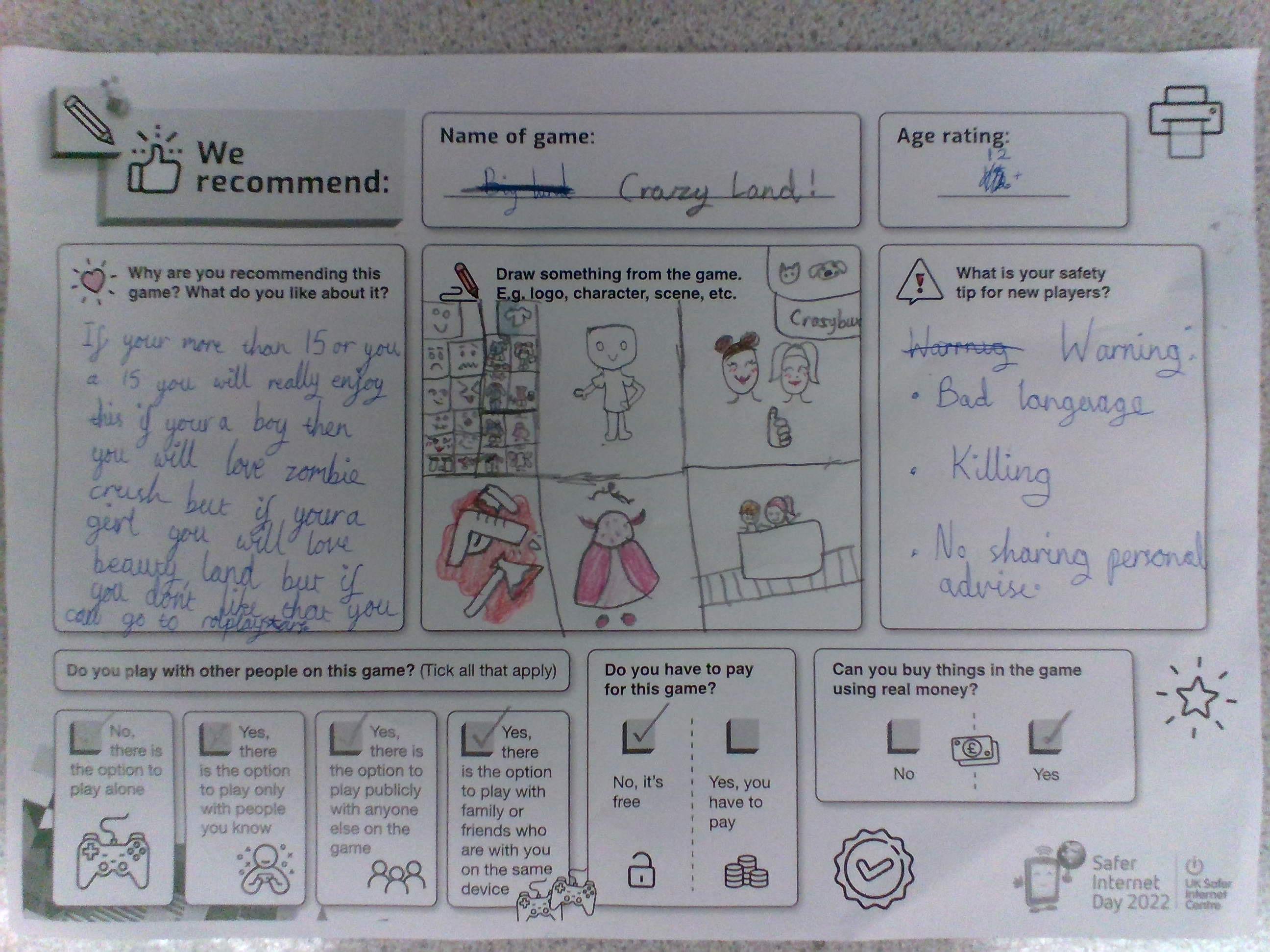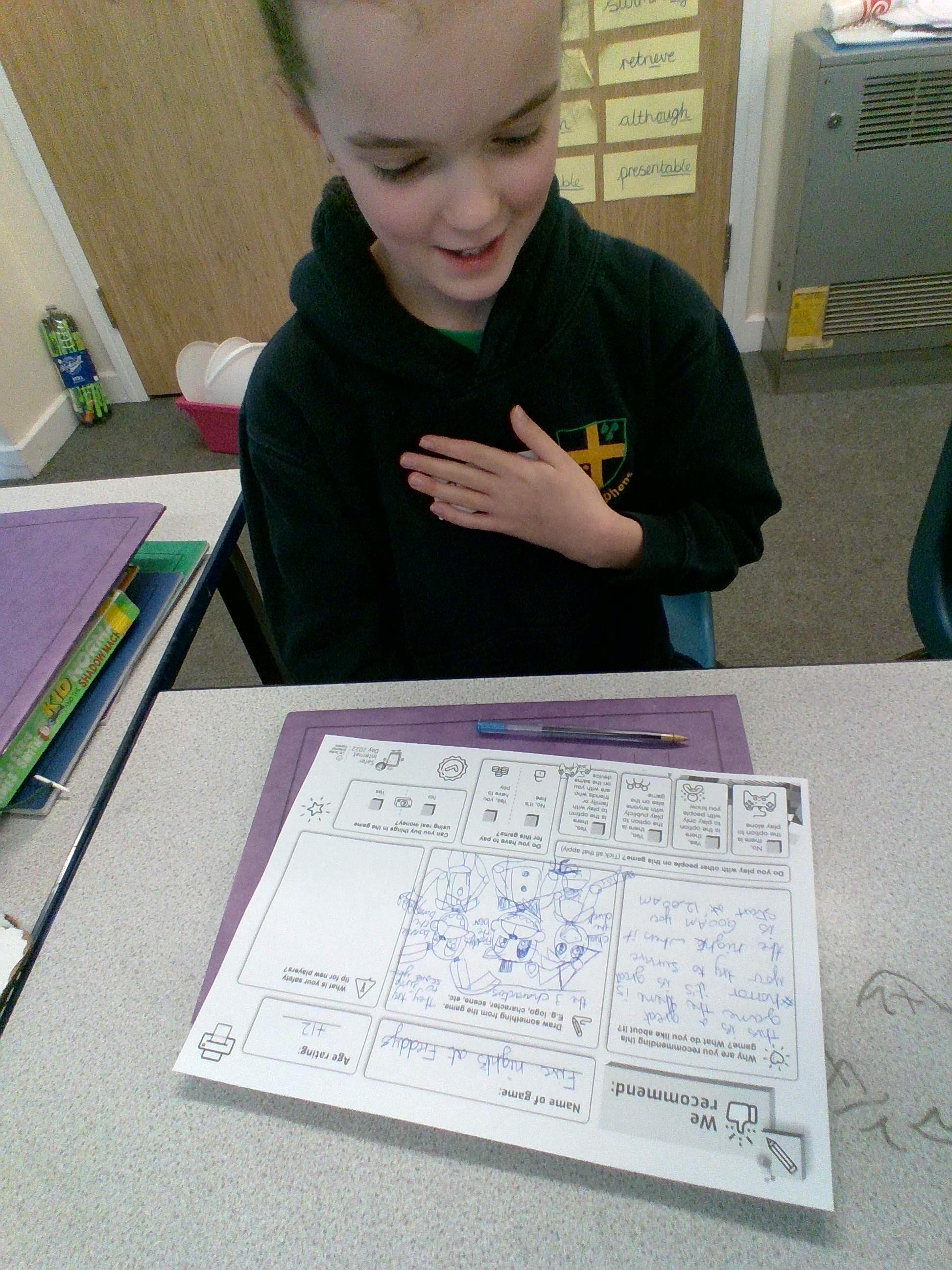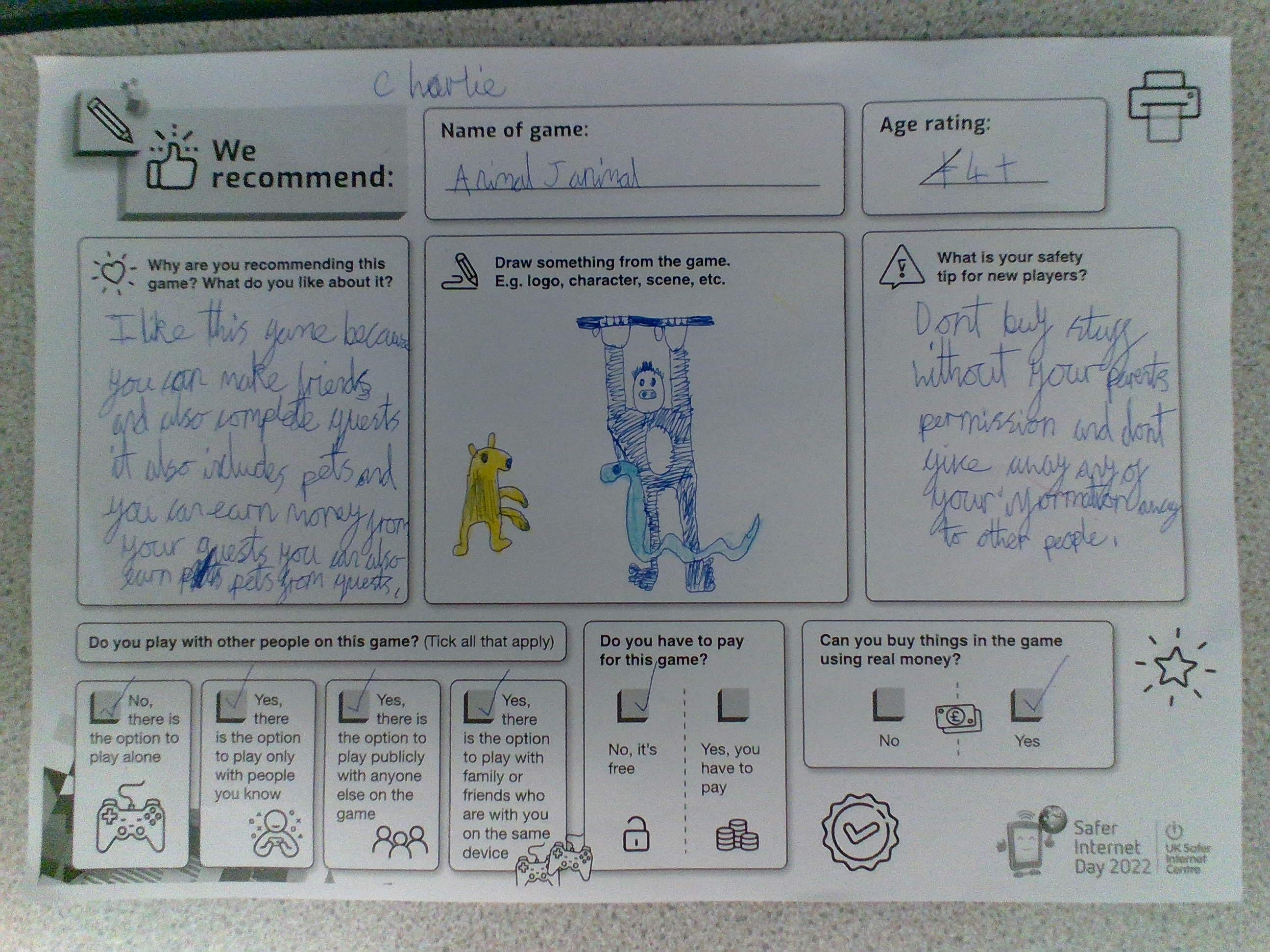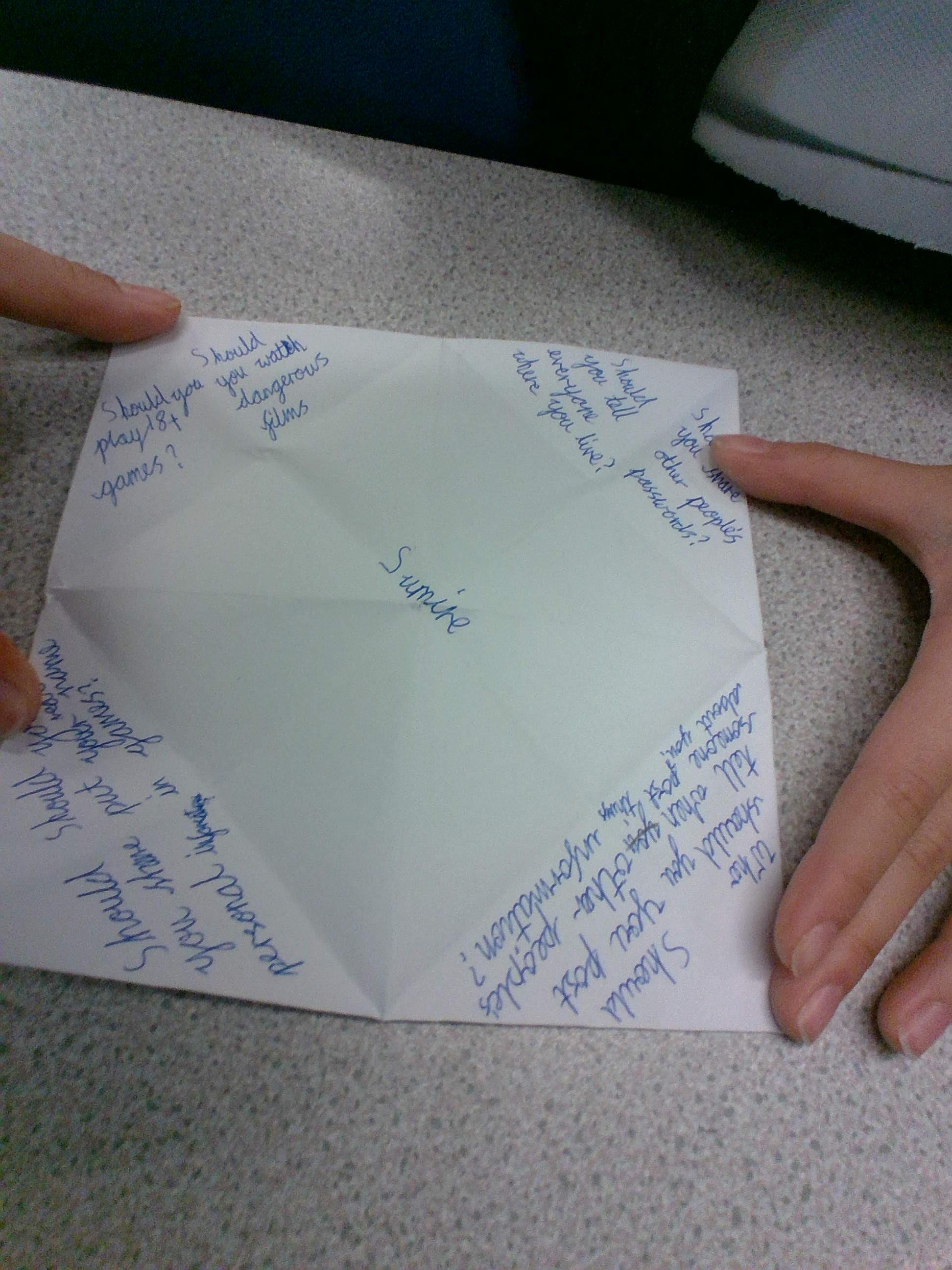 Today was Safer Internet Day! We had a fantastic day learning new knowledge about our digital footprint and how we can stay safe online. We discussed the responsibilities that we have to both ourselves and others online, ways in which we might react to tricky situations online and created game safety tips and fortune tellers to encourage discussion amongst ourselves with our own families and others about how we can stay safe online.
