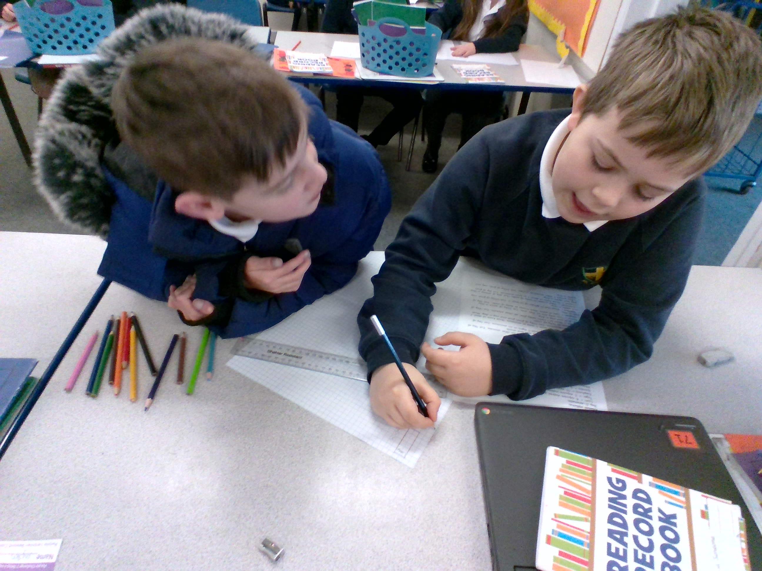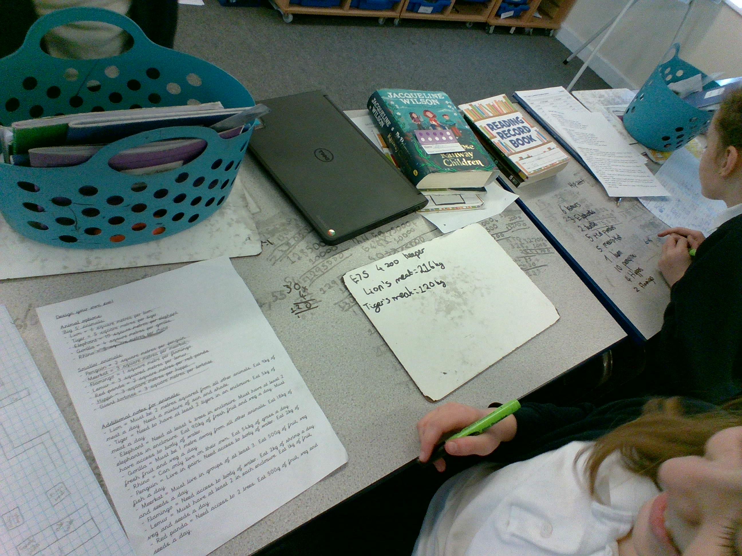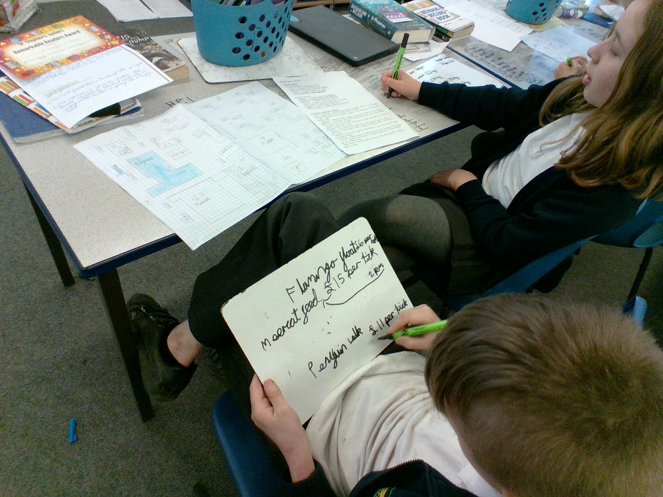 Today, we have had a fantastic time learning all about how maths is linked to animals and plants. We have worked alongside Tom Holloway, a maths and science expert, and we have designed a scaled version of a zoo. We thought carefully about the size of the animal containers, the times and amounts of feed needed, cost of staffing and food and the profit that we would like to make. We have really enjoyed using our maths skills to help us create our zoo ideas!