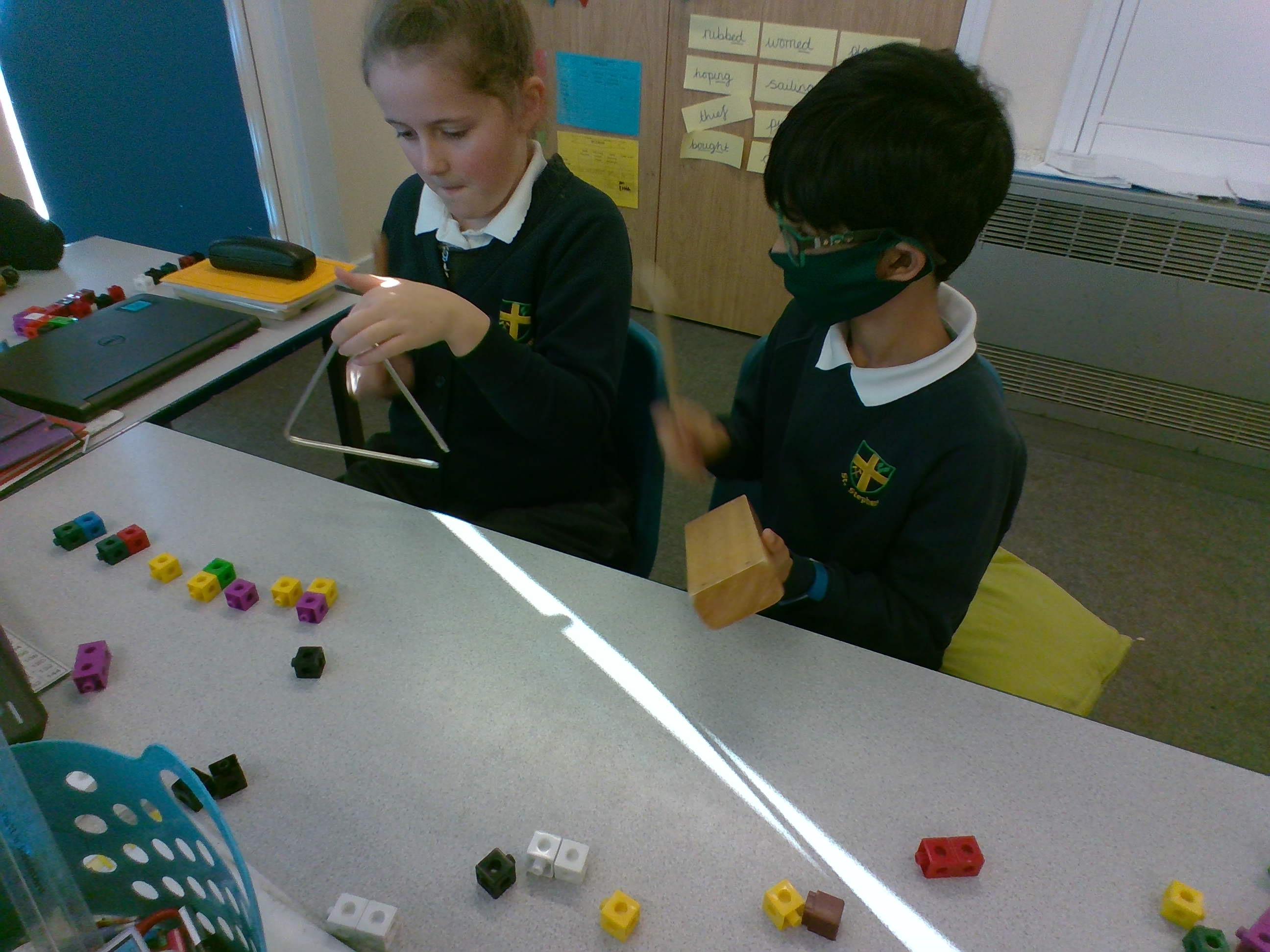 Today, we had a fantastic time working on our oracy skills as part of no pens day. We thought about how we use oracy in every day life. We then used our oracy skills to make predictions based on our new class book. As well as this, we designed our of figures using cubes and explained these designs to our classmates. We then learnt the Odd Socks song and performed these with our very own odd sock puppets!