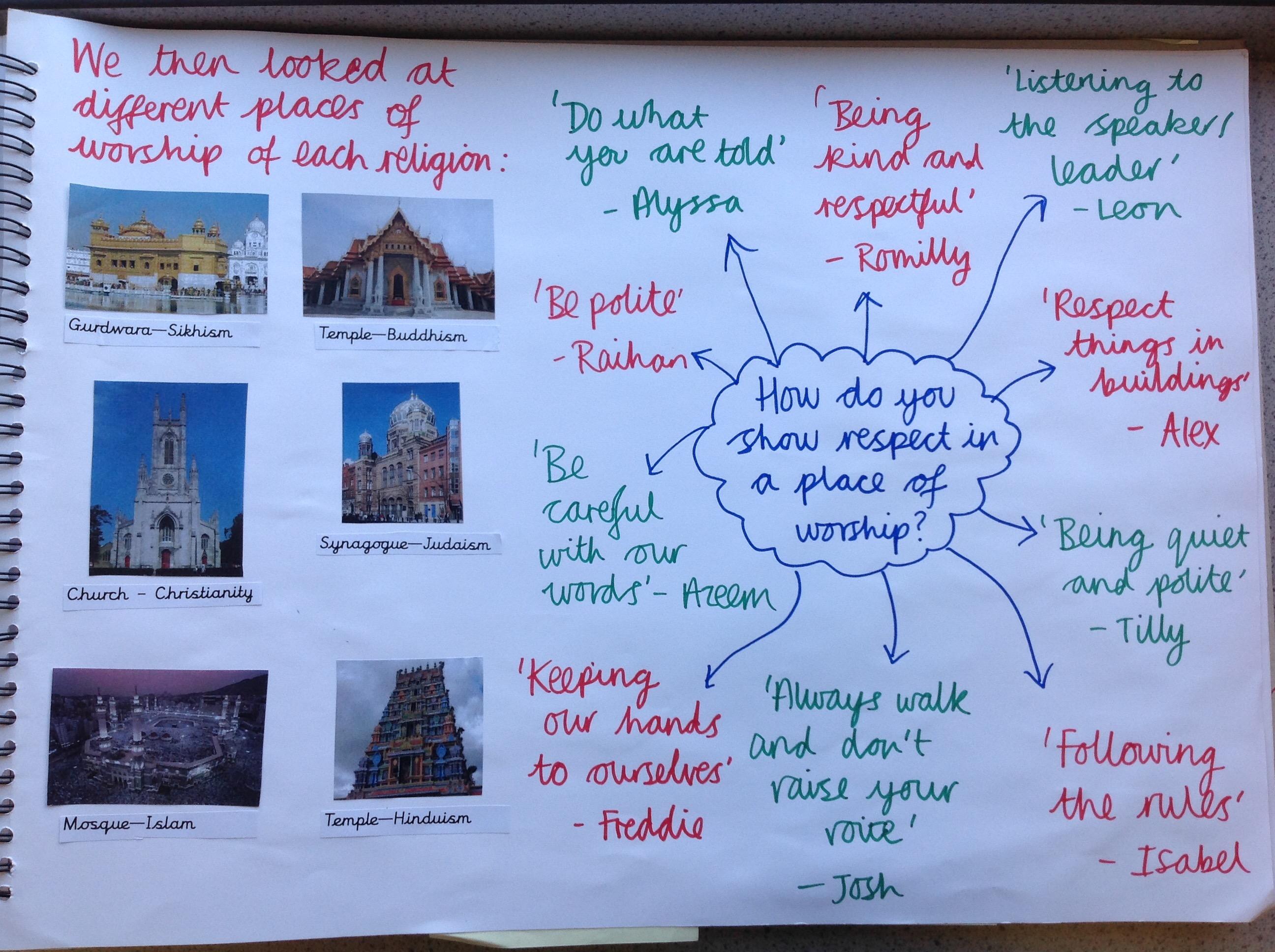 In Week 4, we have been learning about different places of worship. We started off by discussing how to show respect in a place of worship and came up with some fantastic ideas, as shown below! We are looking forward to learning more about Sikhism and their place of worship - a Gurdwara.